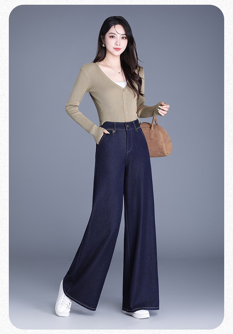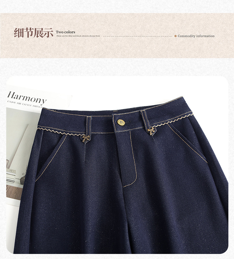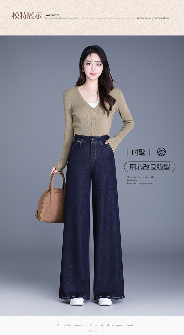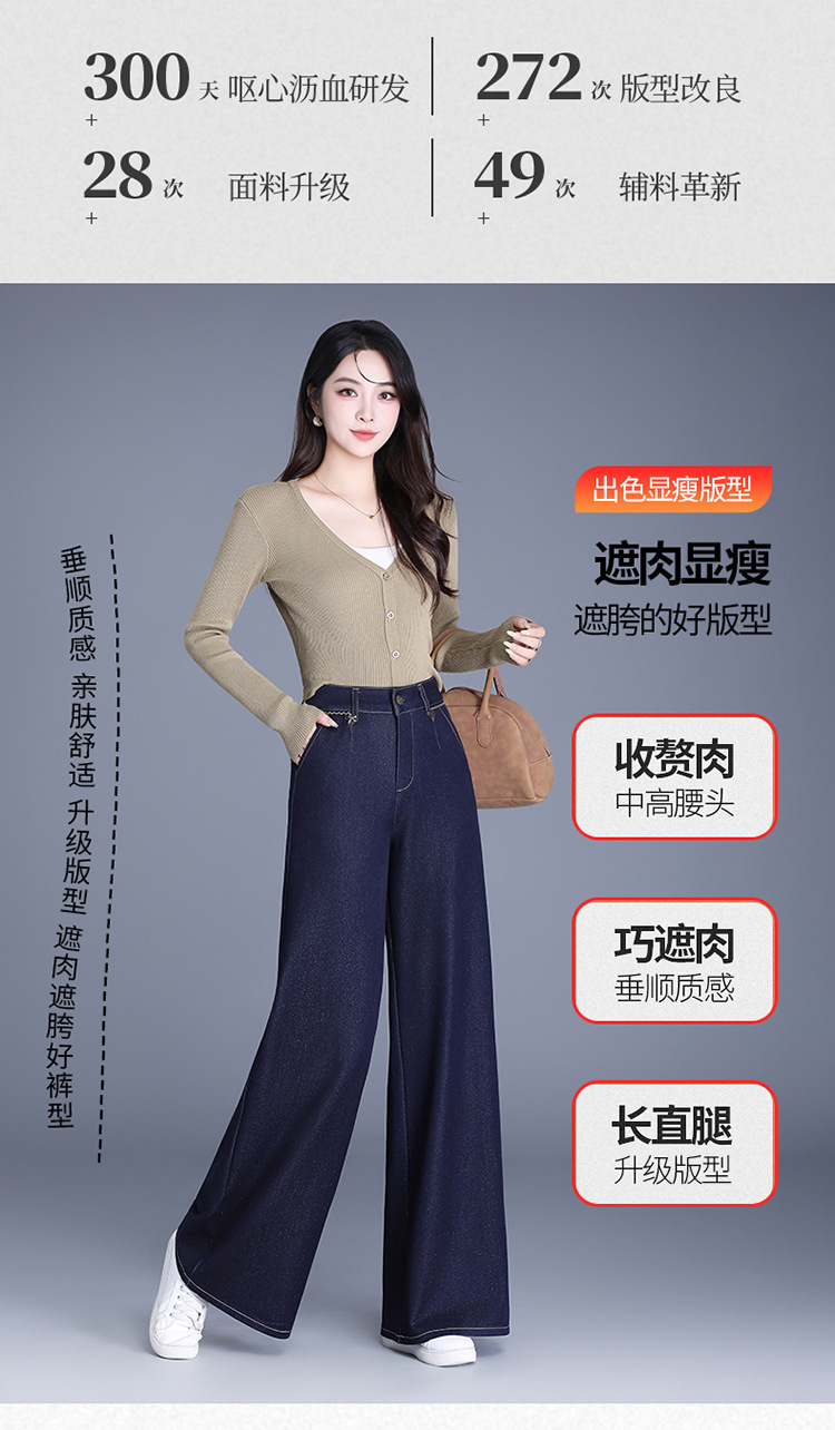 QYM 9846-Y阔腿裤高腰牛仔裤宽松直筒休闲裤气质 商品图4