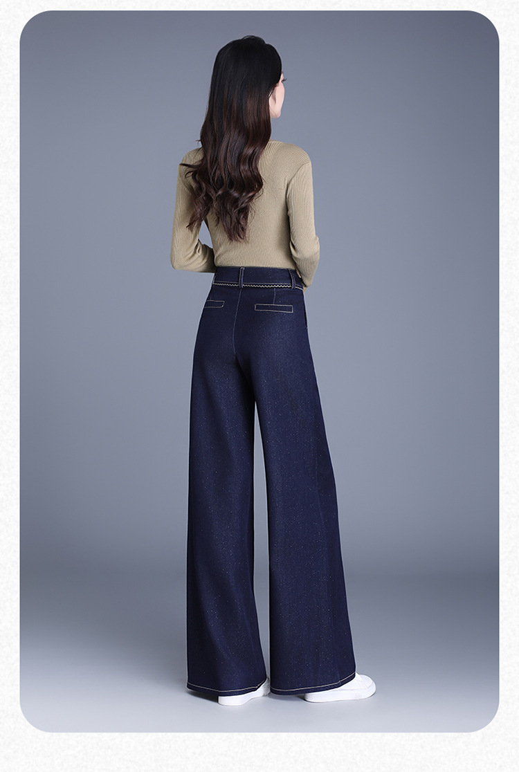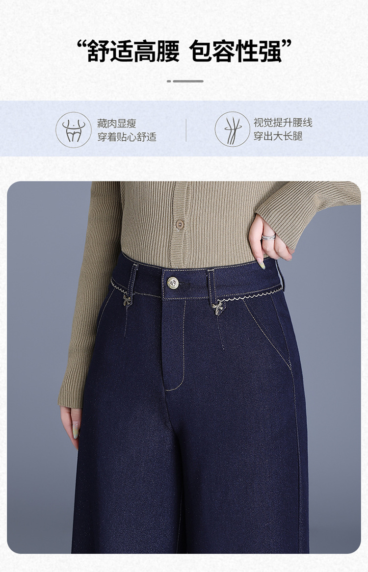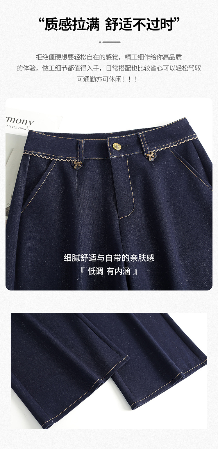 QYM 9846-Y阔腿裤高腰牛仔裤宽松直筒休闲裤气质 商品图3
