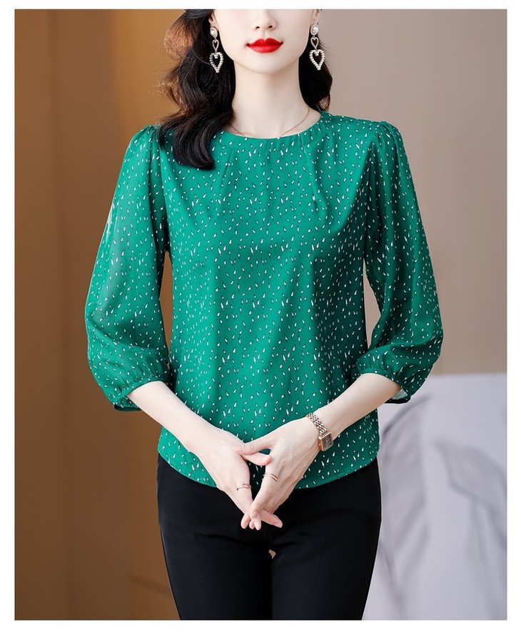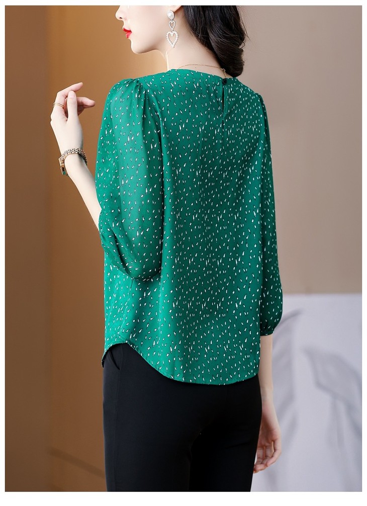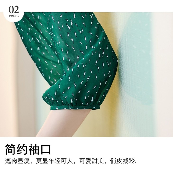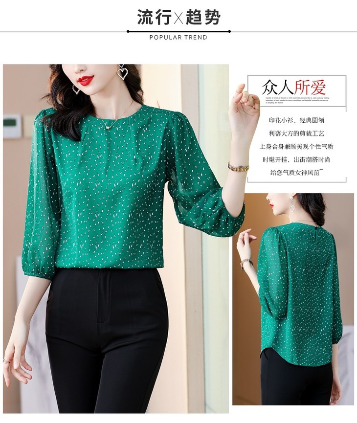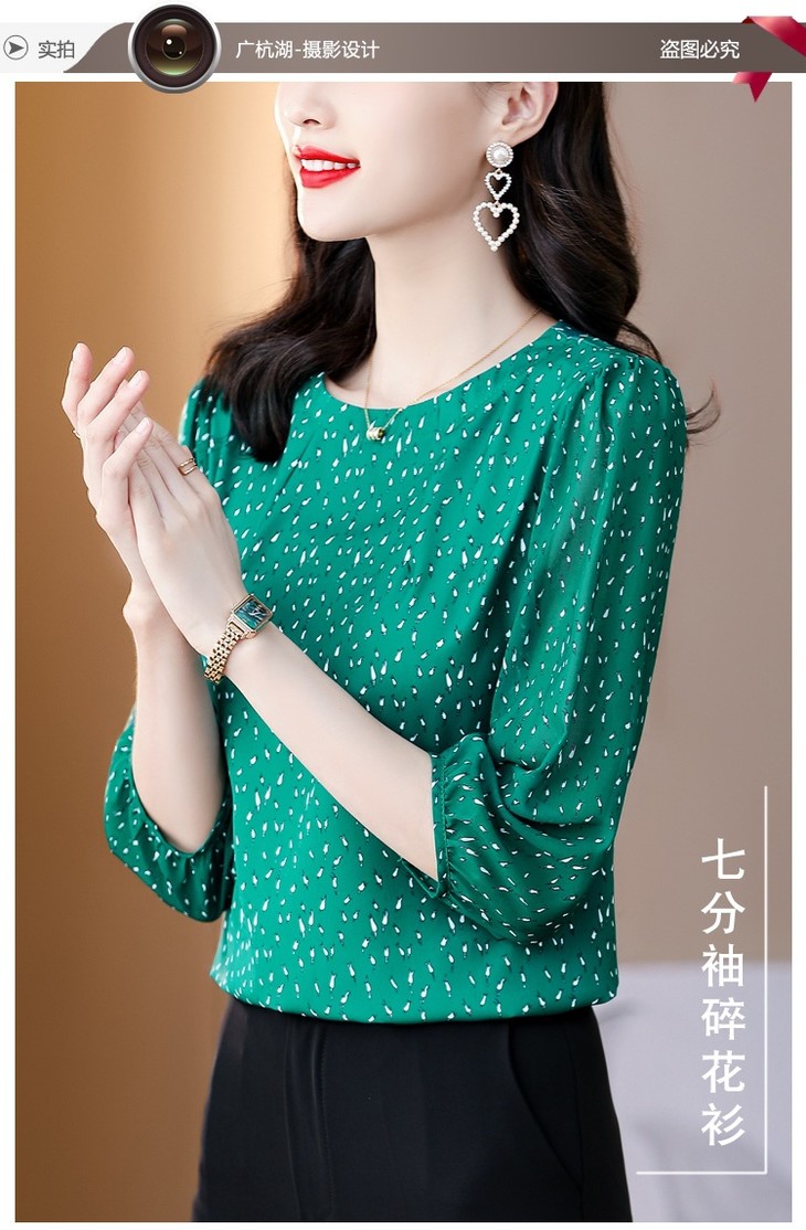 KQLB41N8162 仿真丝衬衫女2022夏新款时尚短袖七分袖印花小衫杭州桑蚕丝上衣