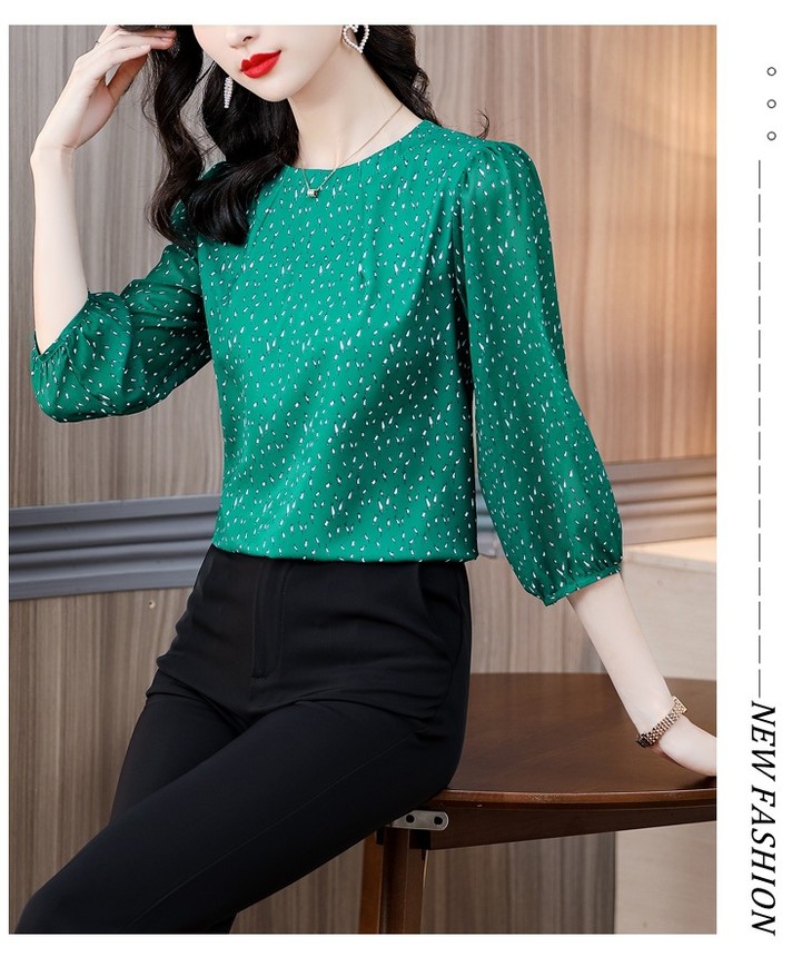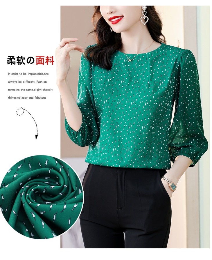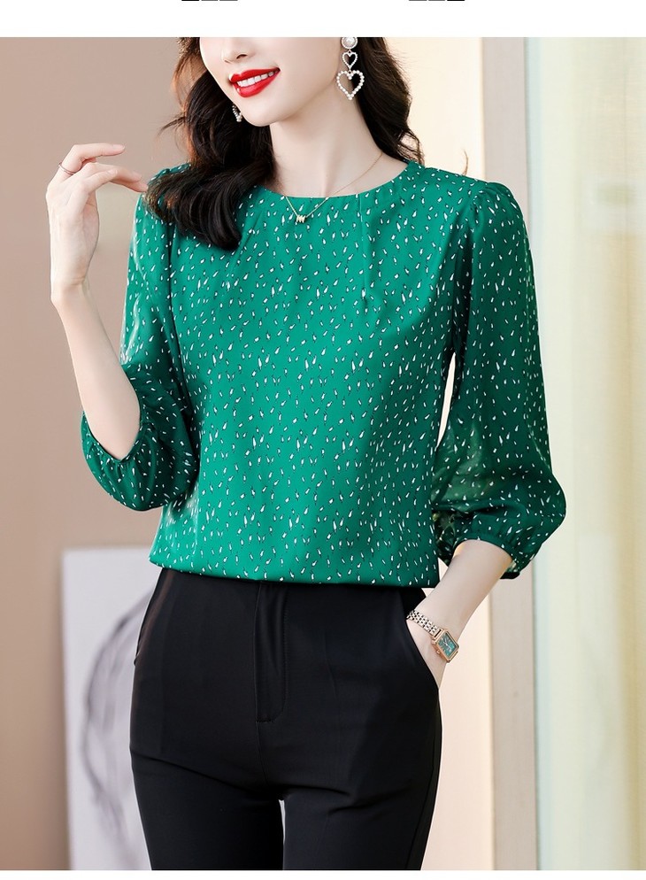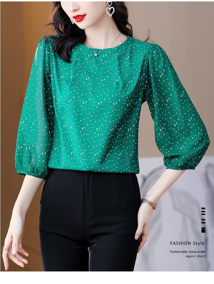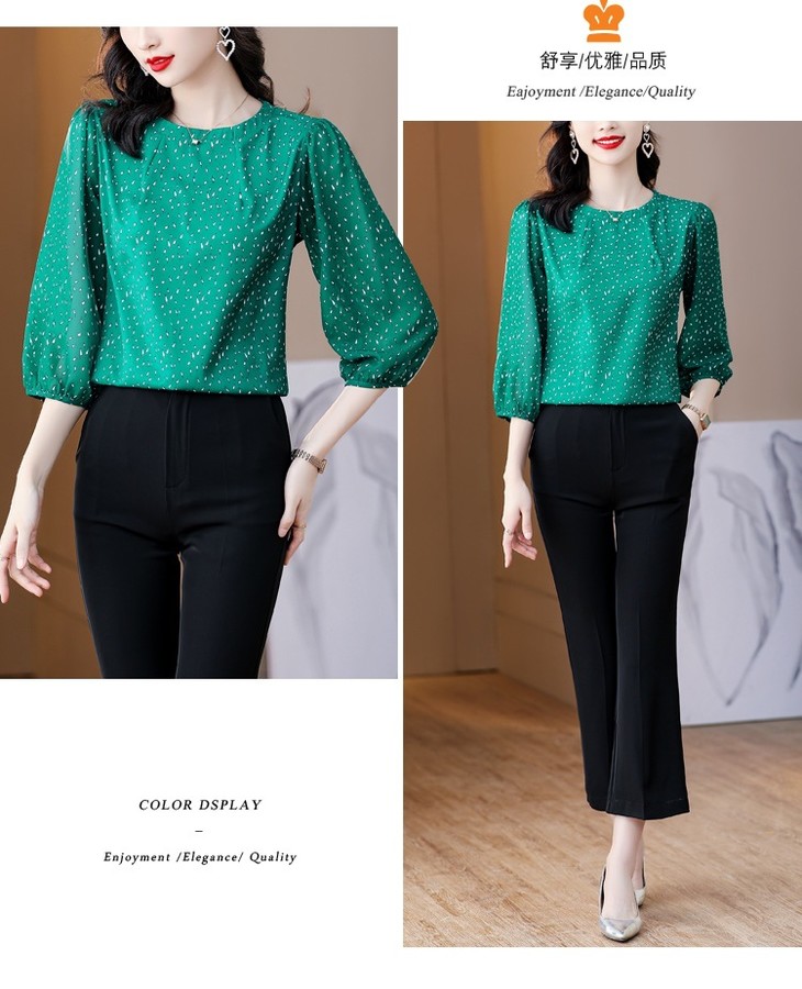 KQLB41N8162 仿真丝衬衫女2022夏新款时尚短袖七分袖印花小衫杭州桑蚕丝上衣