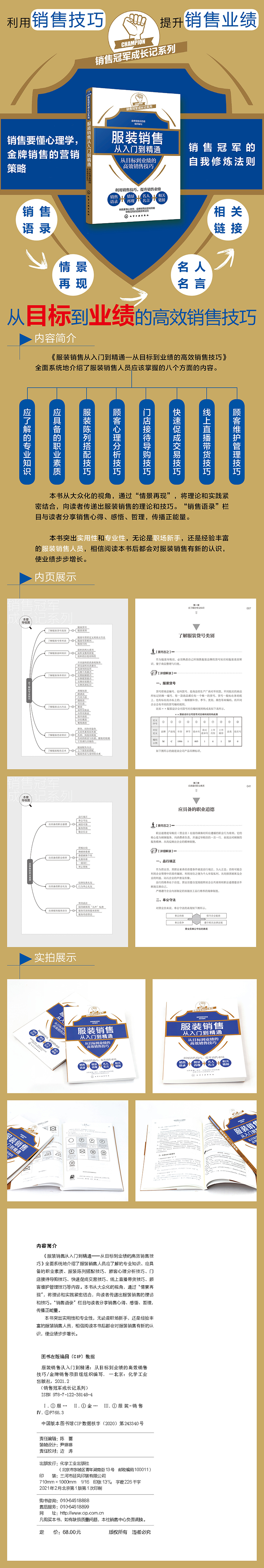 本书突出实用性和专业性,无论是职场新手,还是经验丰富的服装销售人员,相信阅读本书后都会对服装销售有新的认识,使业绩步步增长。