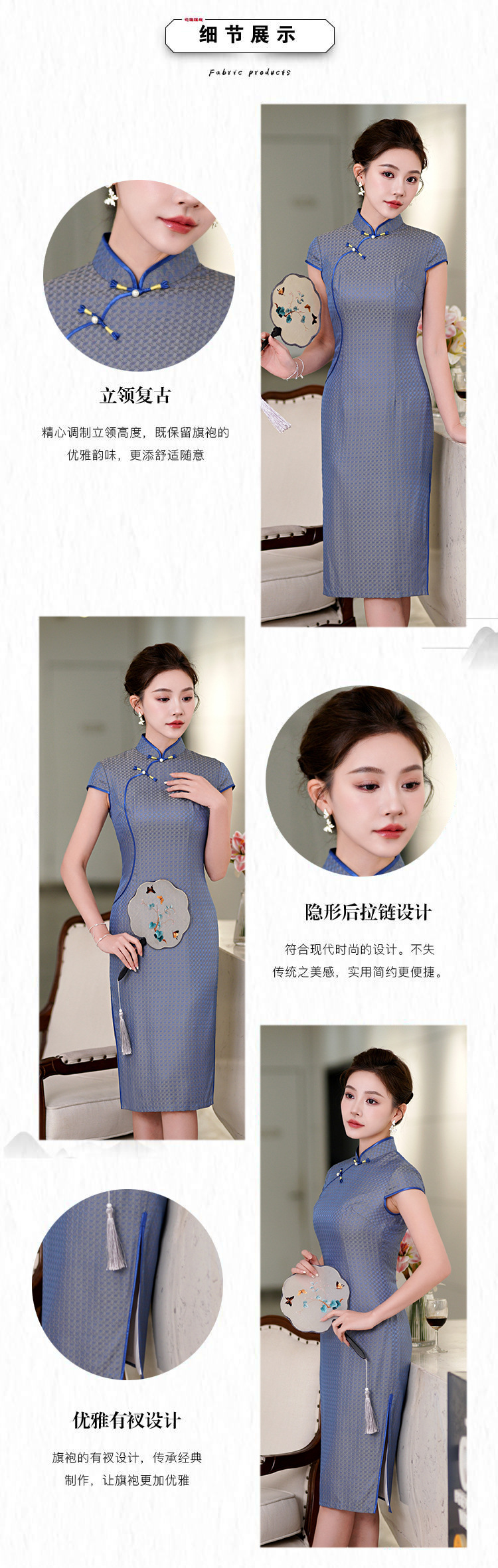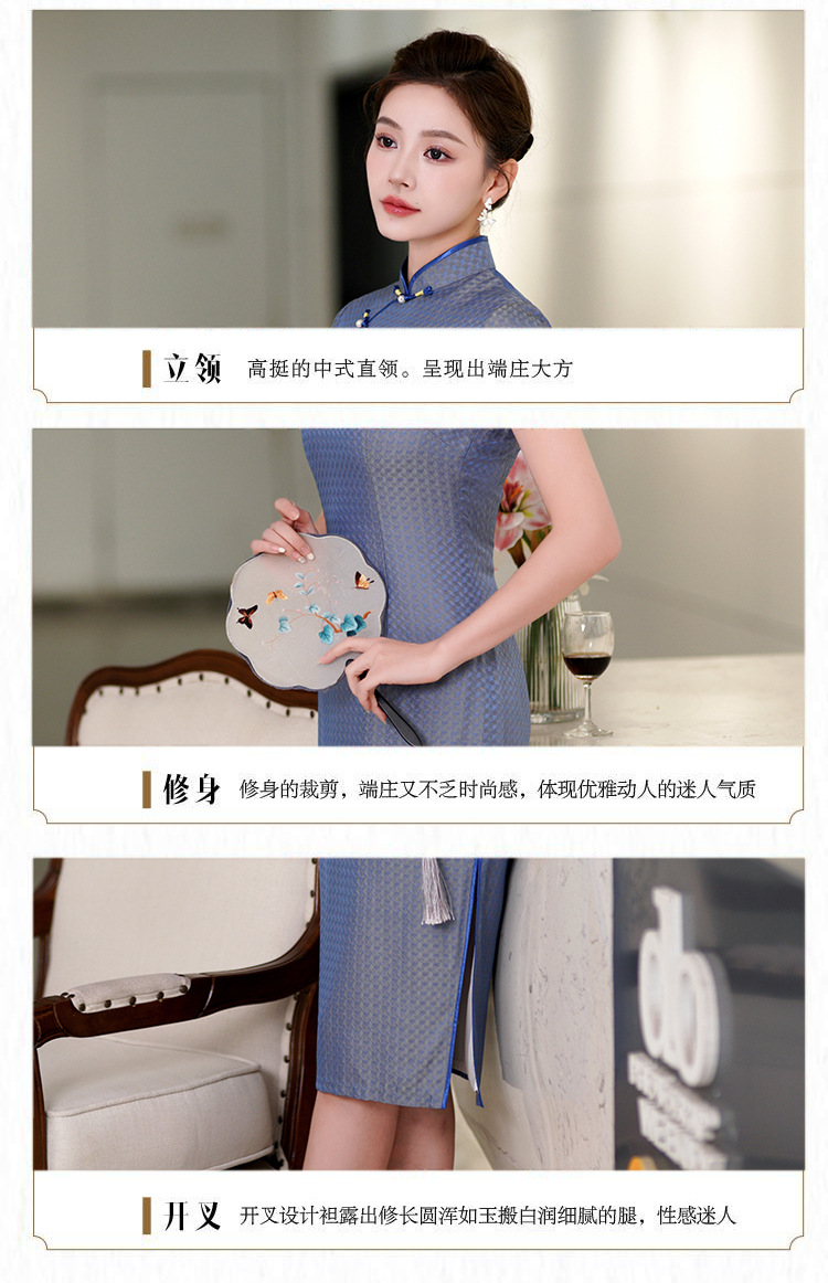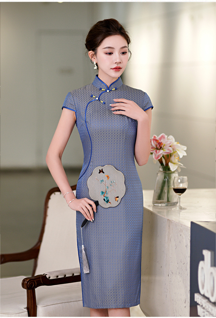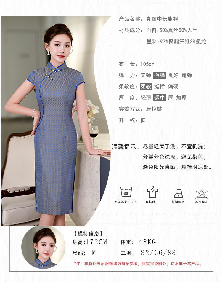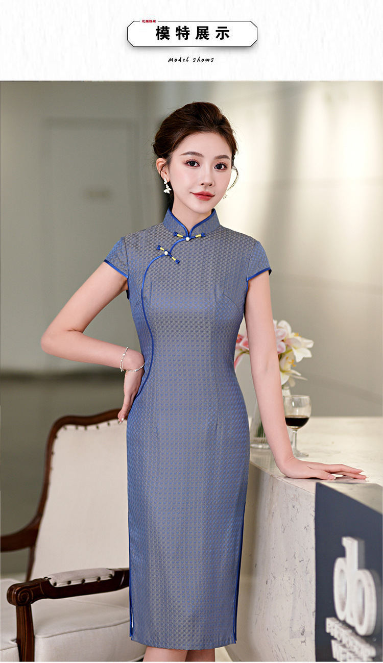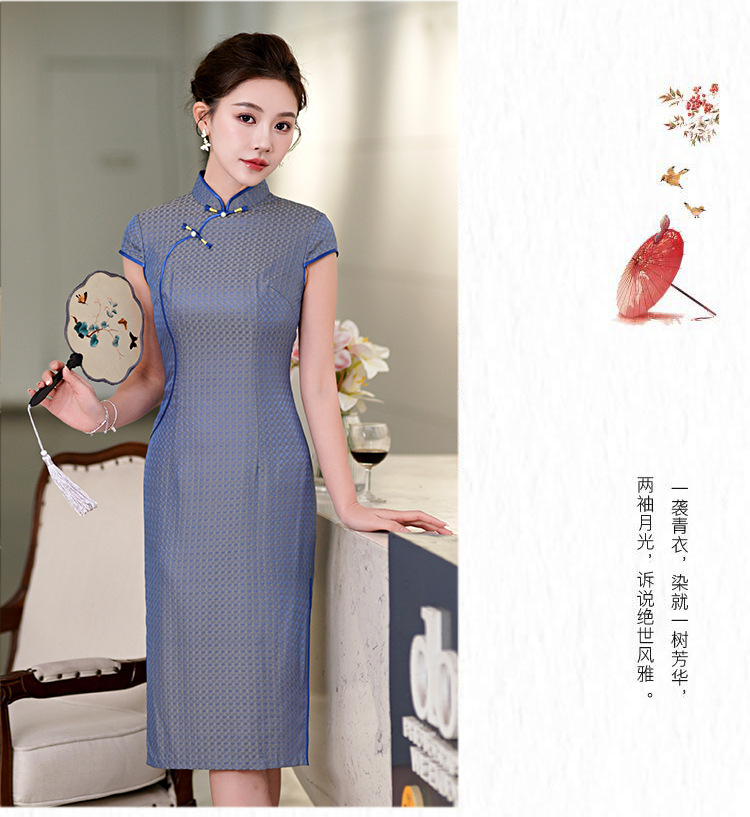 TZRY-214-11新款时尚气质精品真丝中长旗袍绣花旗袍长旗袍复古风修身旗袍