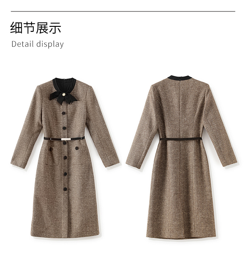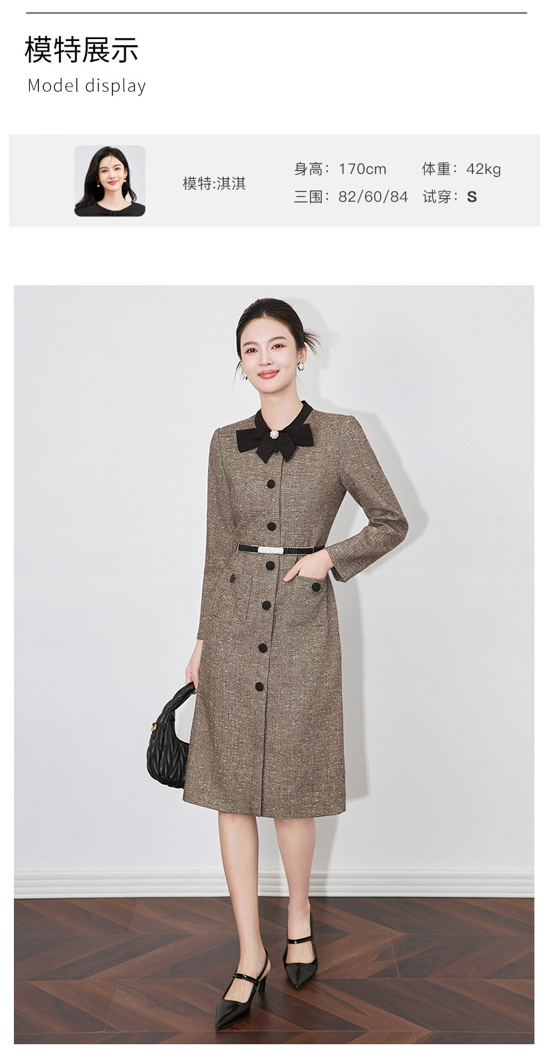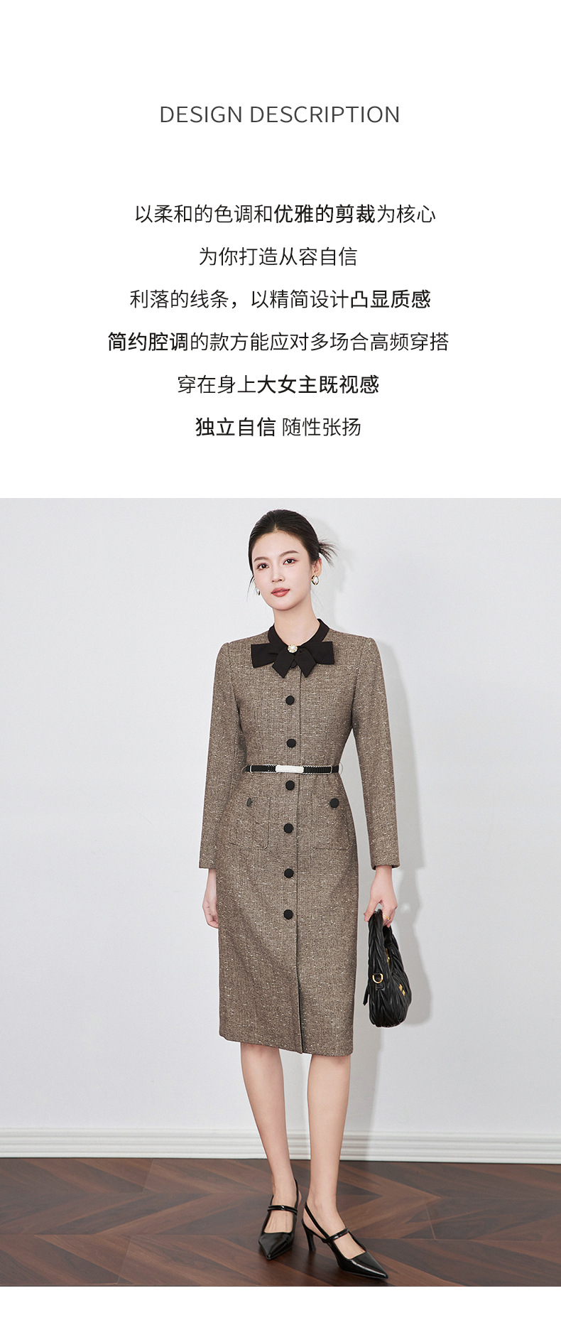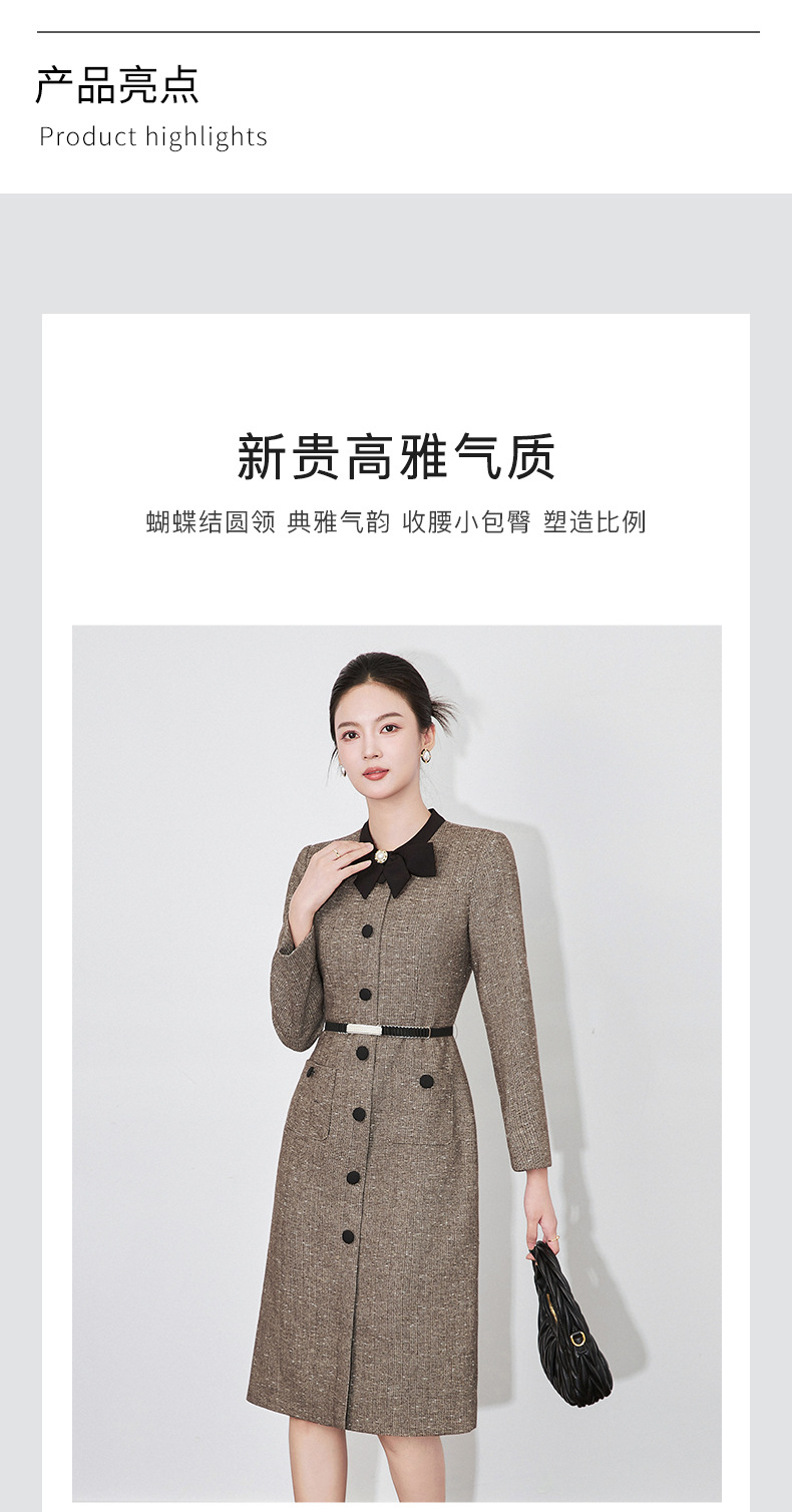 【高货wl】全新升级【铂金会员367/天猫499/差价132】(03952) 洛诗琳秋冬新款复古经典通勤蝴蝶结领显瘦中长款连衣裙