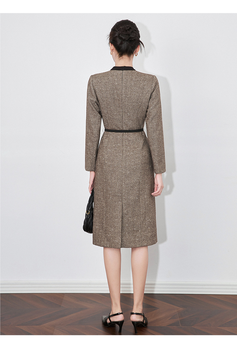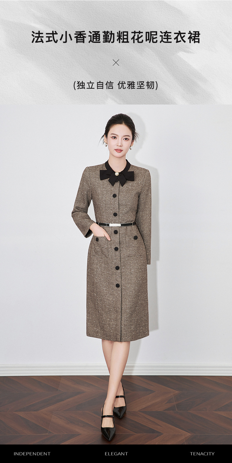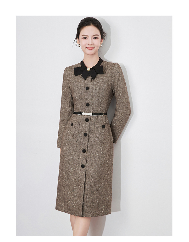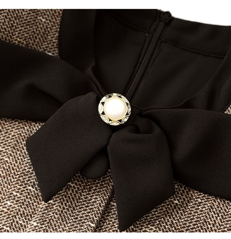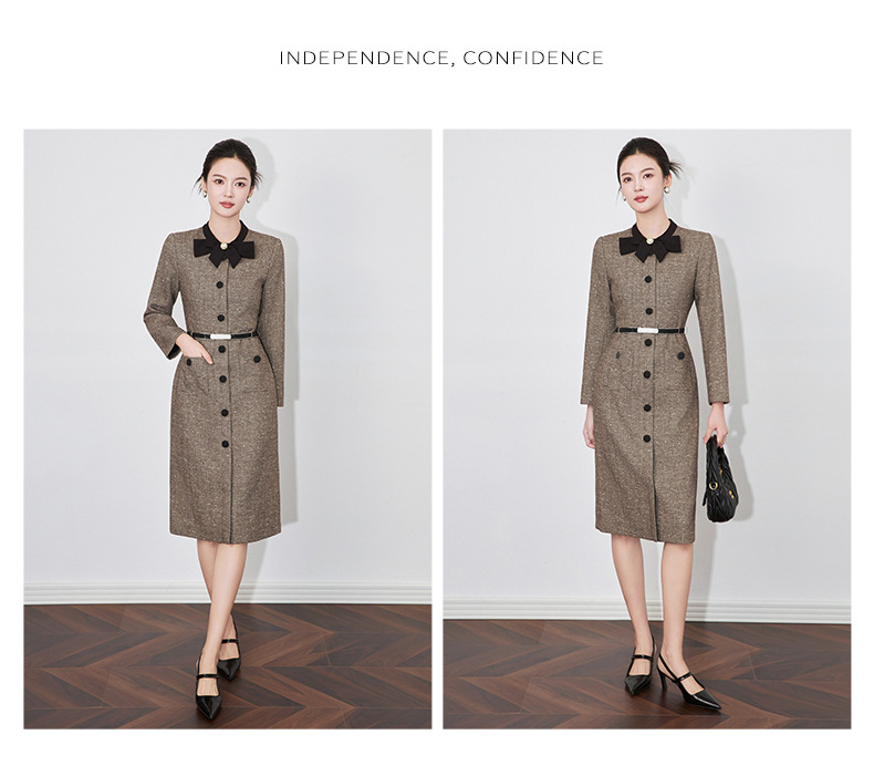 【高货wl】全新升级【铂金会员367/天猫499/差价132】(03952) 洛诗琳秋冬新款复古经典通勤蝴蝶结领显瘦中长款连衣裙