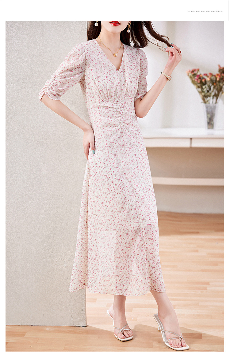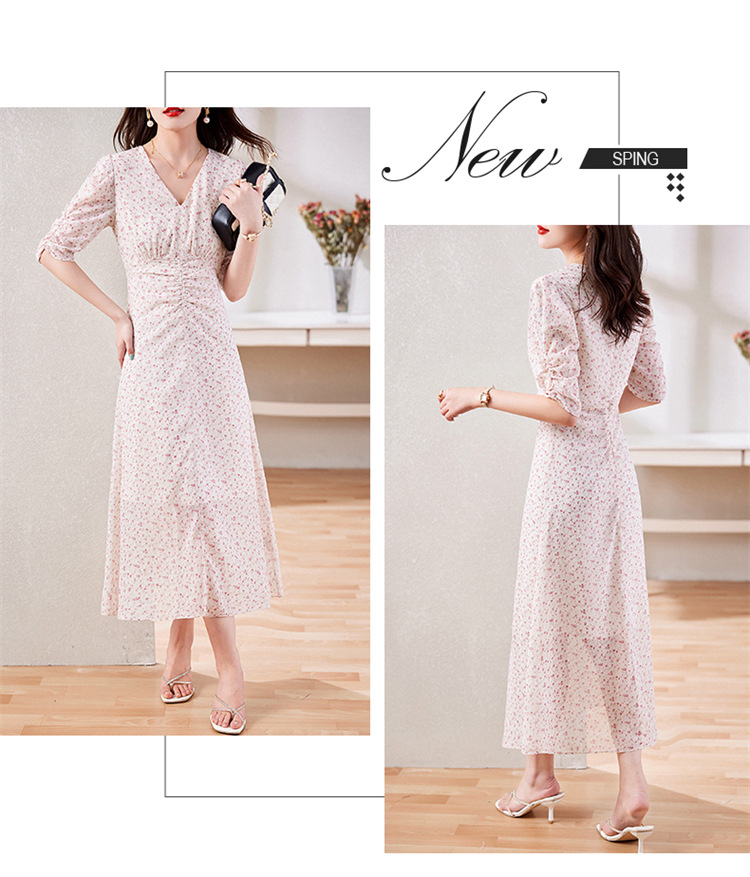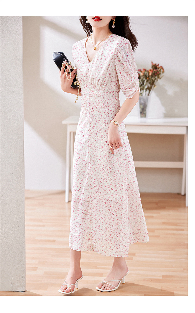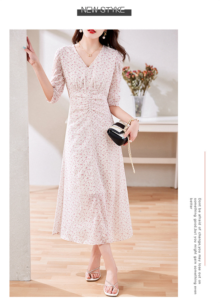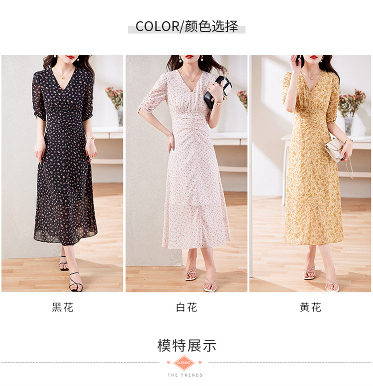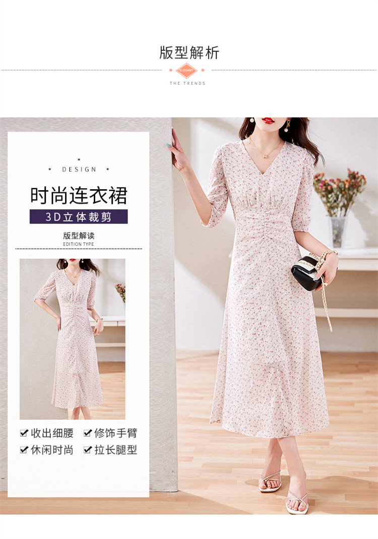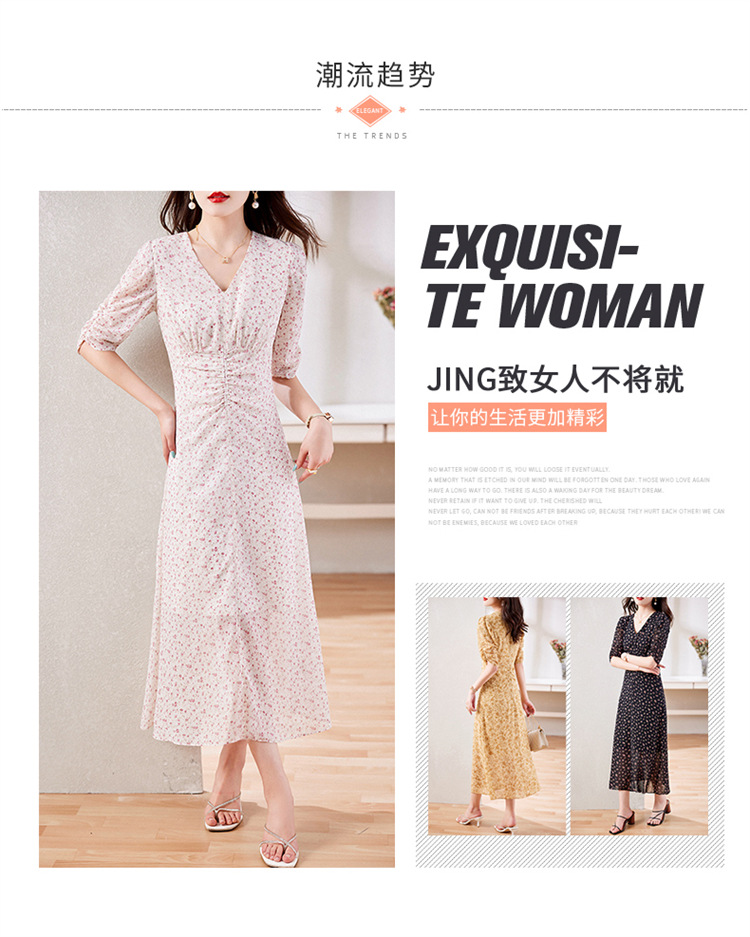 HRWL8639碎花连衣裙女2023年夏季新款韩系气质休闲百搭收腰显瘦中长款裙子