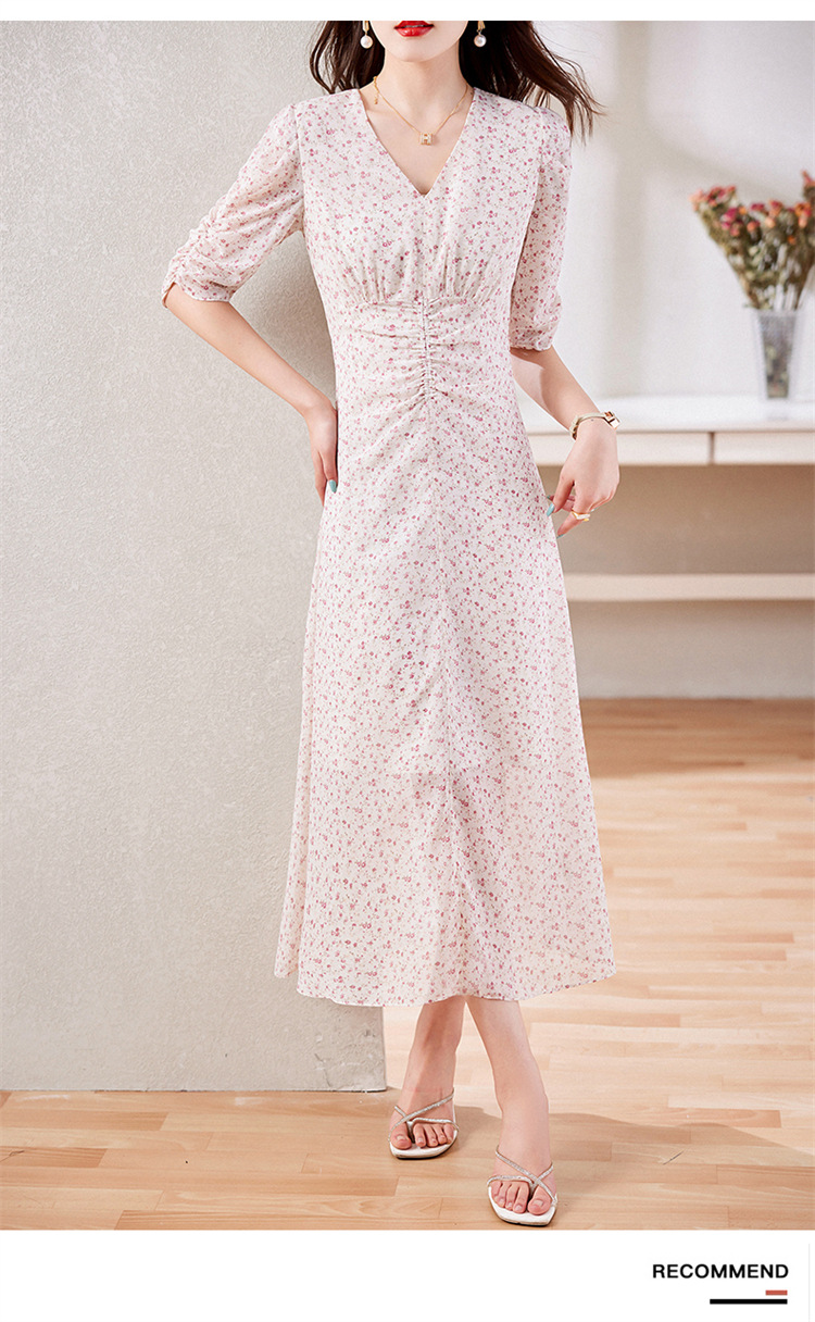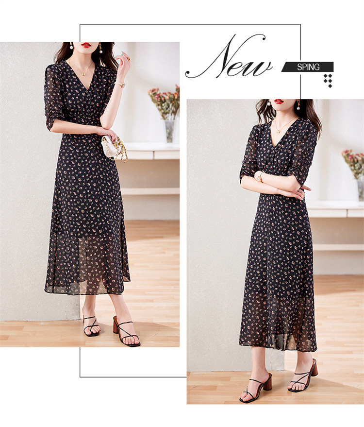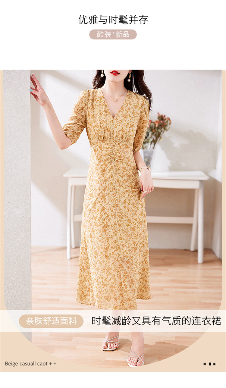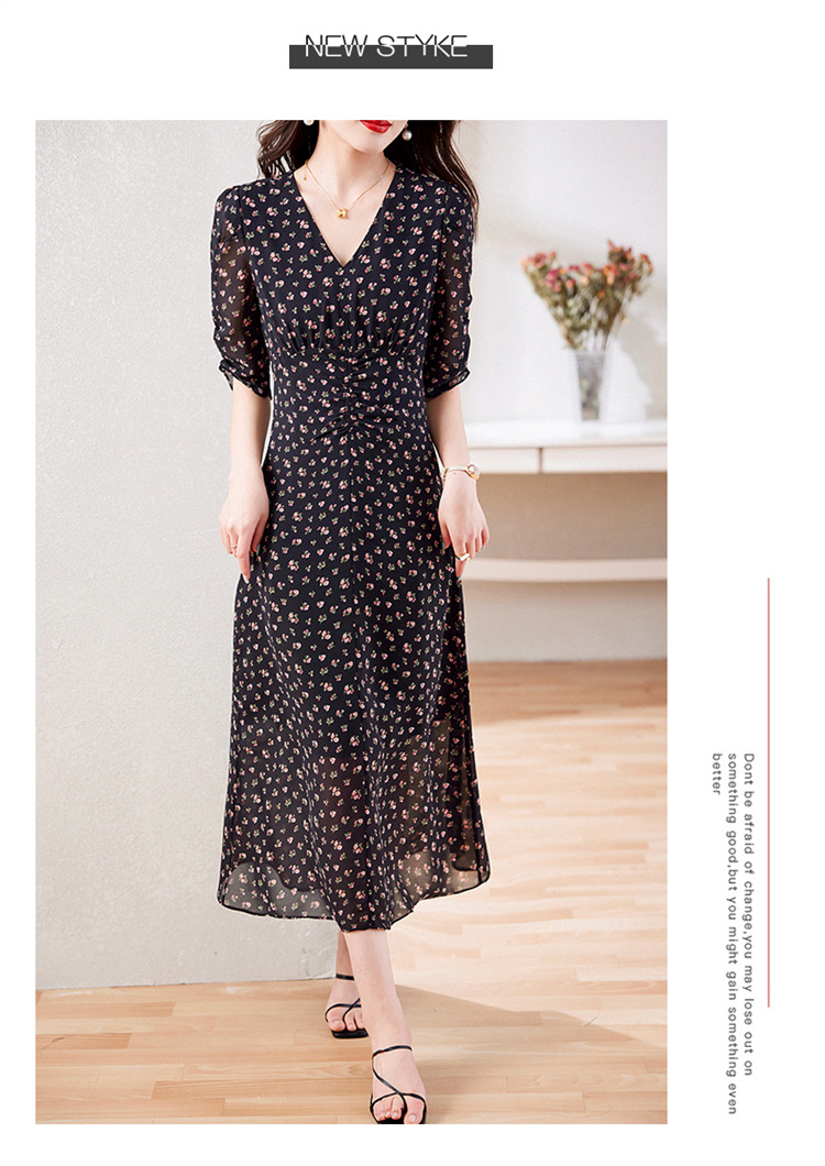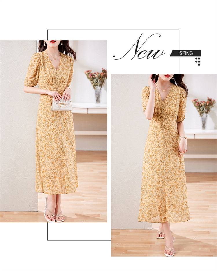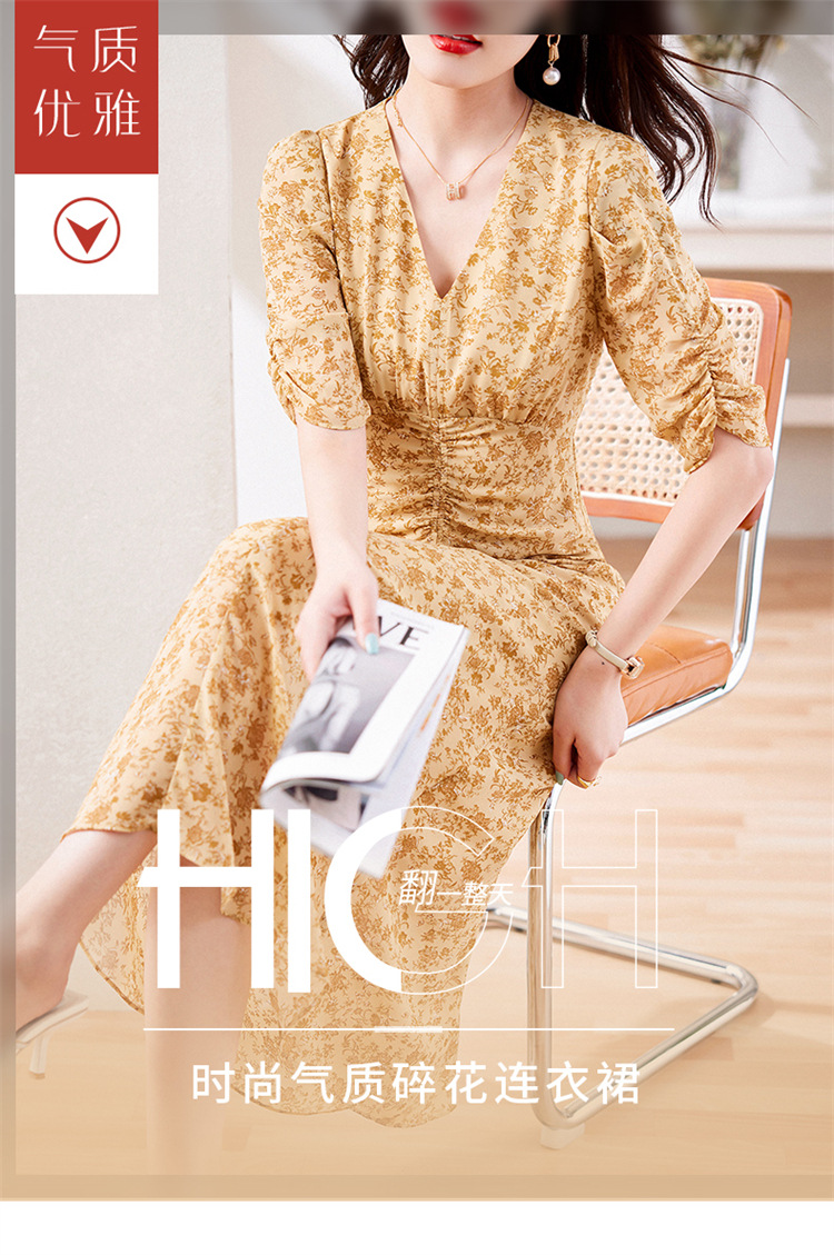 HRWL8639碎花连衣裙女2023年夏季新款韩系气质休闲百搭收腰显瘦中长款裙子