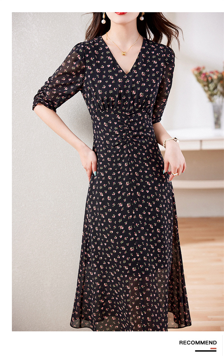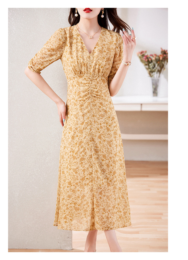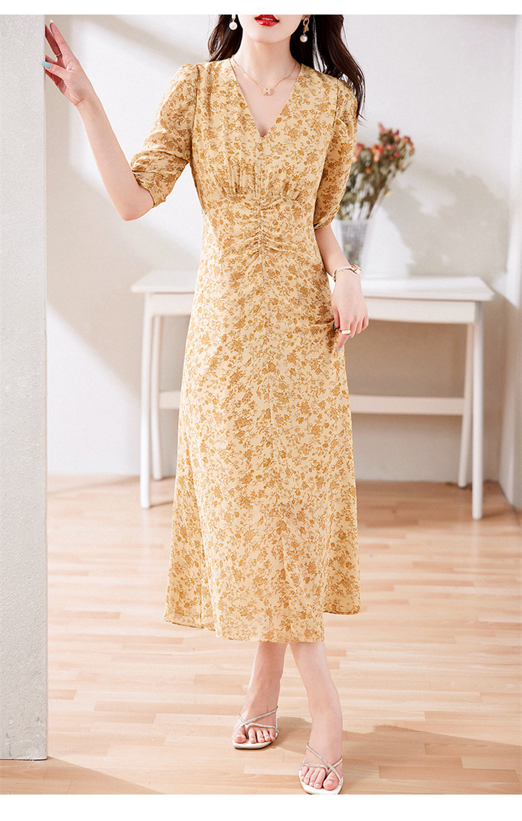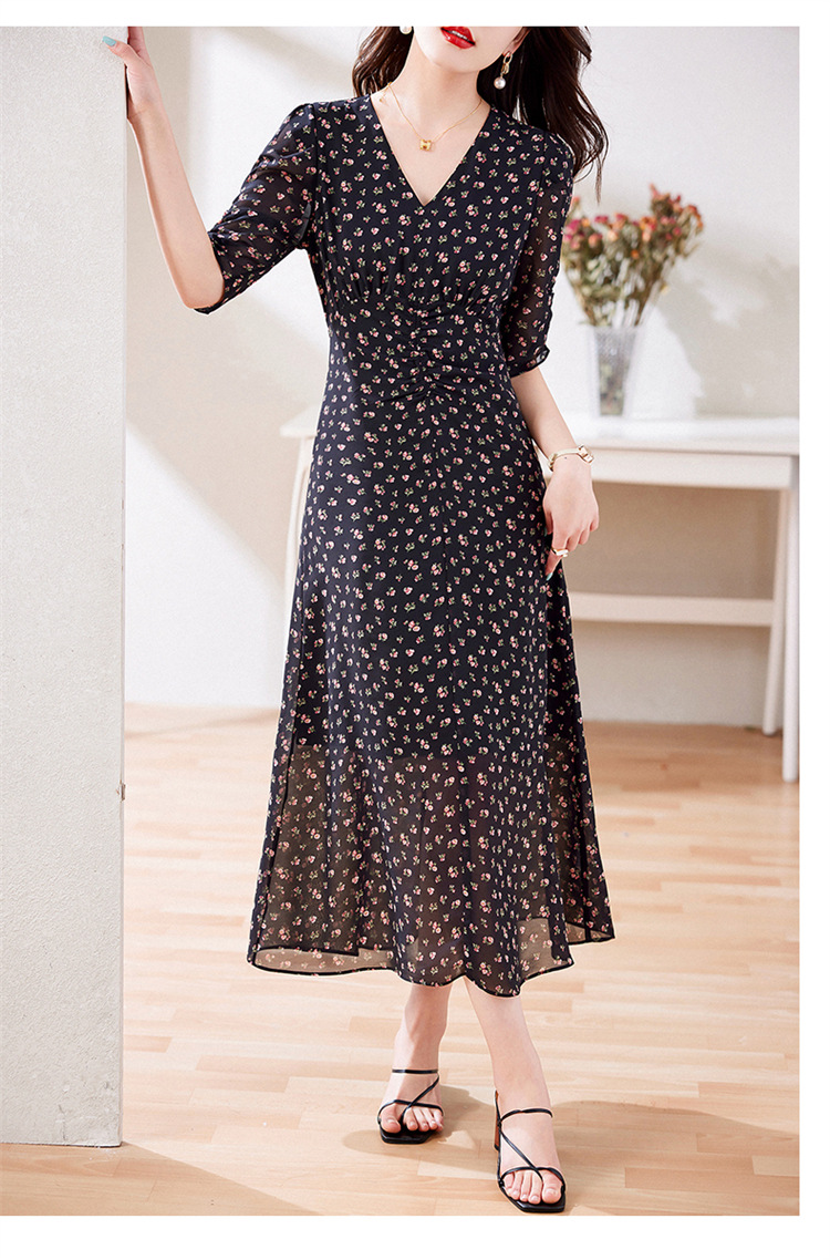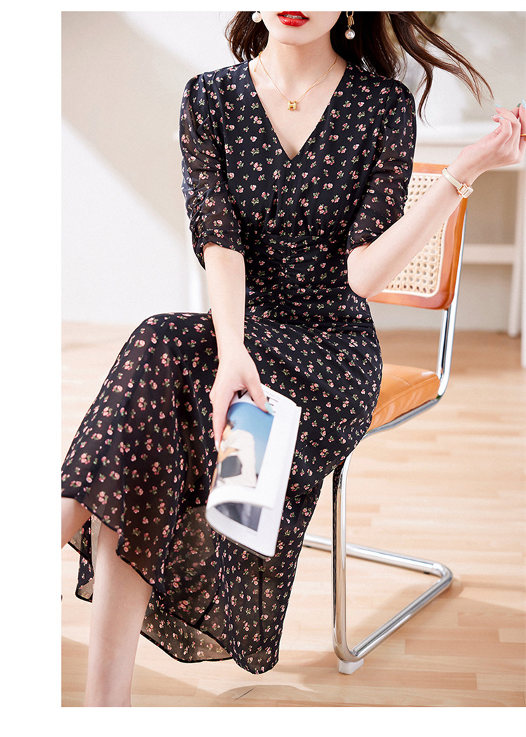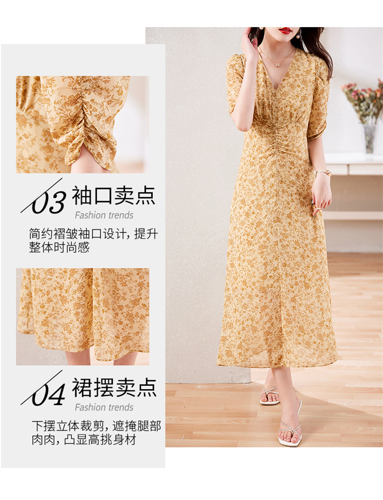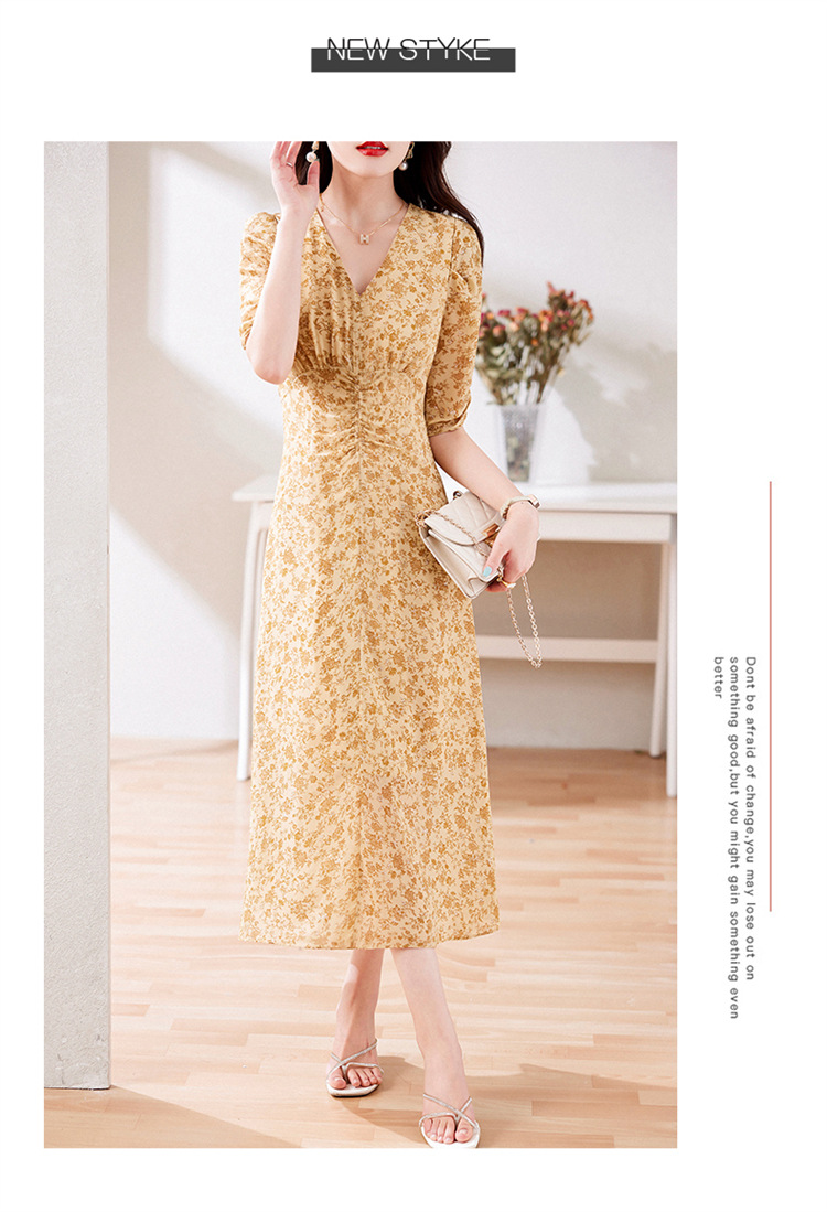 HRWL8639碎花连衣裙女2023年夏季新款韩系气质休闲百搭收腰显瘦中长款裙子