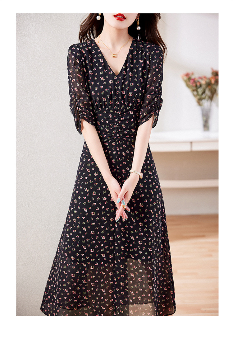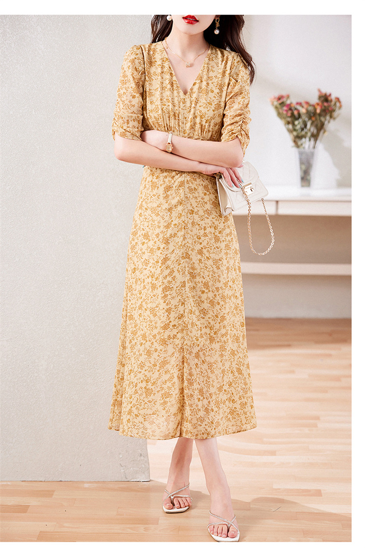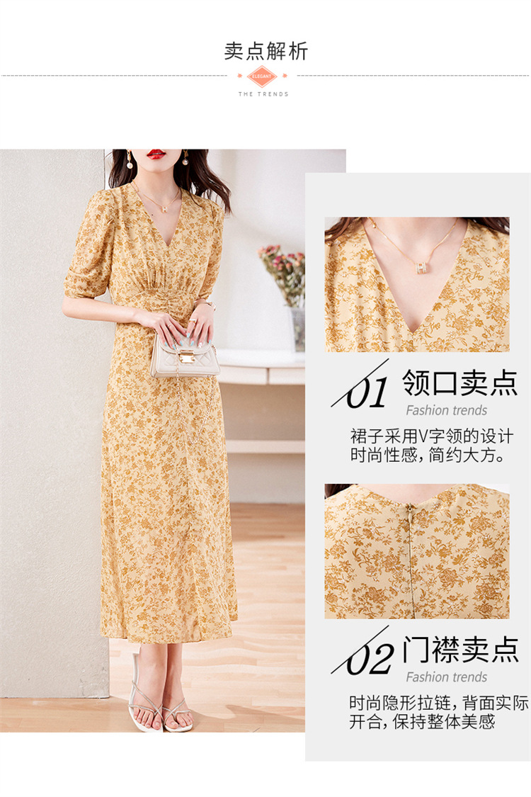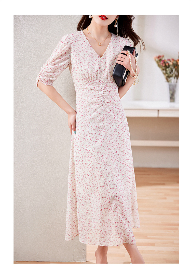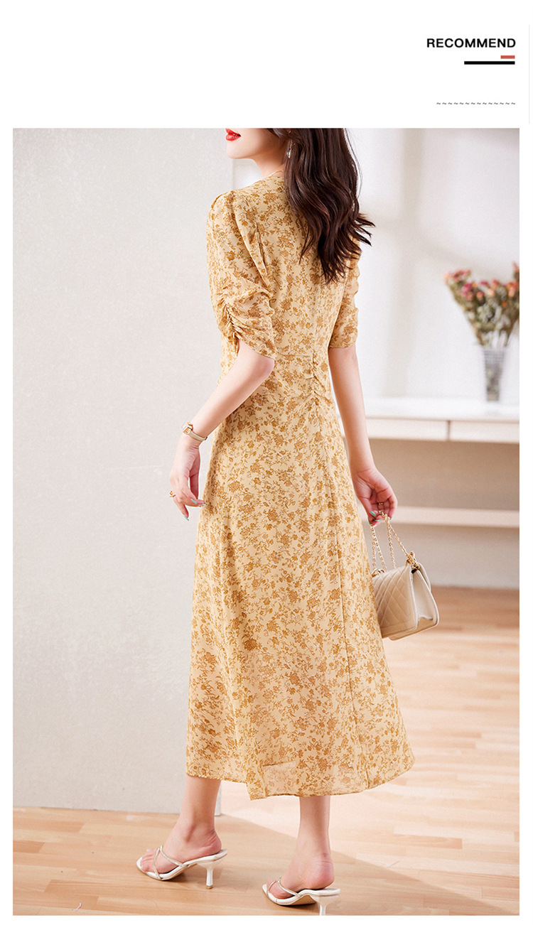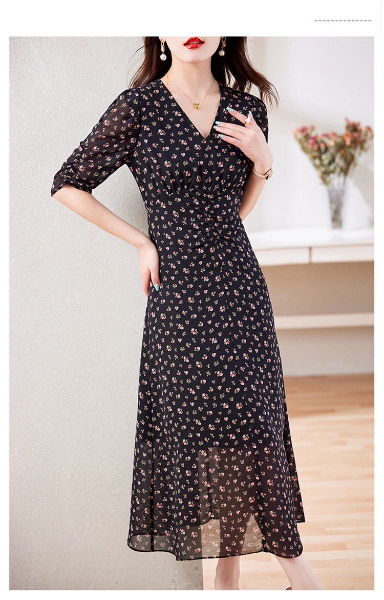 HRWL8639碎花连衣裙女2023年夏季新款韩系气质休闲百搭收腰显瘦中长款裙子
