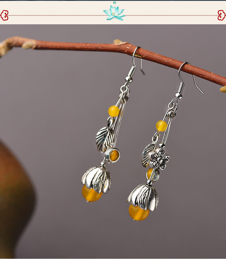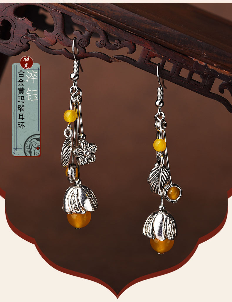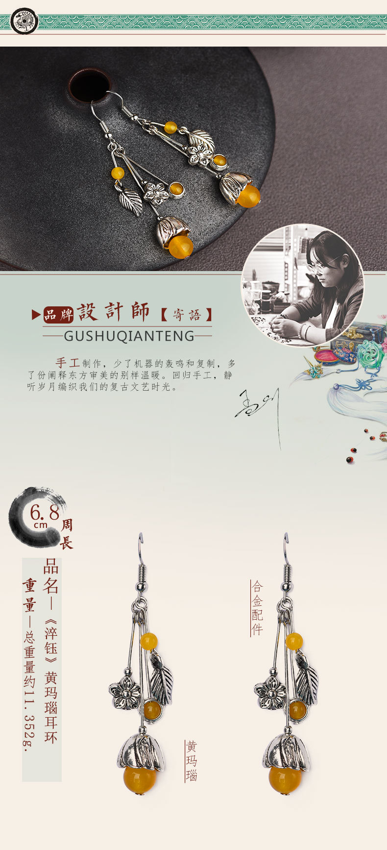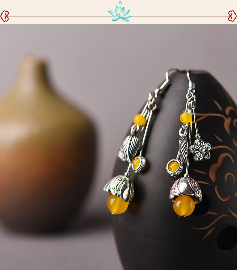 JGL-03220215民族风苗银黄玛瑙耳坠流苏耳饰简约大方百搭耳环