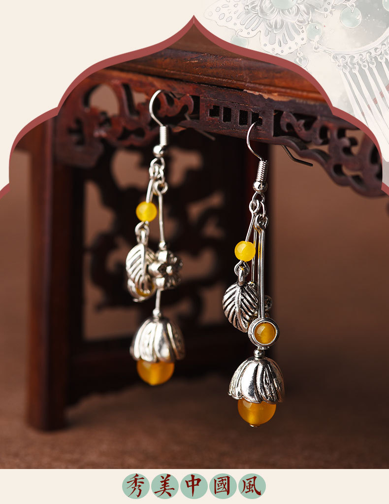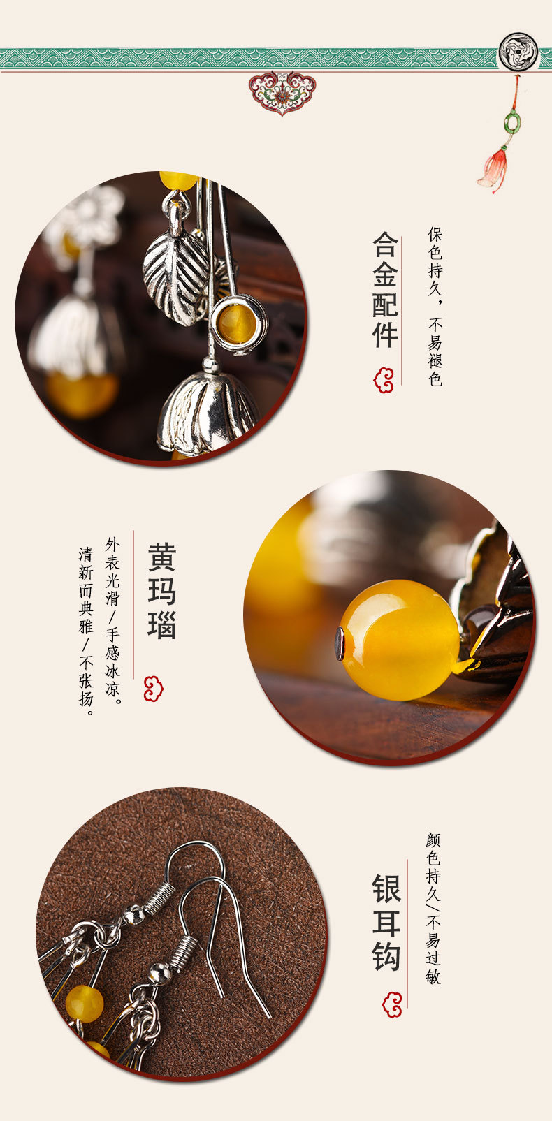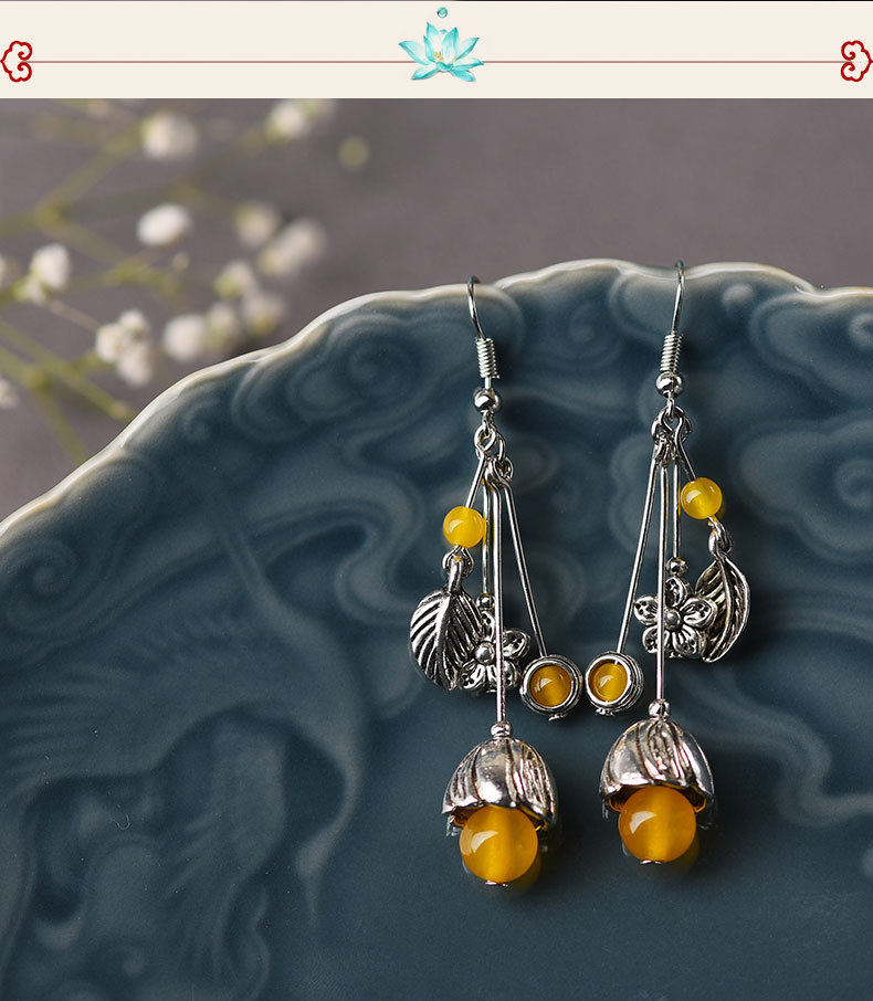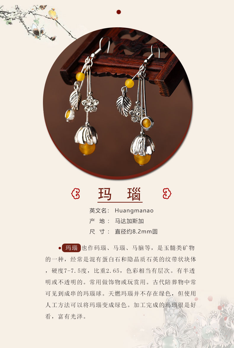 JGL-03220215民族风苗银黄玛瑙耳坠流苏耳饰简约大方百搭耳环