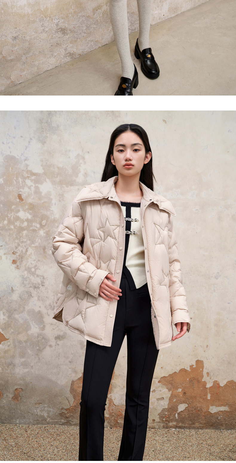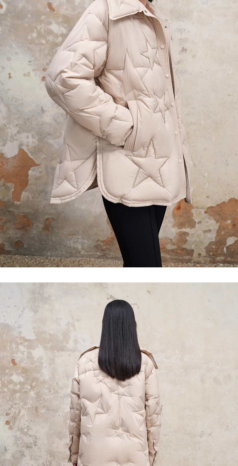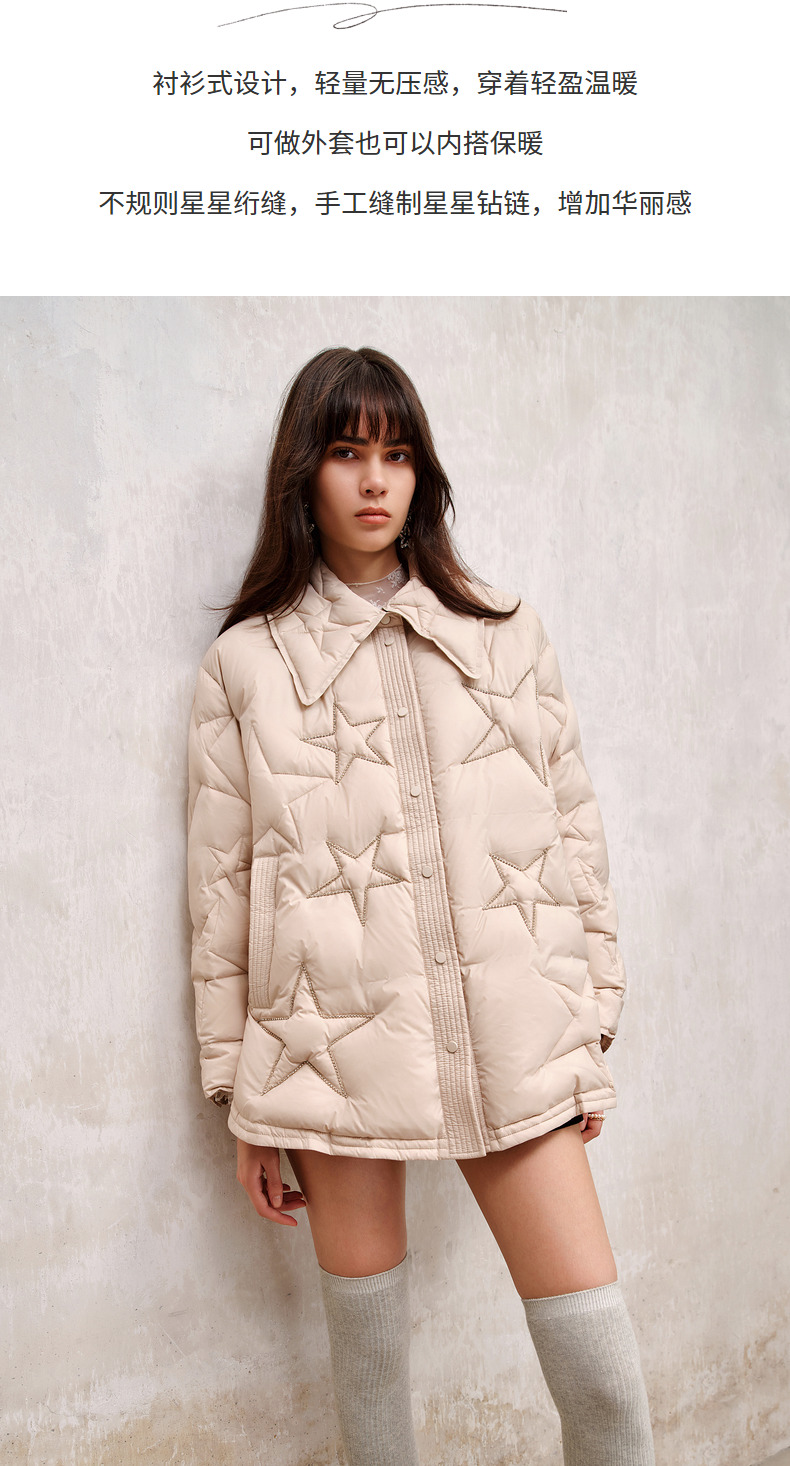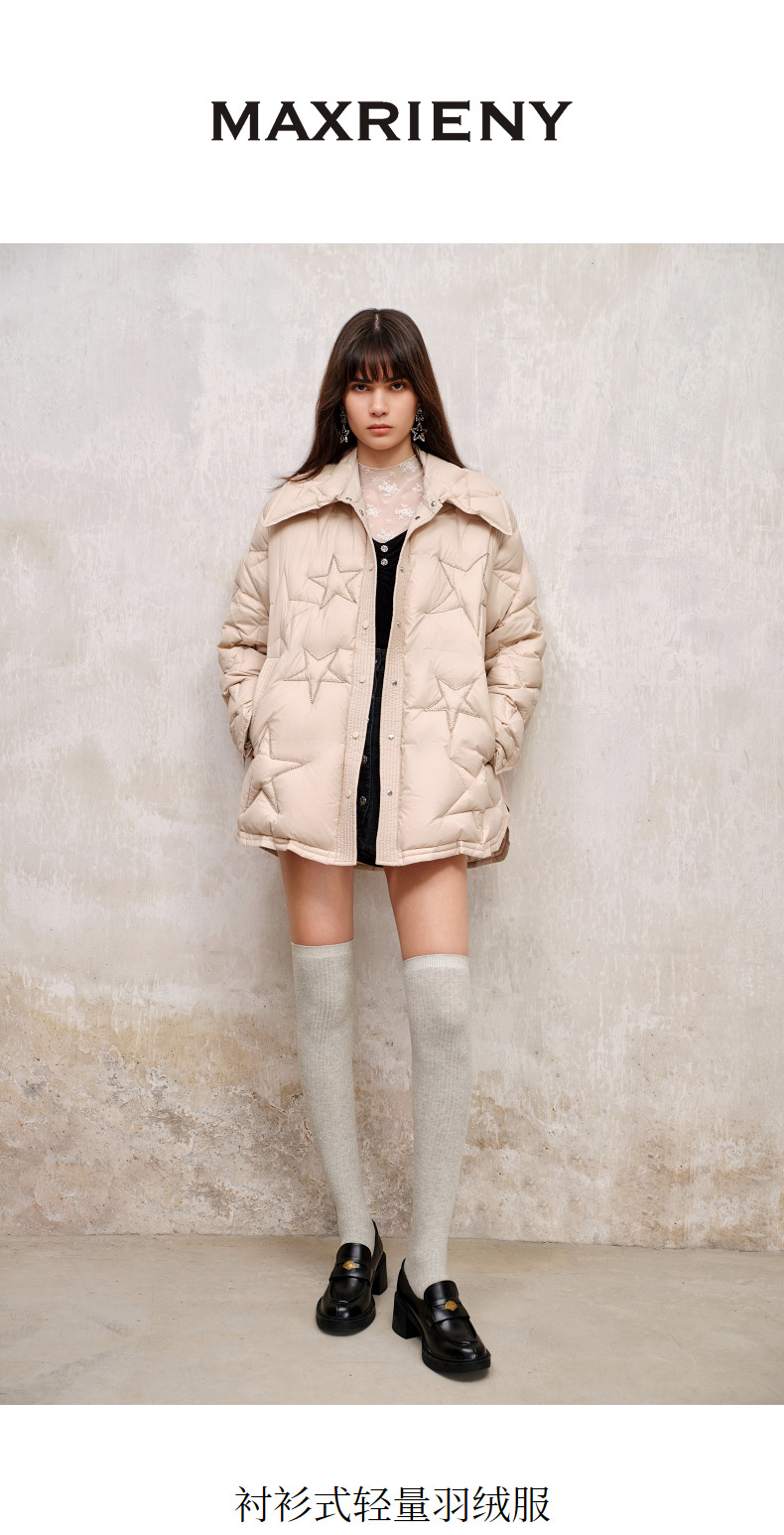 MAXRIENY衬衣式翻领轻薄羽绒服肌理感宽松外套(货号:MS88DC516)