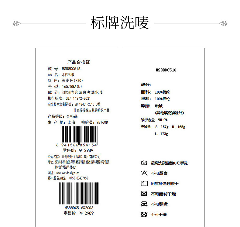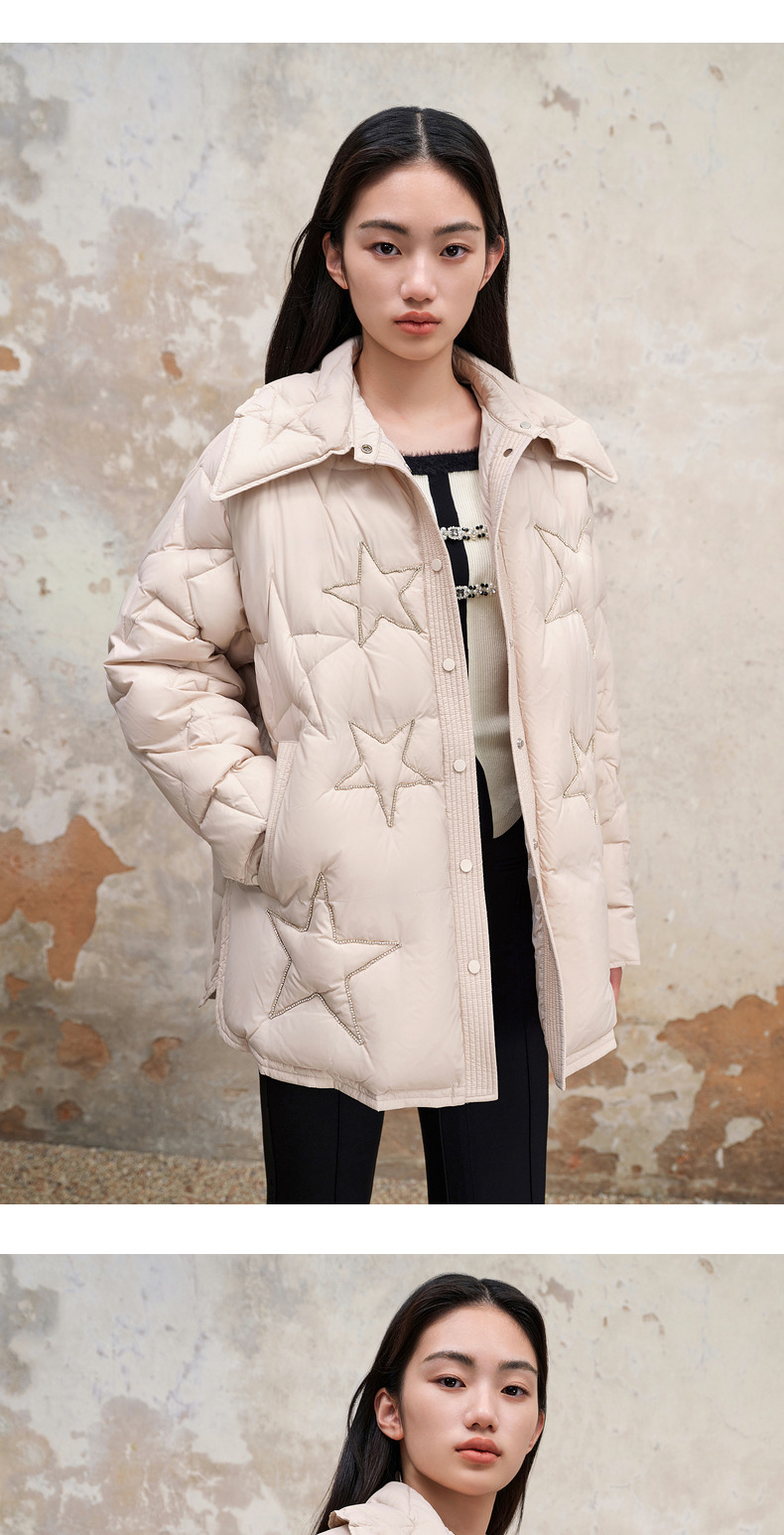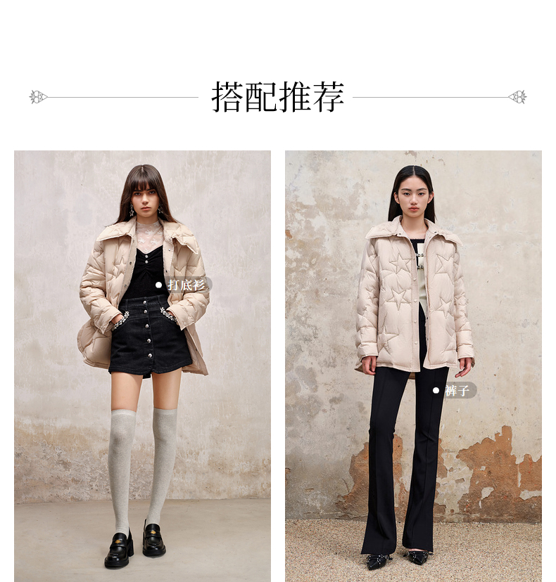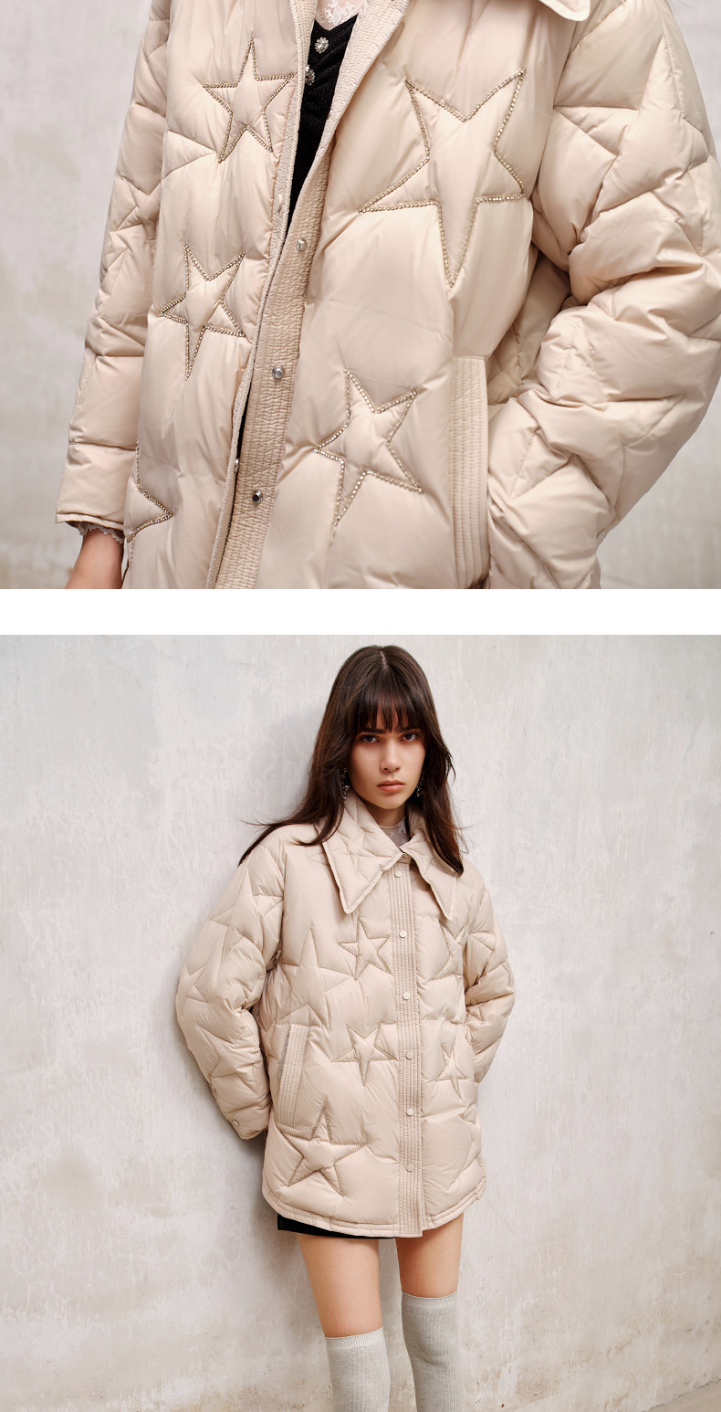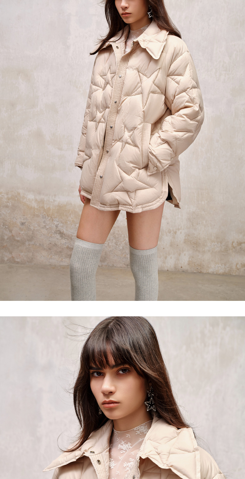 MAXRIENY衬衣式翻领轻薄羽绒服肌理感宽松外套(货号:MS88DC516)