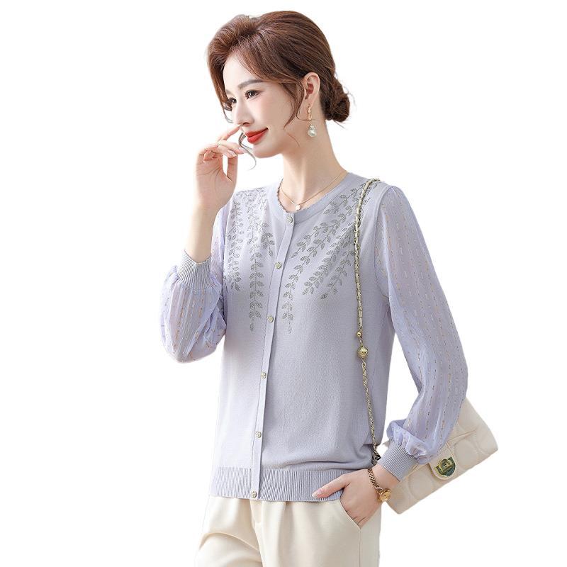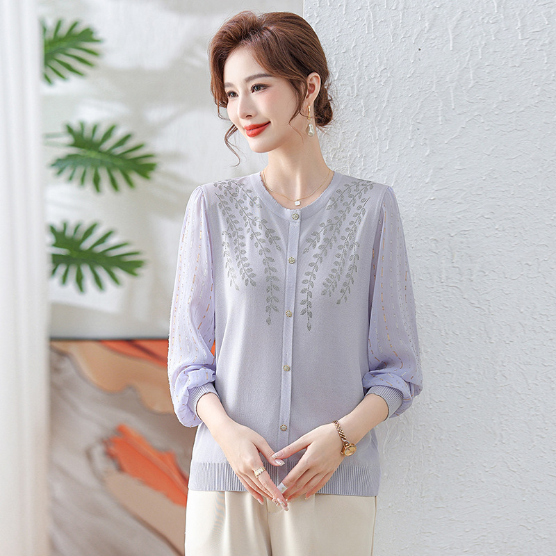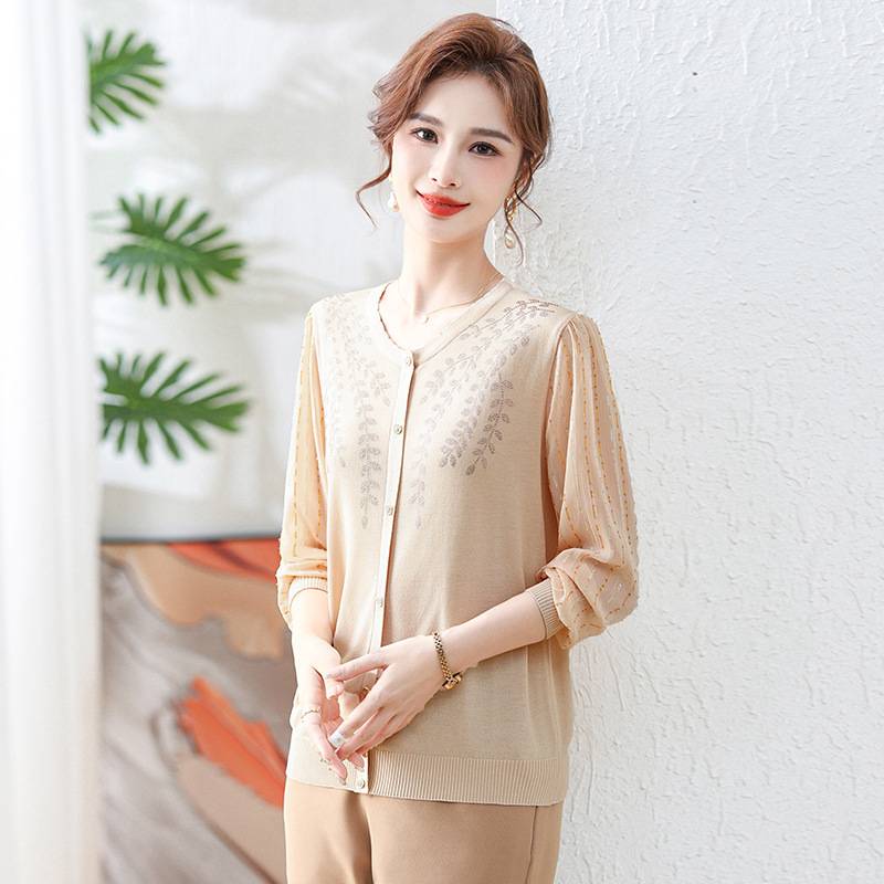 W318-5512-70-中年妈妈秋装针织小衫时尚t恤2025新款中老年女士春夏季洋气上衣