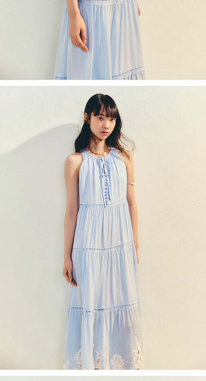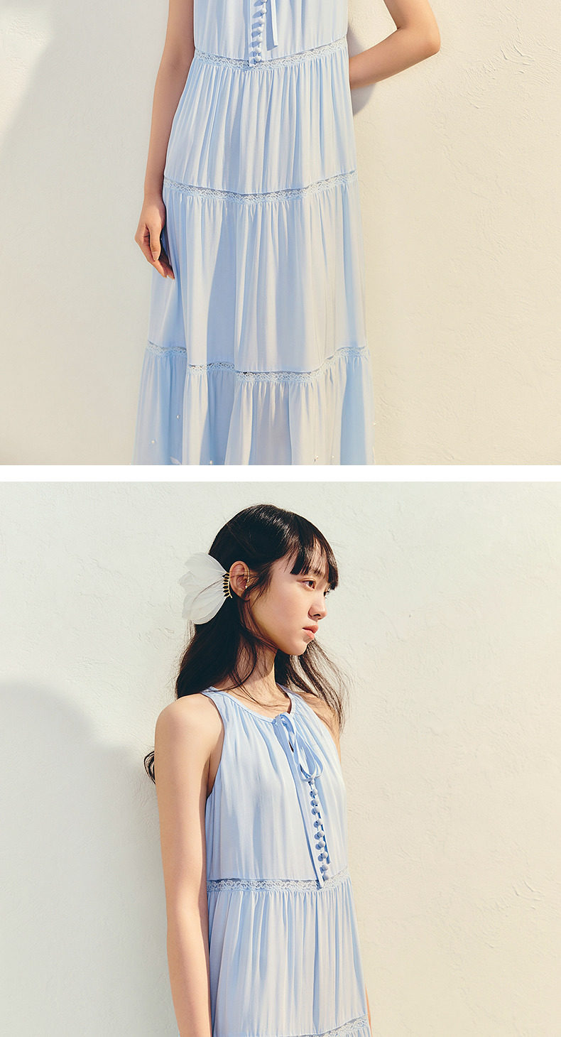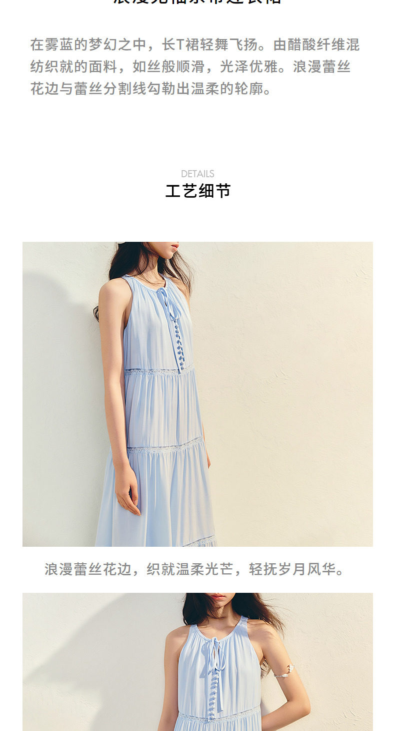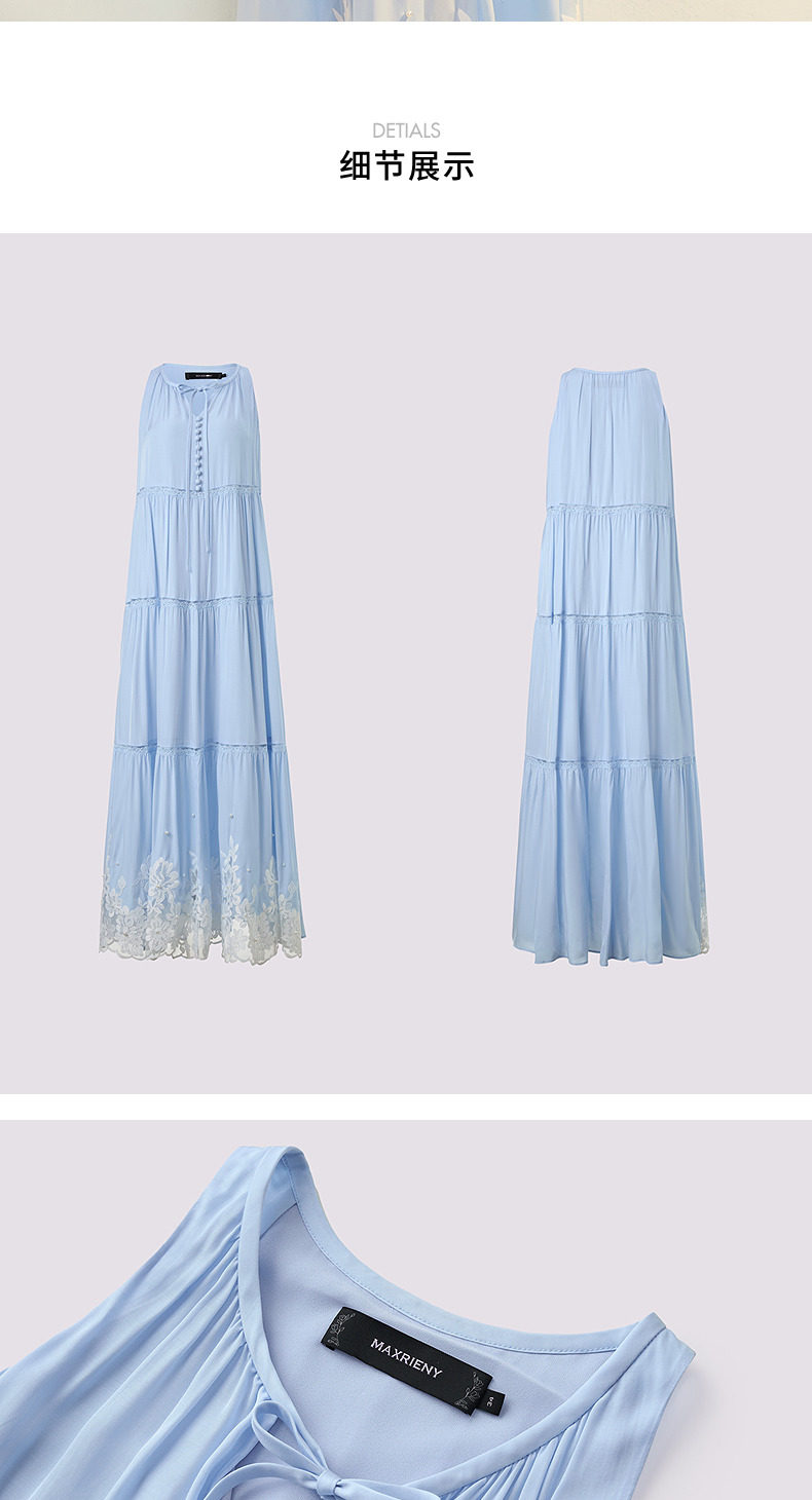 【商场同款】MAXRIENY优雅度假风连衣裙25夏款肌理感脖挂吊带长裙(货号:MC86DR063)