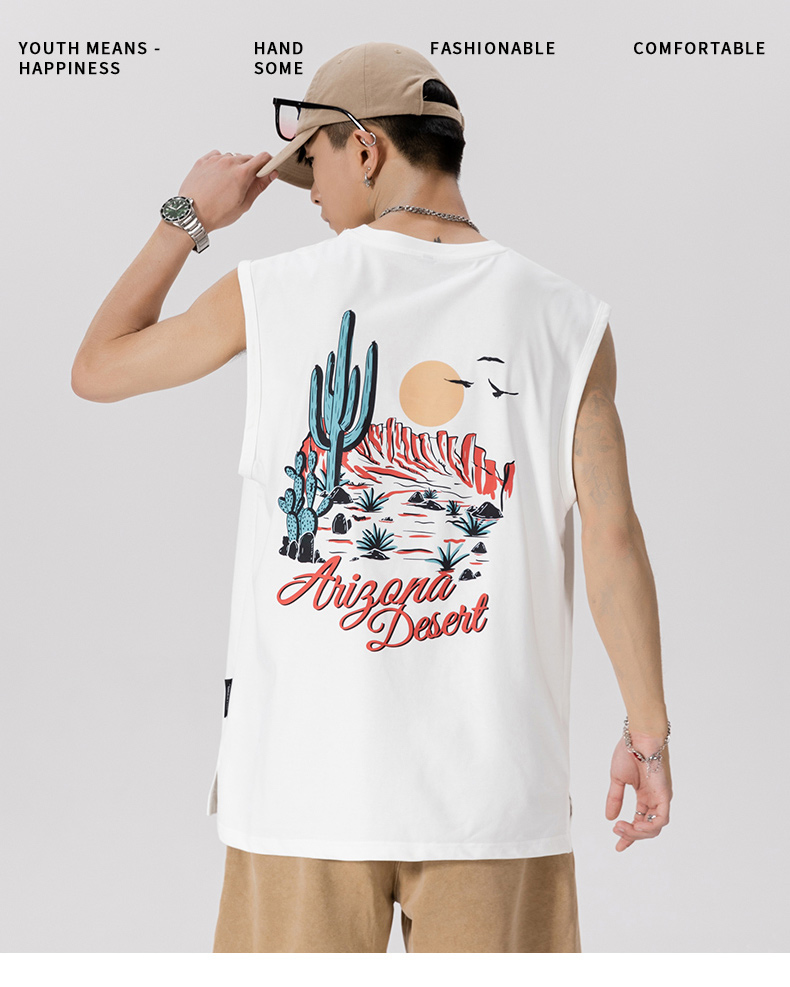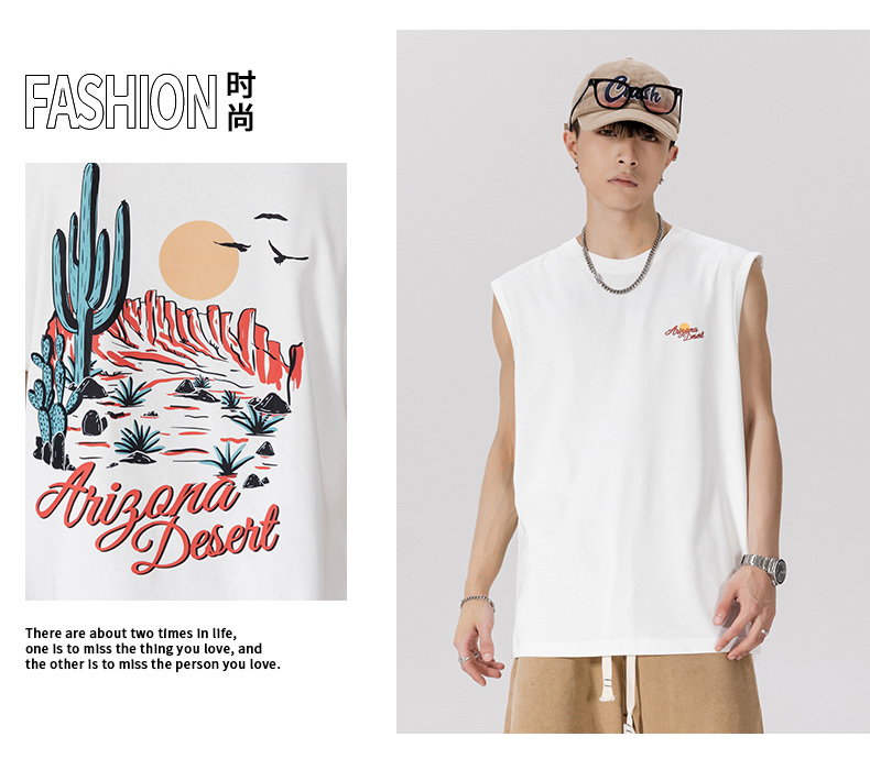 【新款DQ】大码男装夏季印花宽肩背心无袖T恤多色潮牌宽松男士夏季上衣肥佬加肥加大