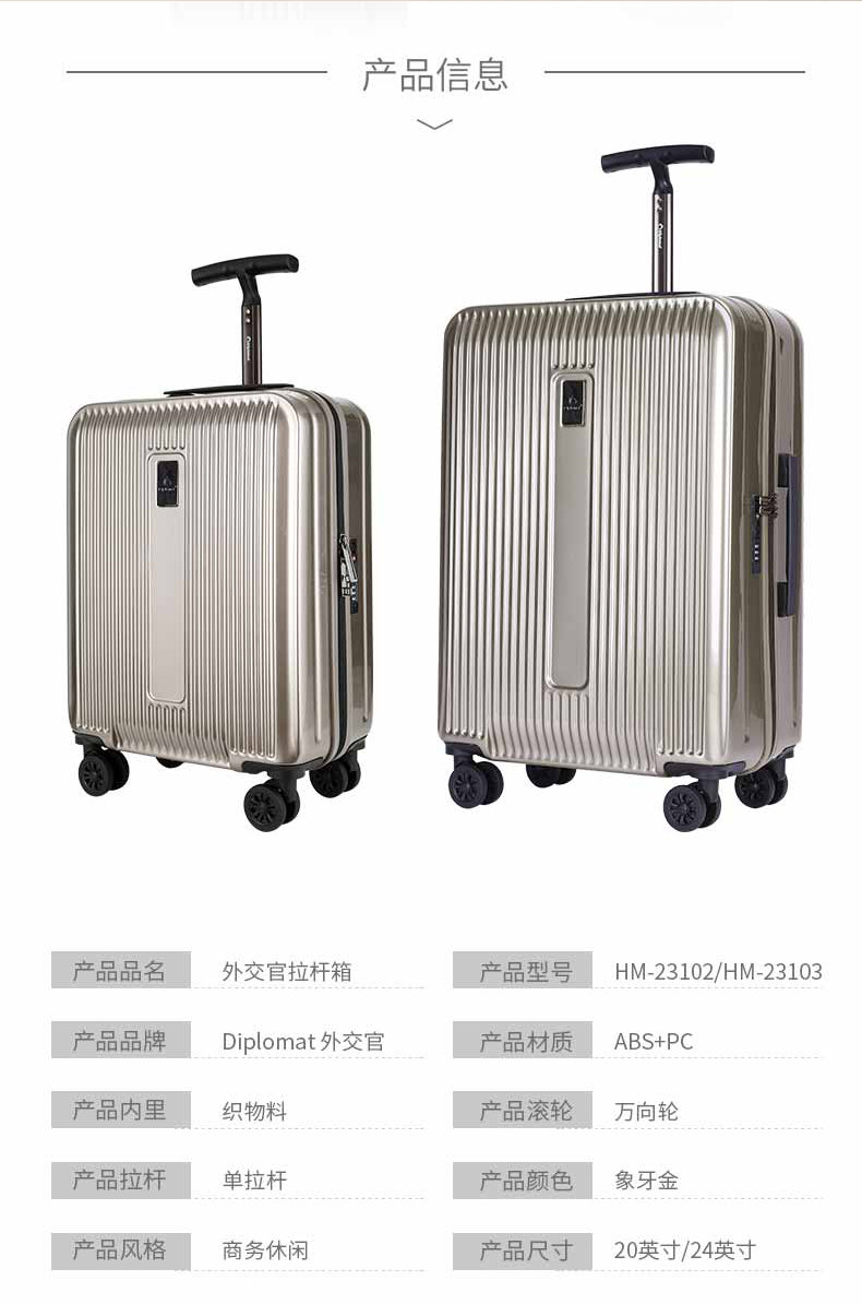 外交官象牙金时尚亮面拉杆箱HM-23102/23103