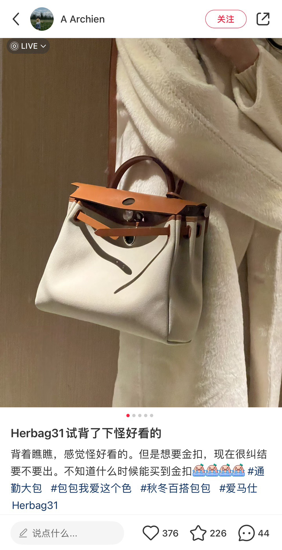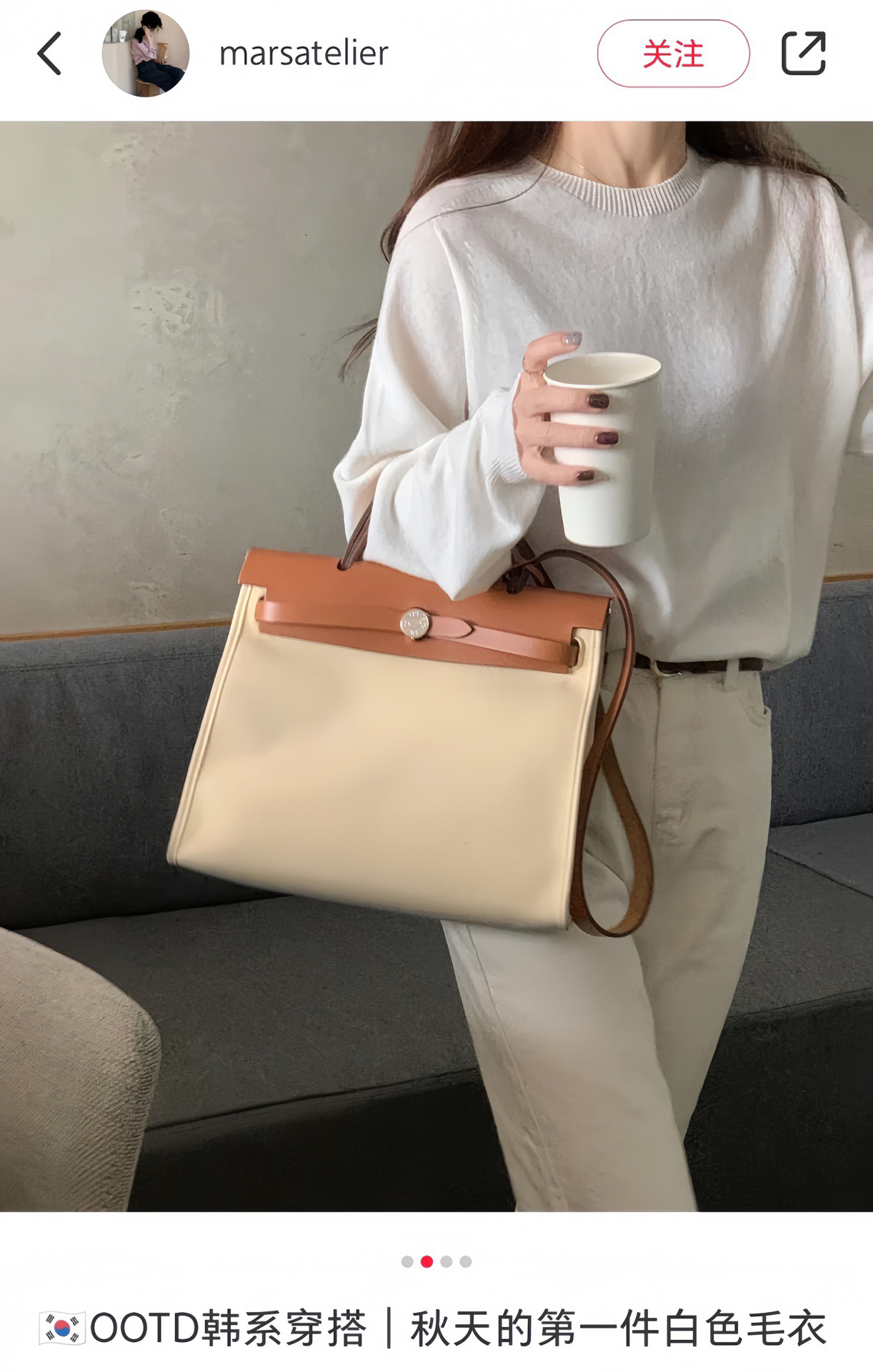 老钱风的代表old money最爱的Hermes herbag31冰川白 帆布包终于出货了!