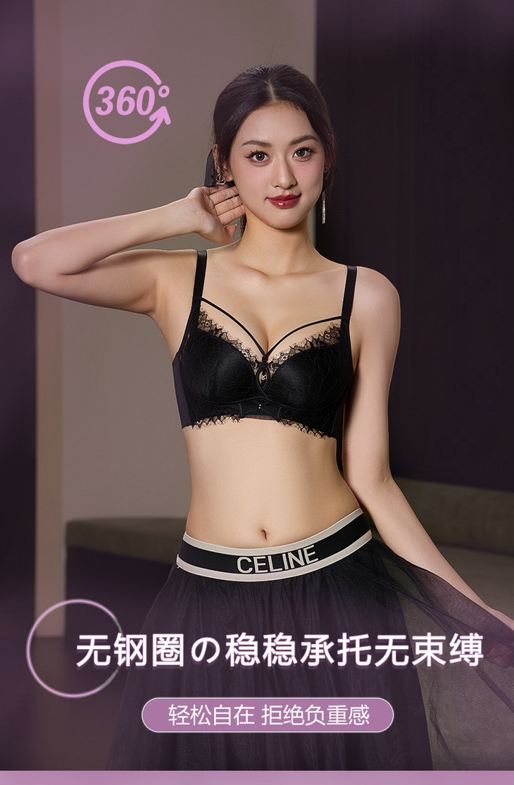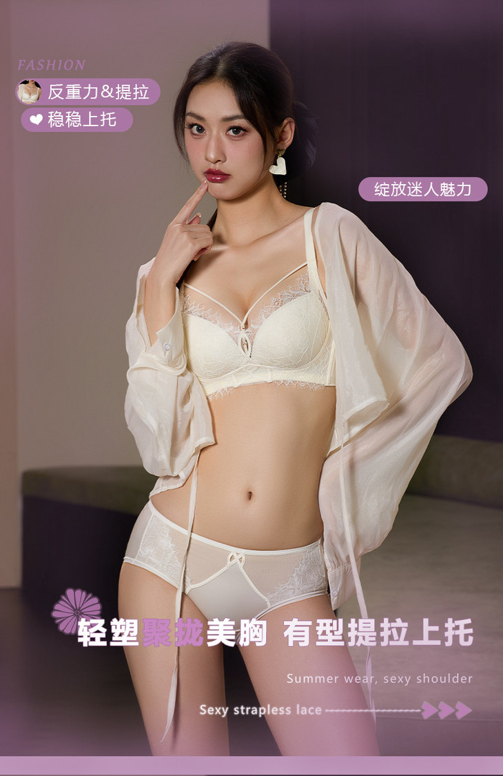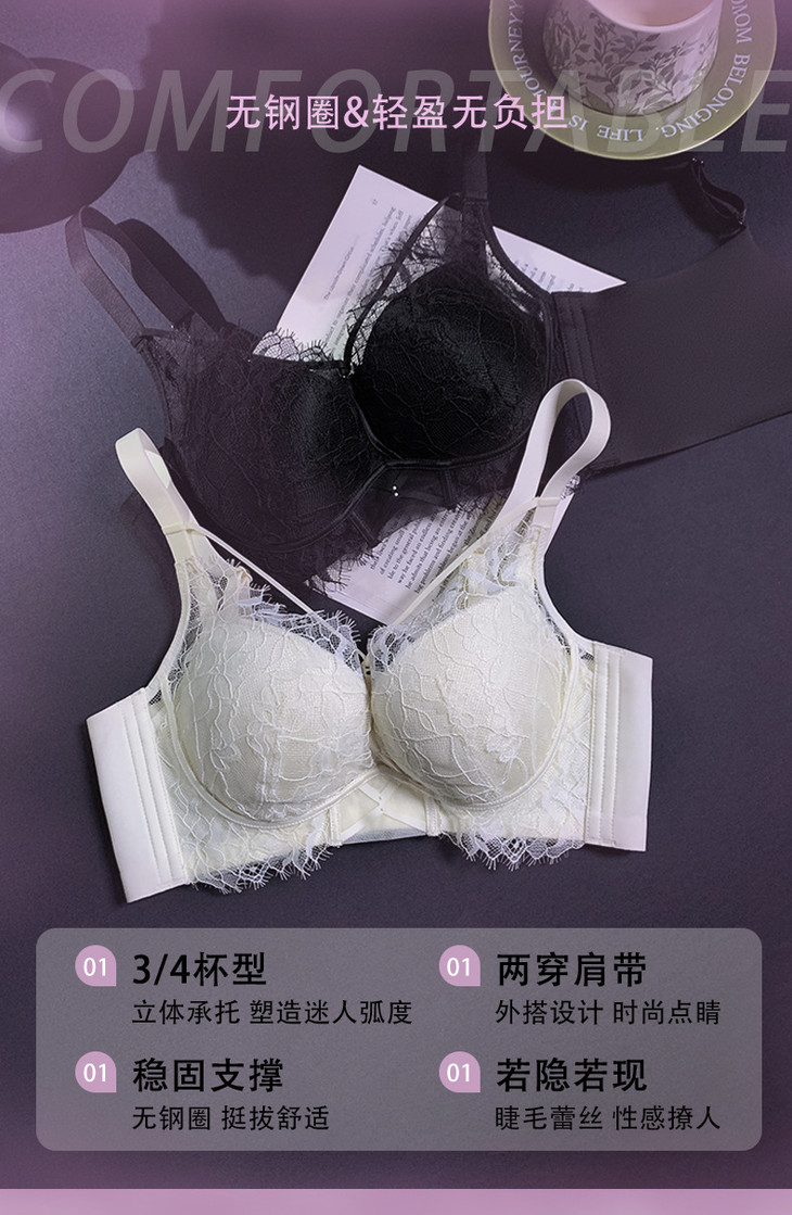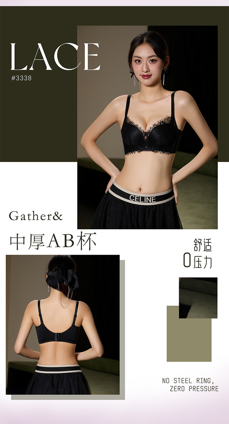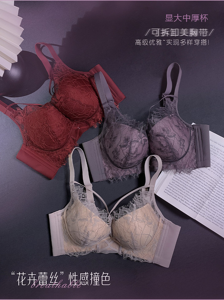 蕾丝聚拢中厚杯无钢圈,调整型可拆卸美胸带文胸XY-3338
