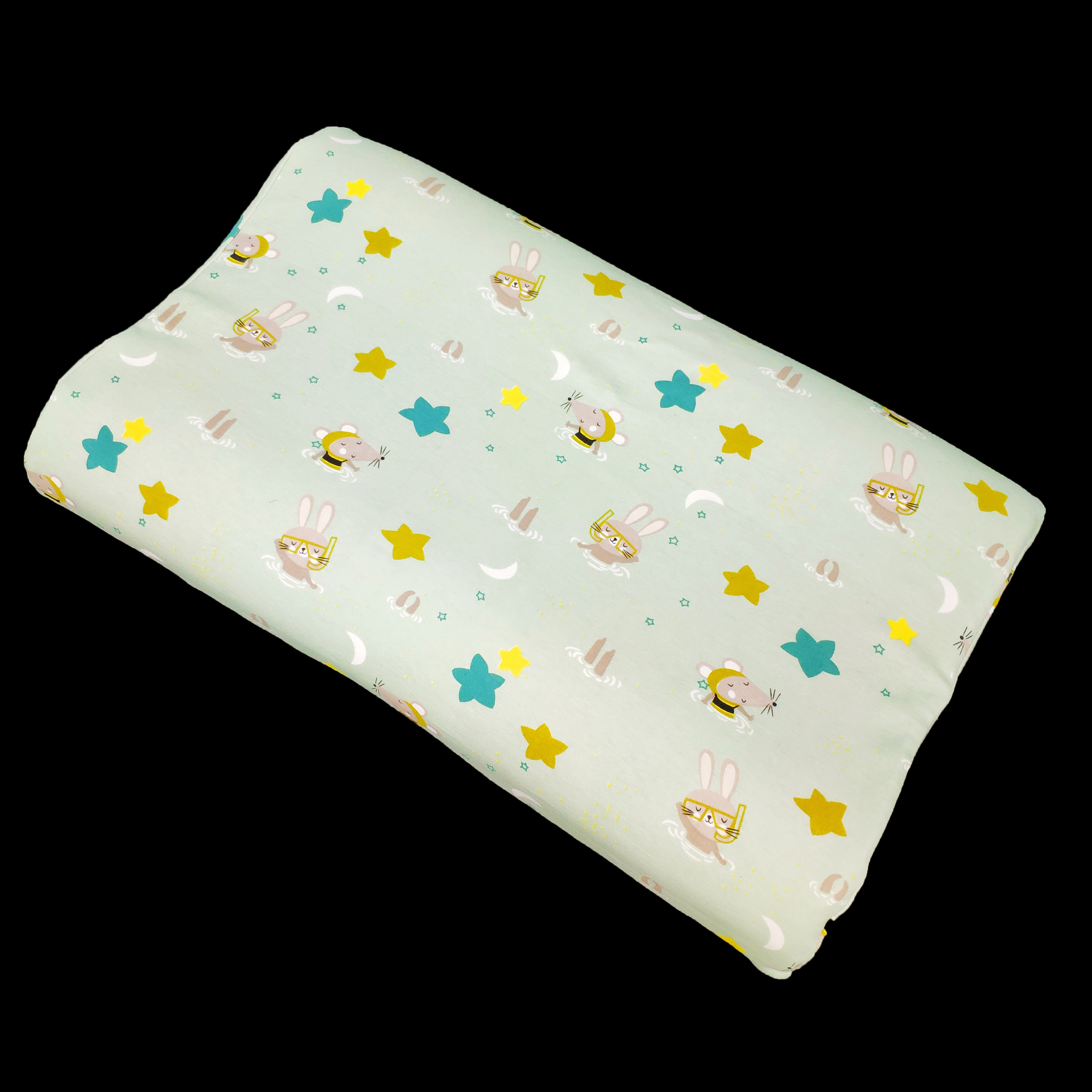 儿童枕绿色款枕套是A类40支精梳棉+95%棉5%氨纶,轻薄透气有弹性
