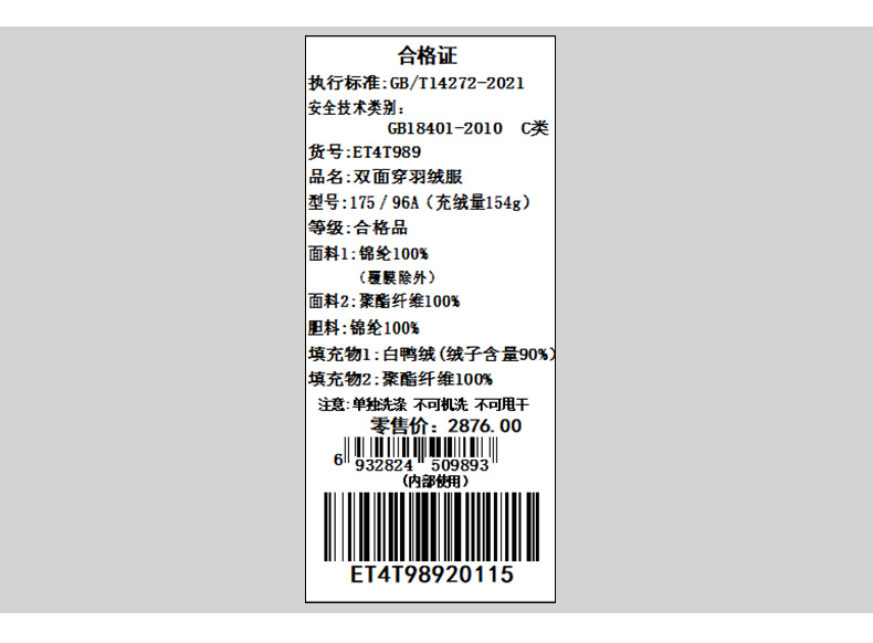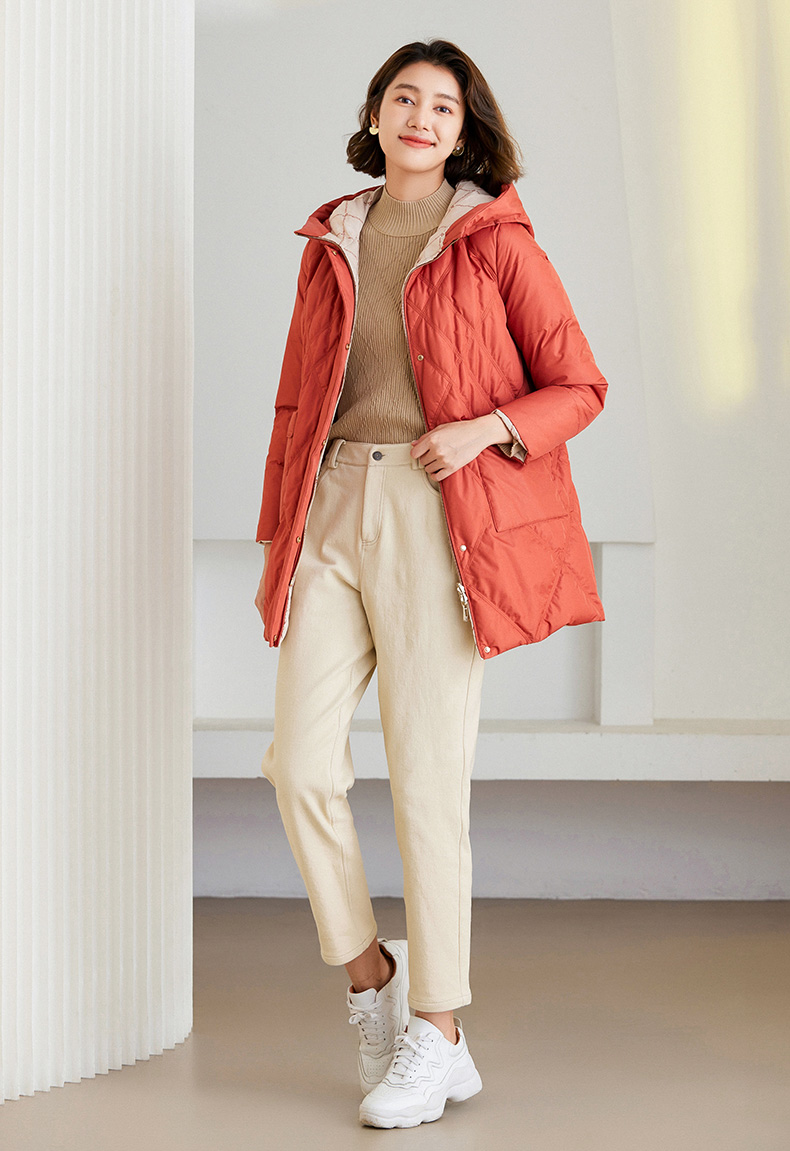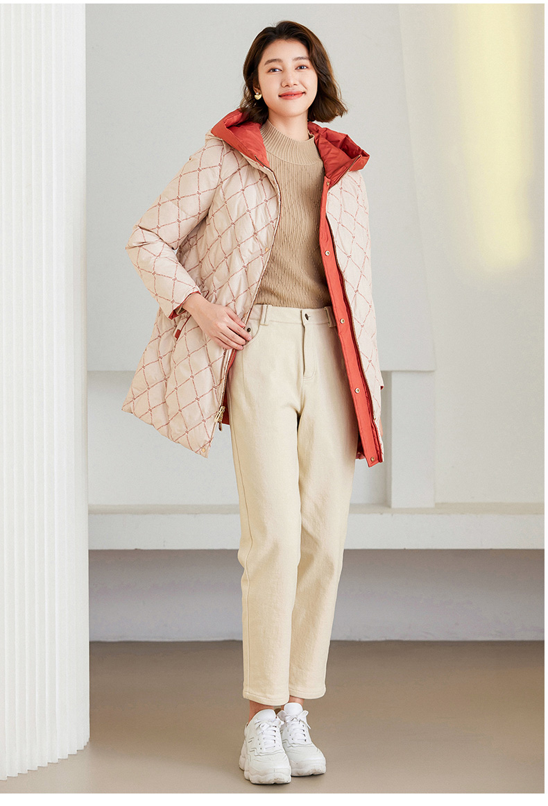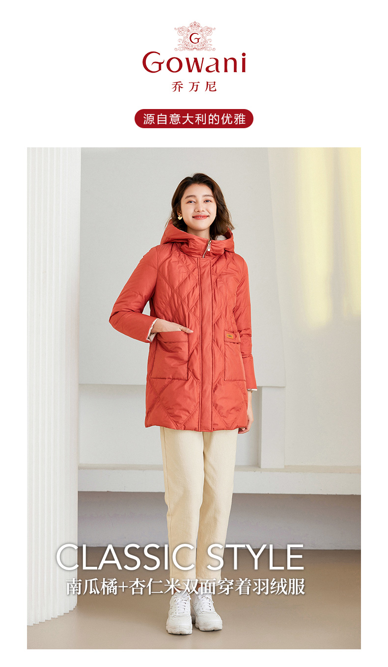 乔万尼冬季新款羽绒服双面穿中长款ET4T989