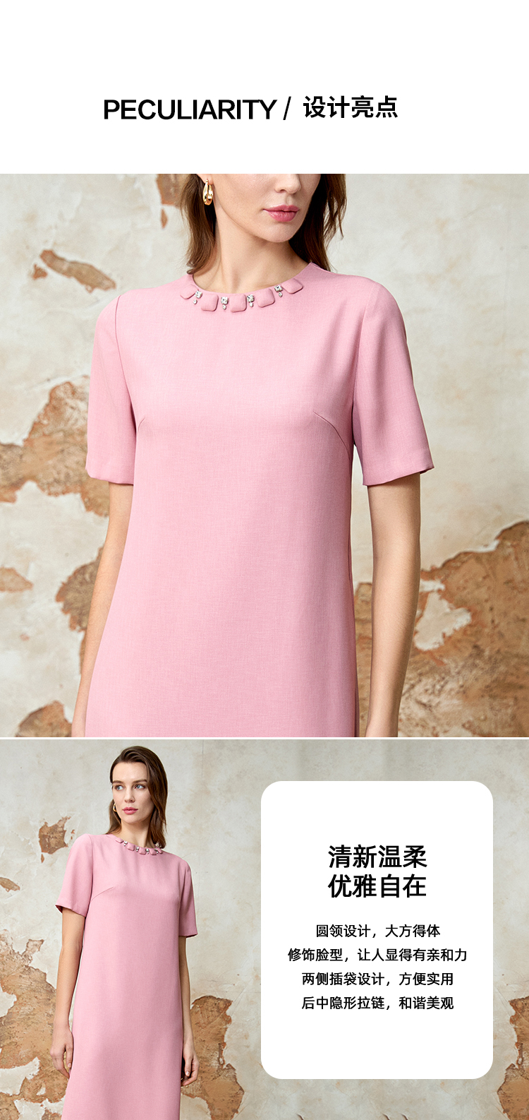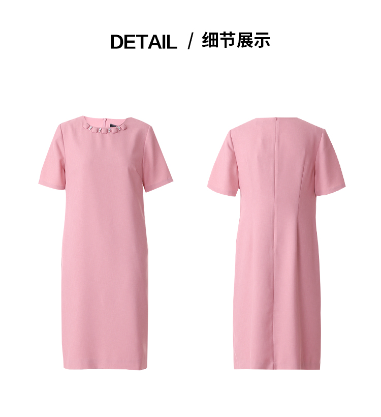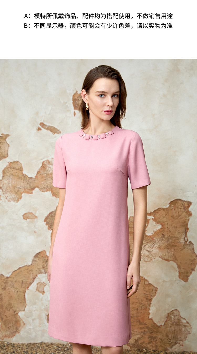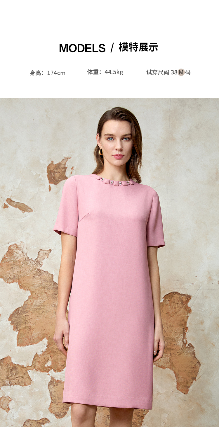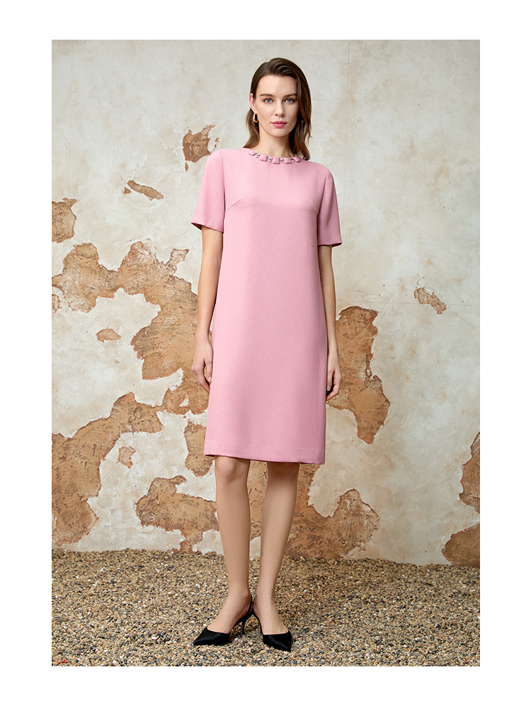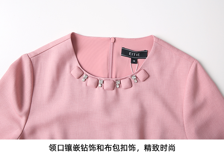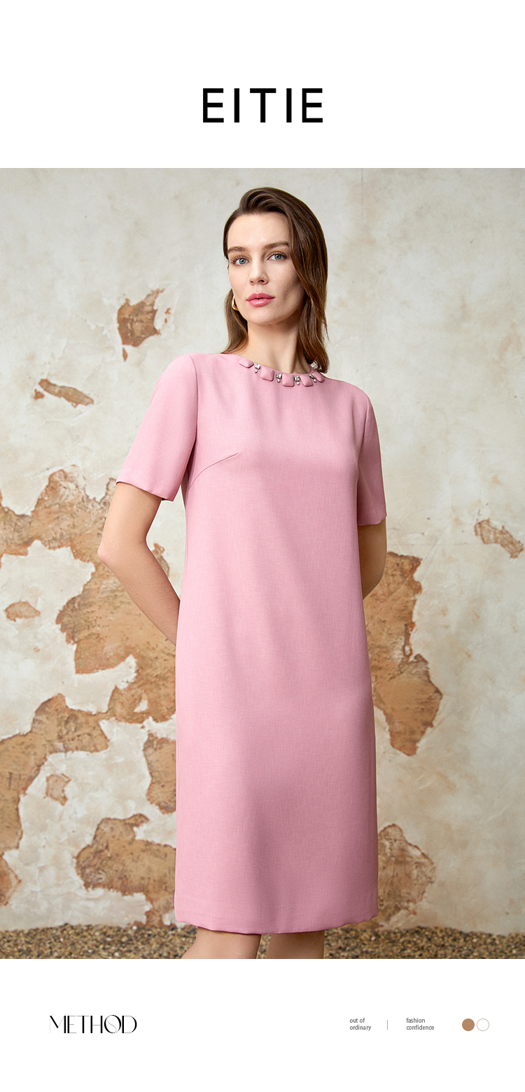 EITIE爱特爱精致优雅小香风直筒显瘦粉色连衣裙春新款8107821