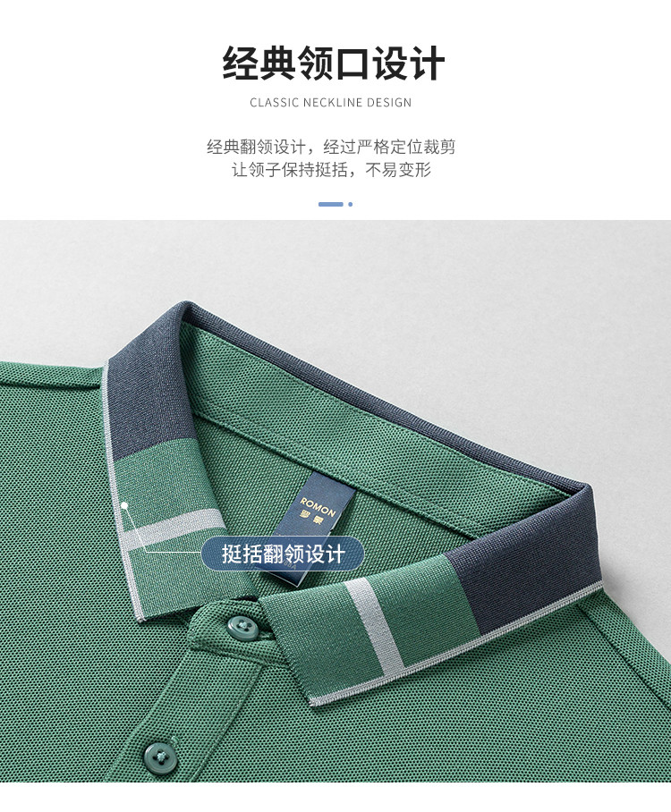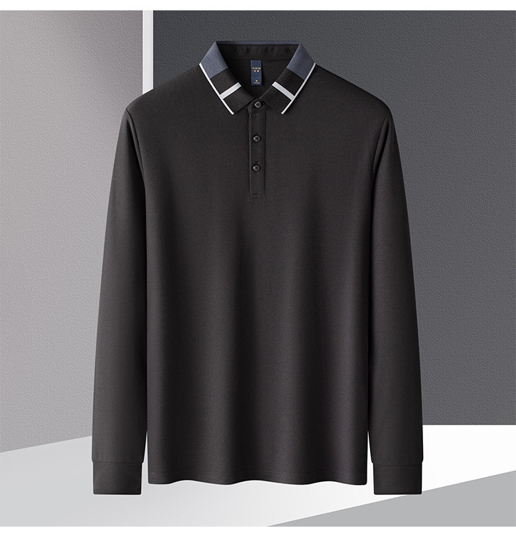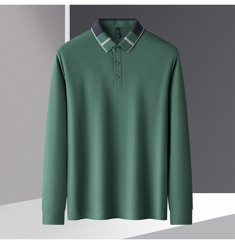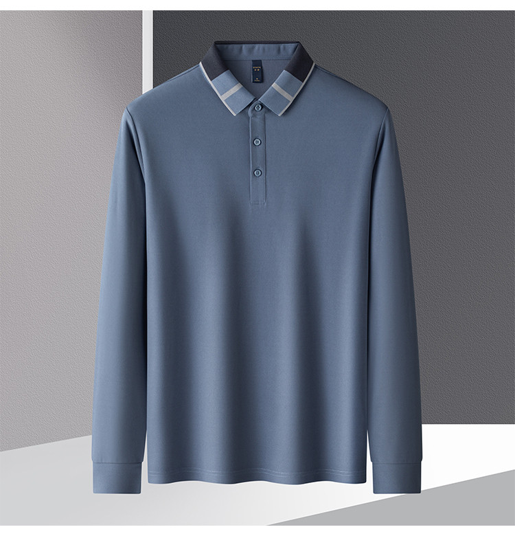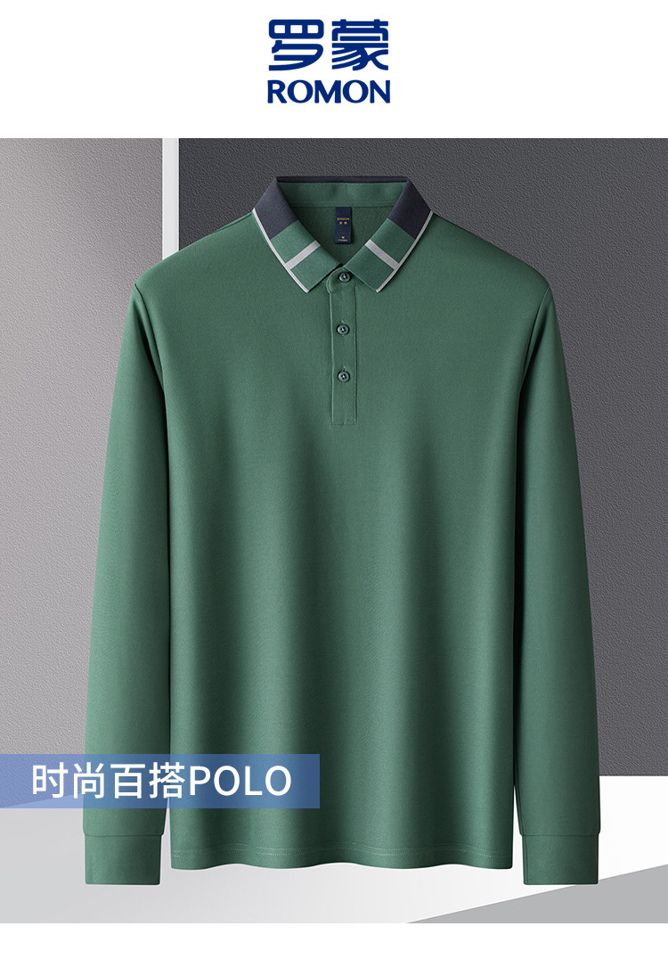【撞色领】罗蒙春秋男士仿丝光polo衫男长袖t恤男商务男士polo衫长袖