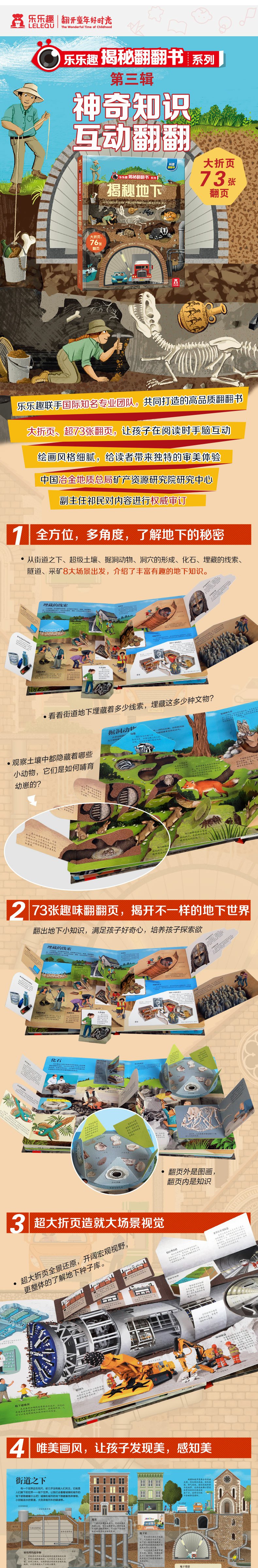 揭秘地下 乐乐趣揭秘翻翻书系列第三辑 3-6-10岁儿童少儿百科全书 小学生认知趣味科普绘本翻翻书 揭秘令人惊奇的地下世界书籍