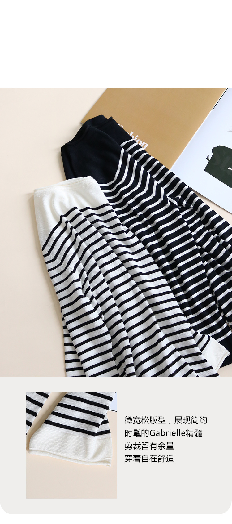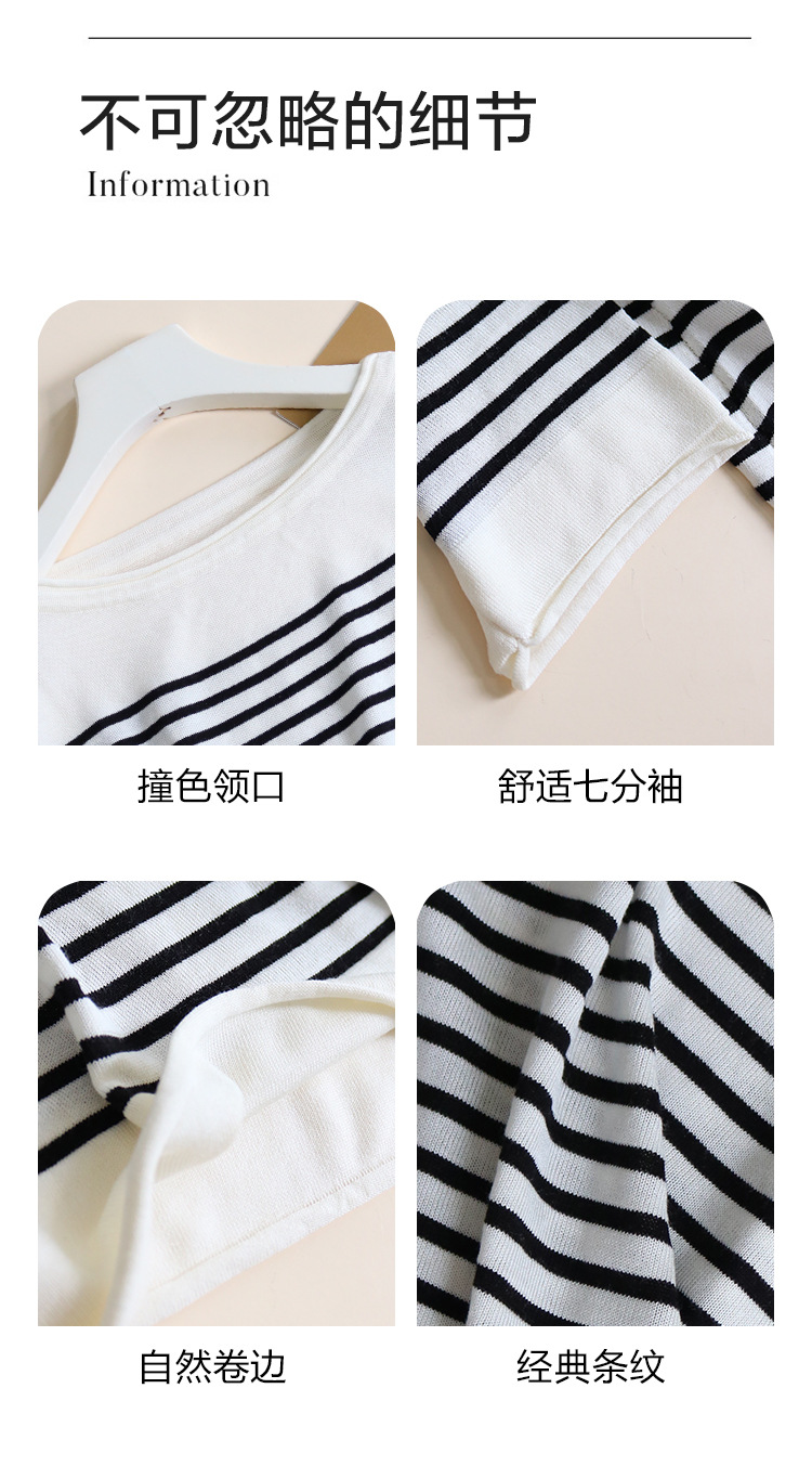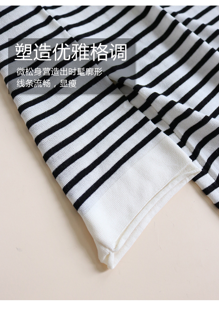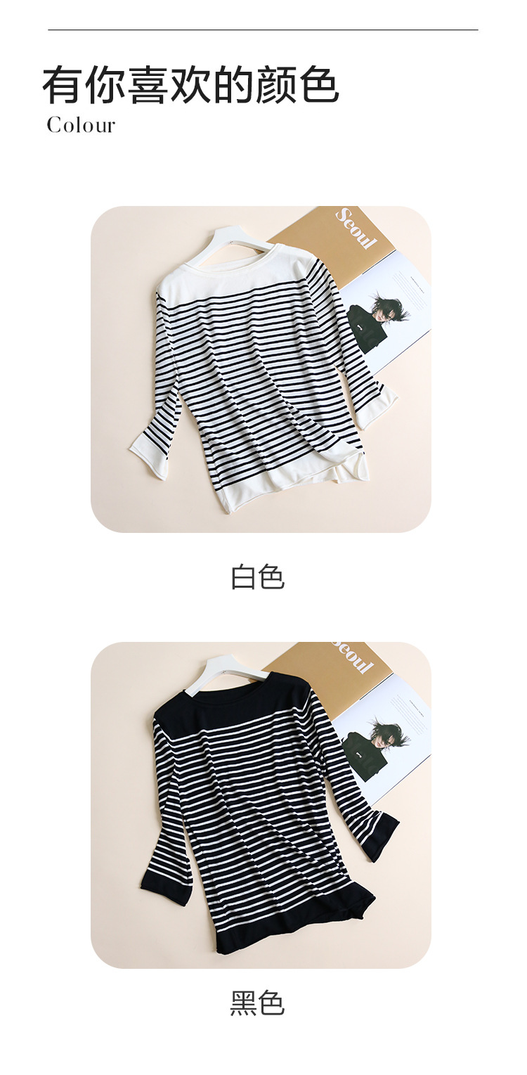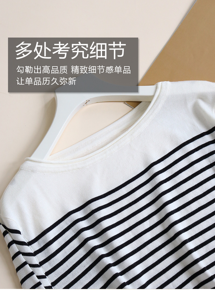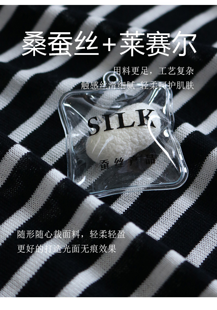 TG-TG03S331秋冬真丝莱赛尔条纹圆领长袖打底衫女 桑蚕丝针织衫T恤上衣