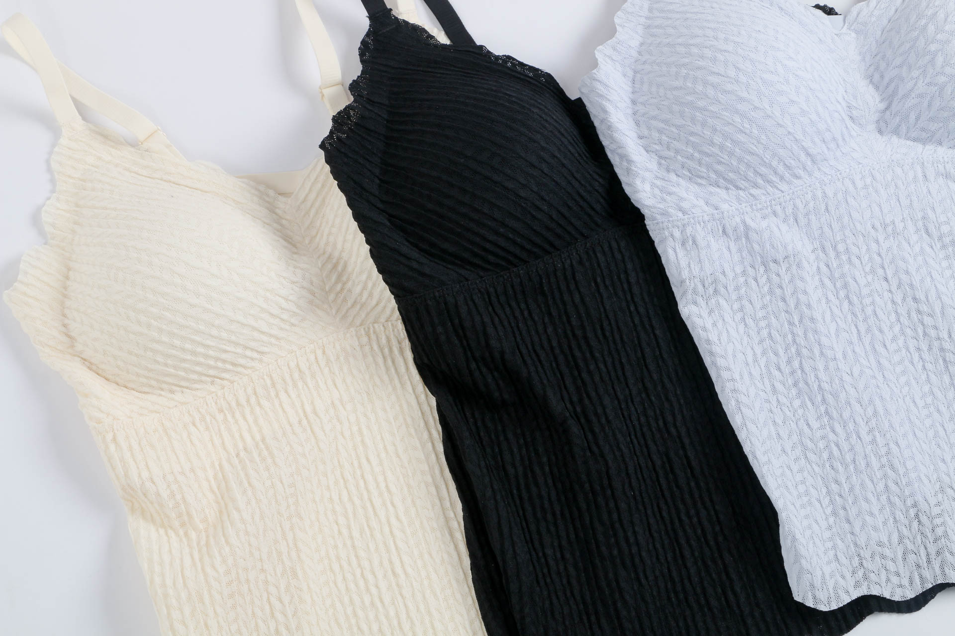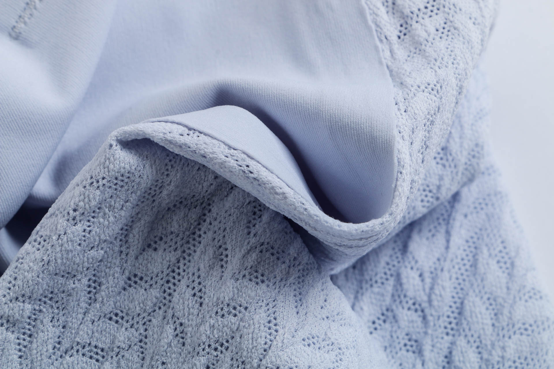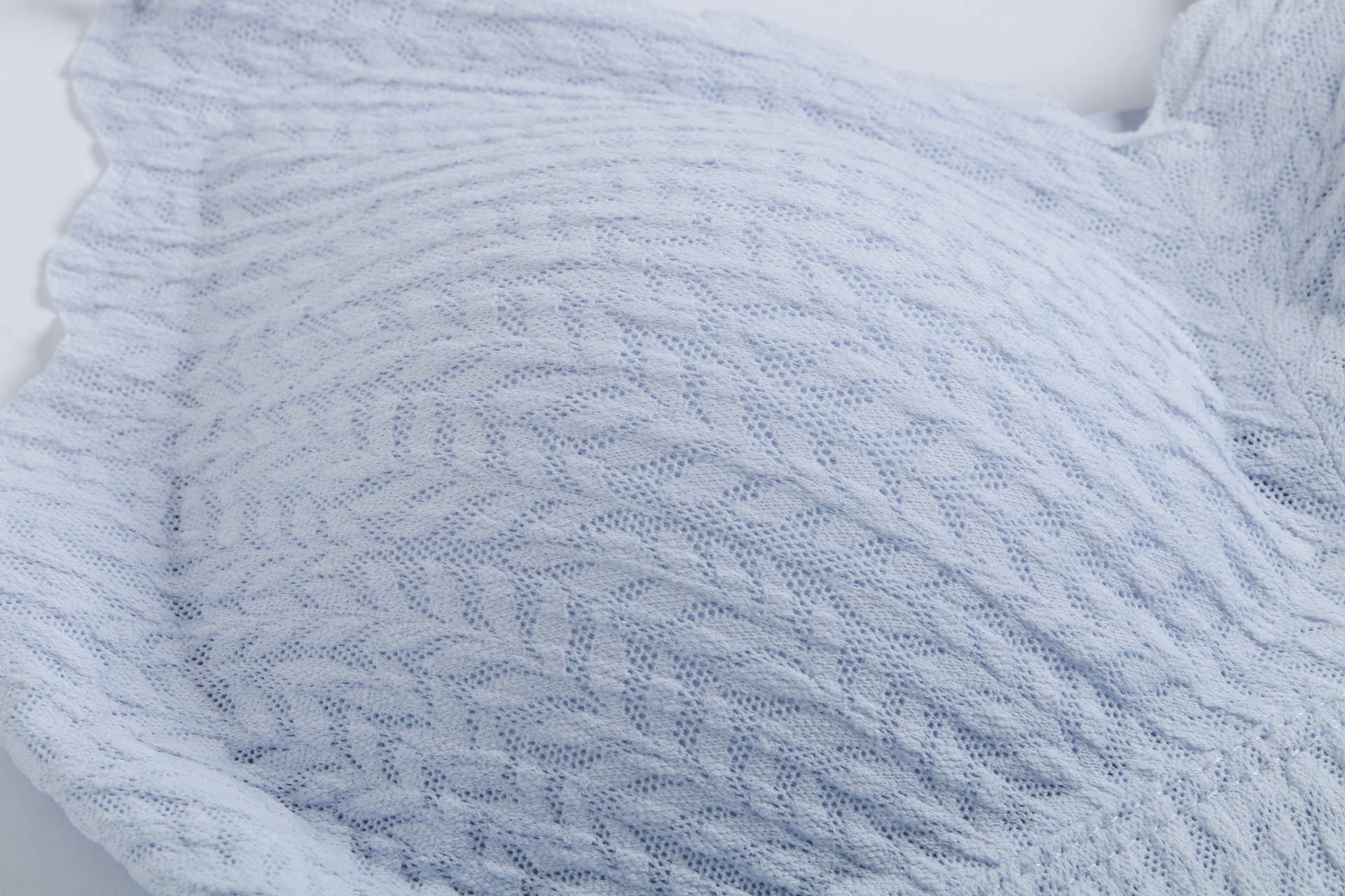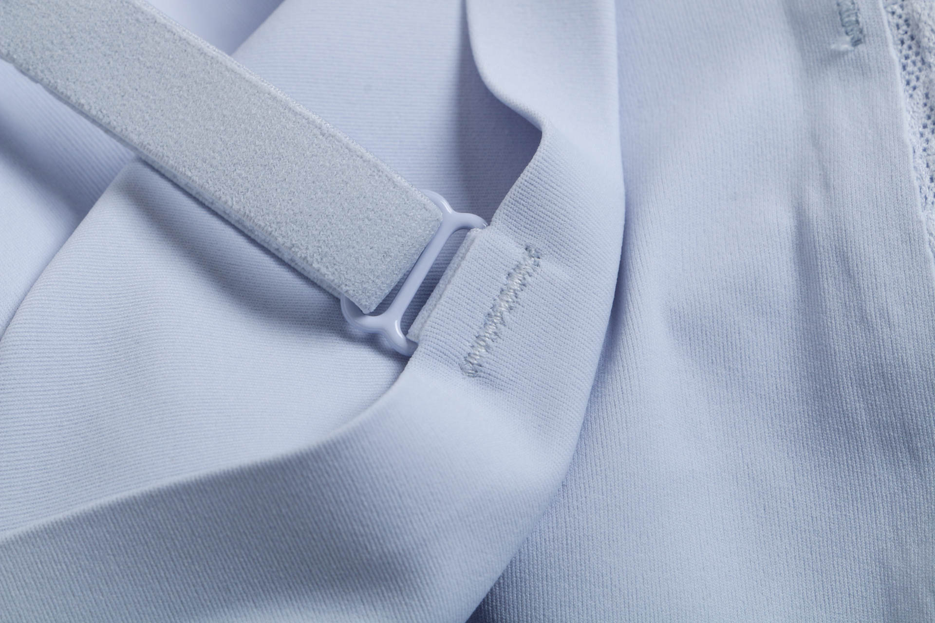 面料跟我们的小麦穗内衣是差不多的,弹力加了一点点,贴身穿包裹性好。bra部分杯垫做了上薄下厚,可以很好地提升胸型。