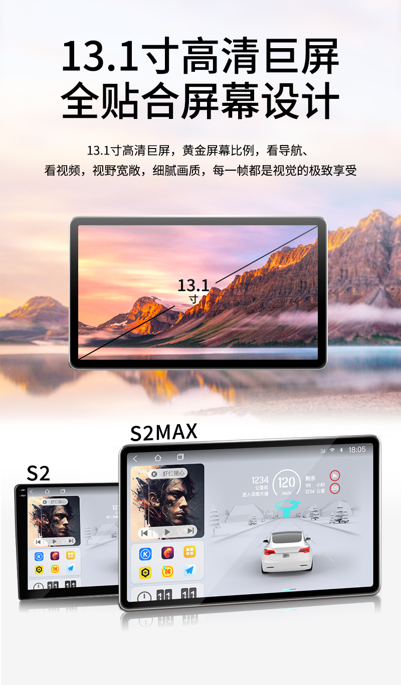 最新款车机「兜风极客S2 MAX」13寸顶配8G+256G