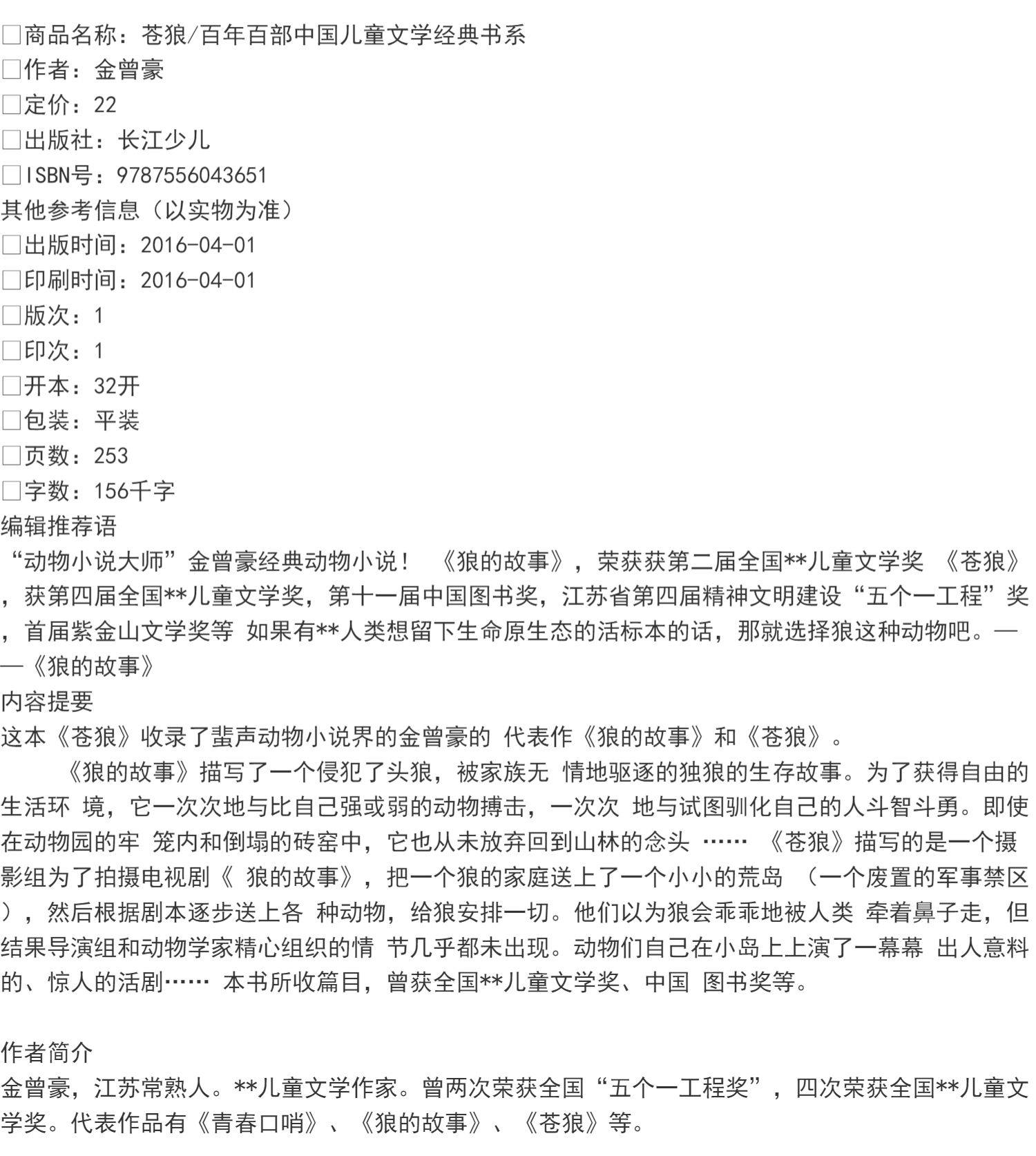 苍狼 初中7年级正版现货速发|名师推荐|小学生课外阅读七年级
