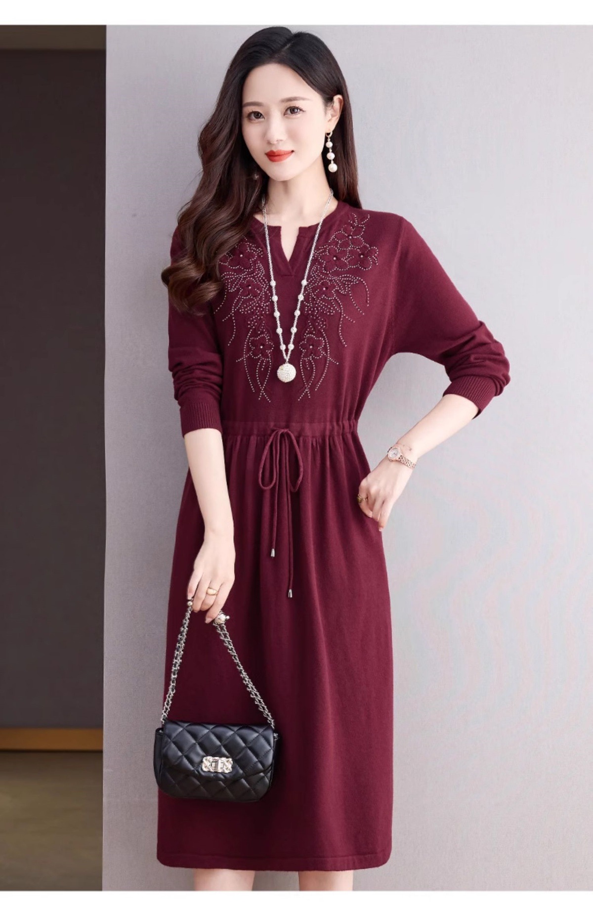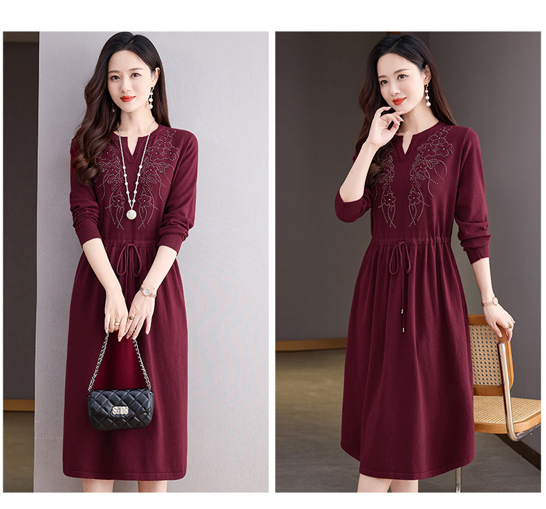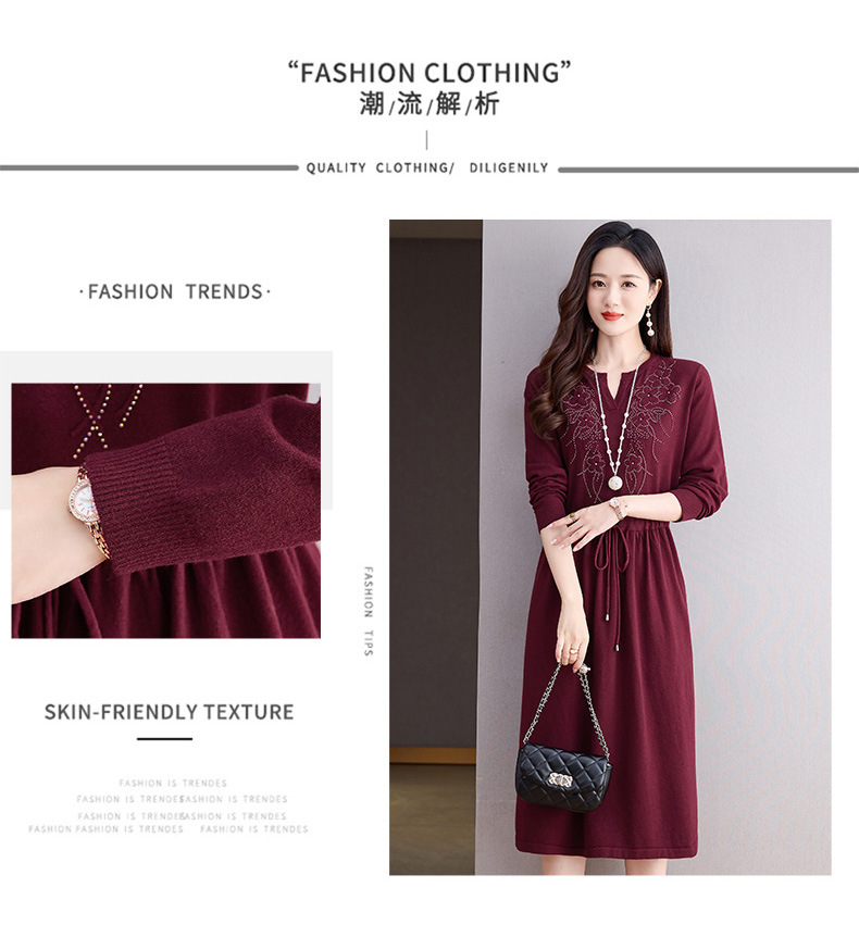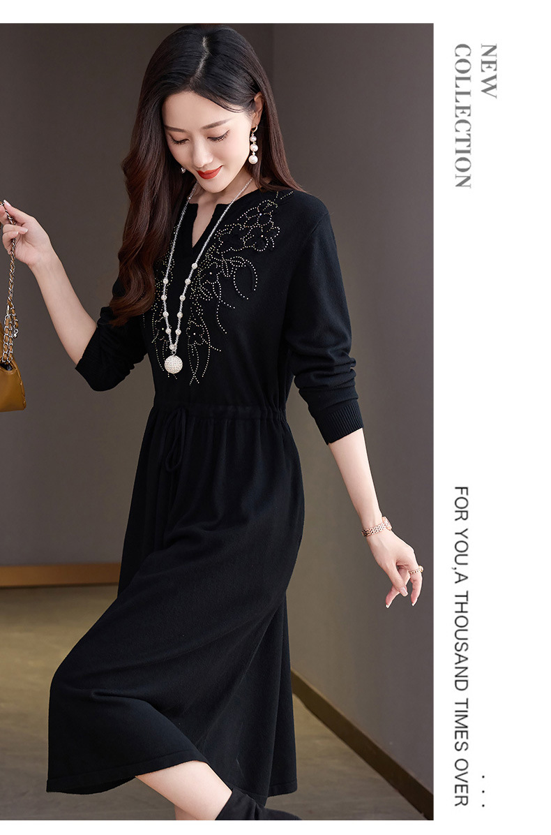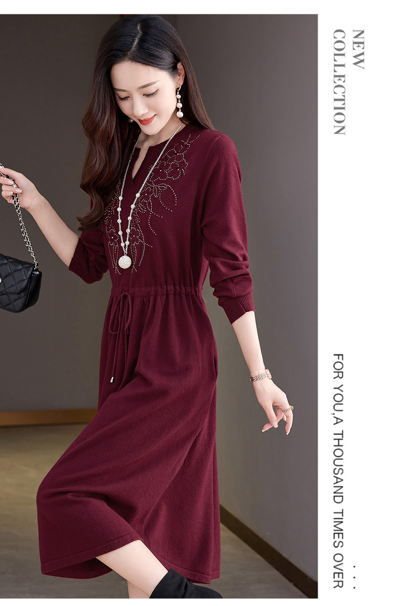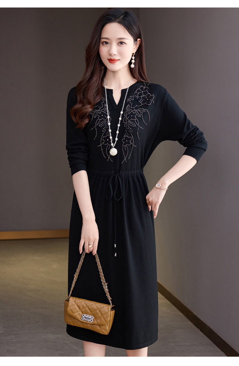 CC-56-5750针织连衣裙2024新款秋冬洋气遮肚显瘦配大衣裙子系带毛衣打底裙