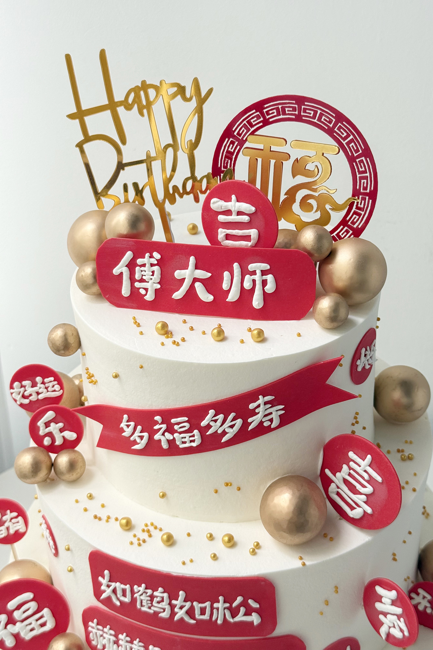 B3201“福如东海寿桃寿星公”白底蛋糕(送长辈 亲戚 家人 祝寿)