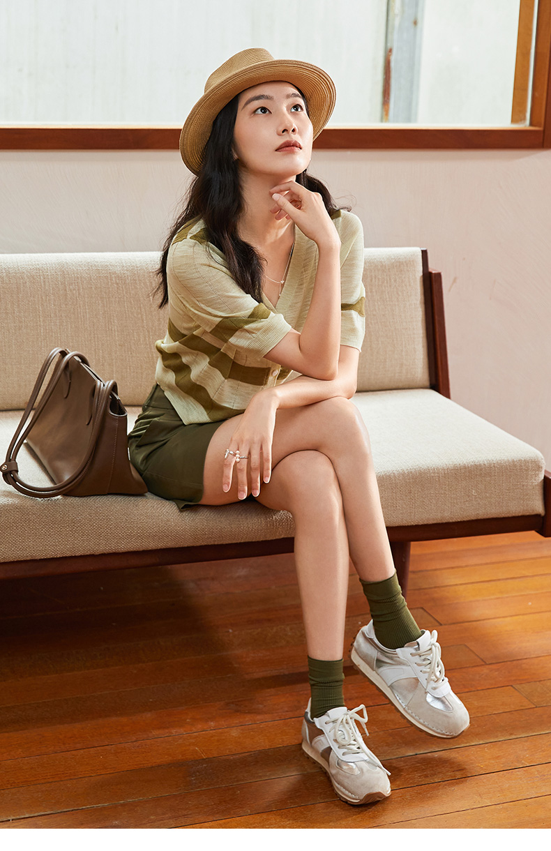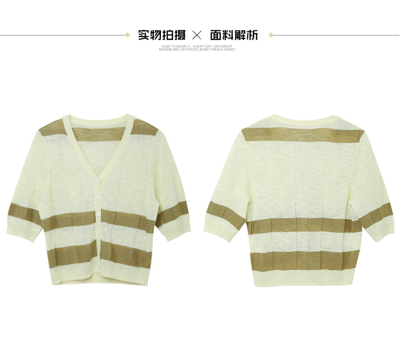 慵懒风条纹针织开衫 春夏季新款 V 领宽松显瘦中袖空调衫外搭