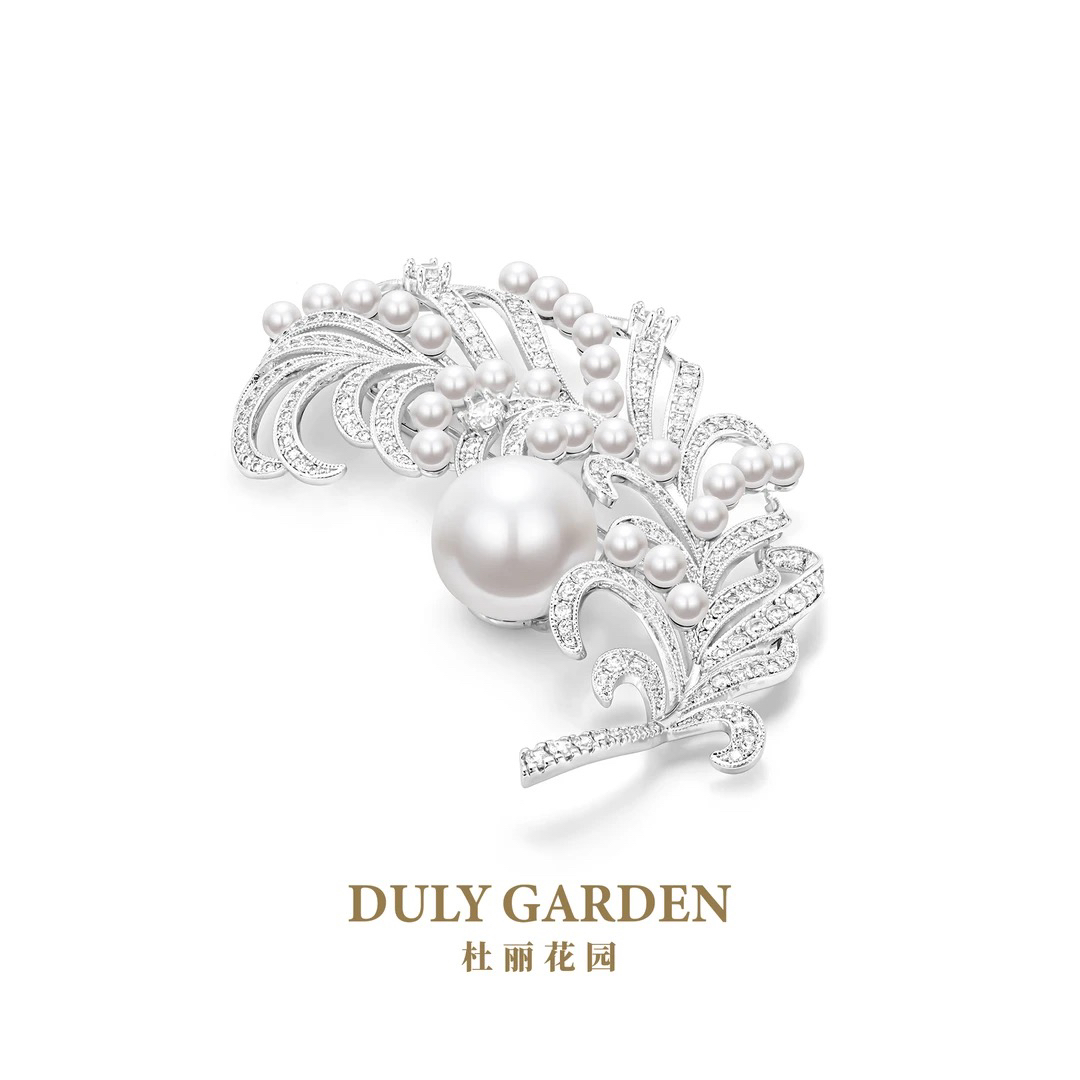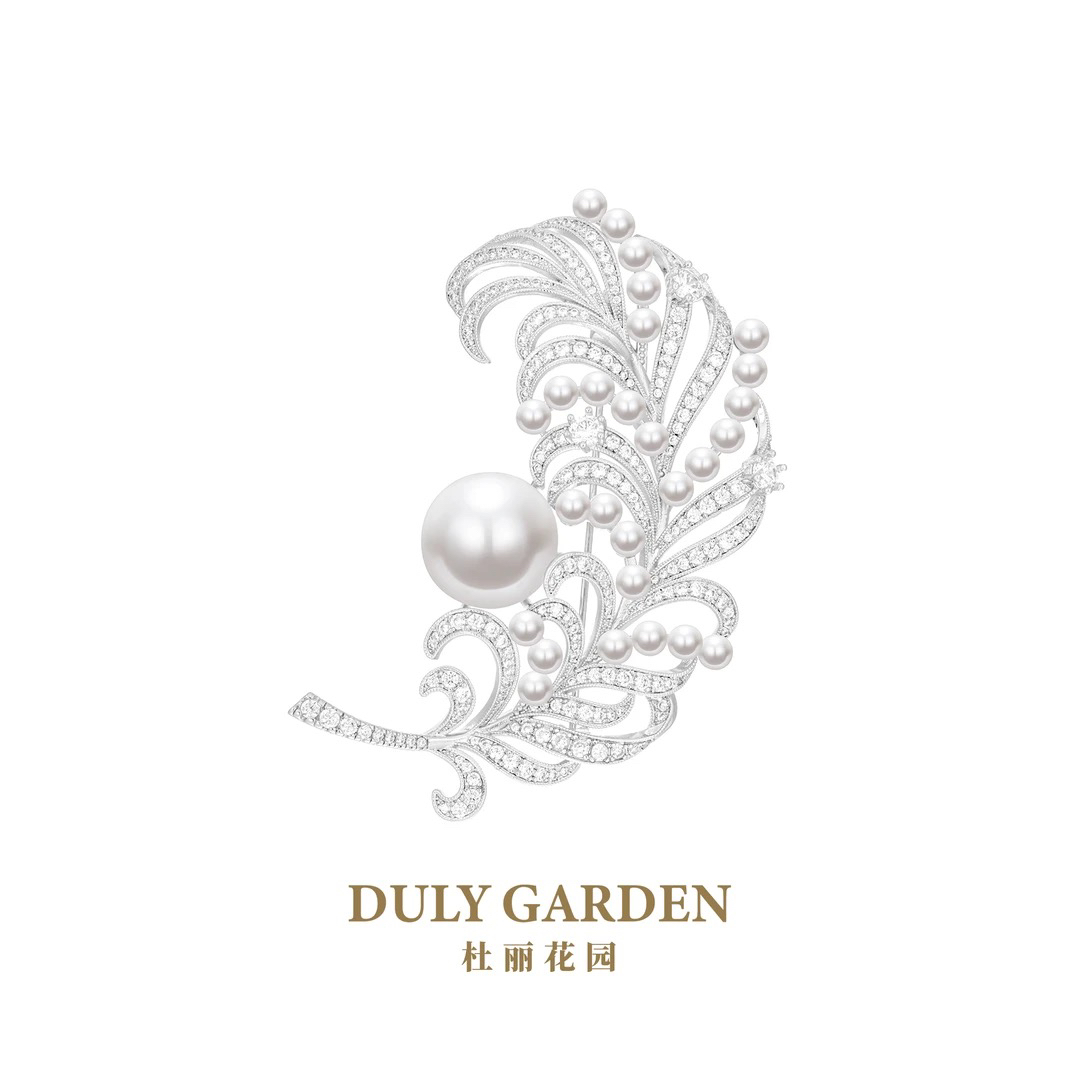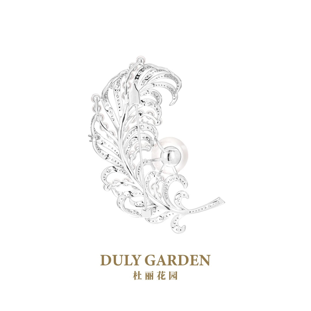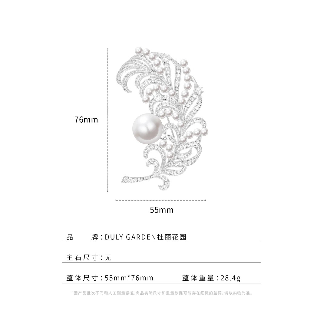 铜合成锆石胸针 DULY杜丽花园 宫廷贵气白色羽毛胸针11860ZW
