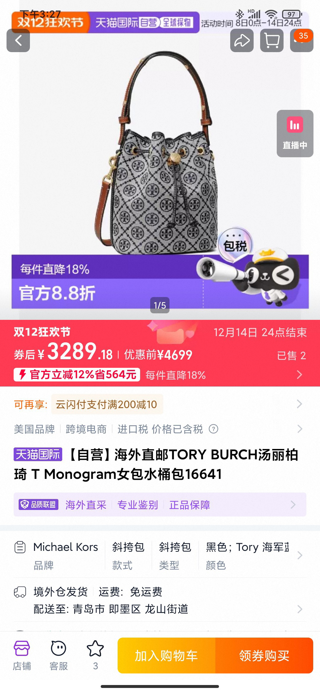 TB中号海军蓝老花水桶包,这次是中号哈!之前觉得迷你冬天不够用的姐妹们快来补货中号了!