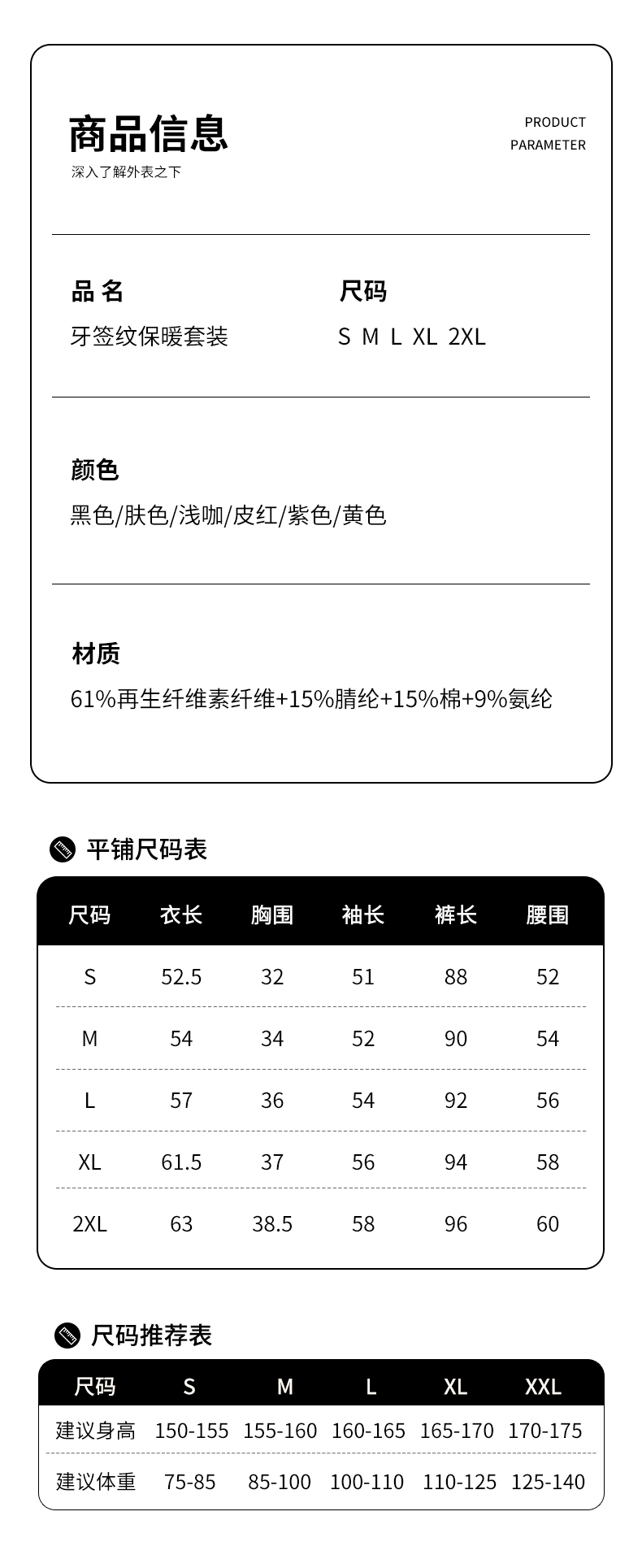 【材质】:61再生纤维素纤维(含羊绒蛋白)+15晴纶(自发热德绒)+15%棉+9%氨纶