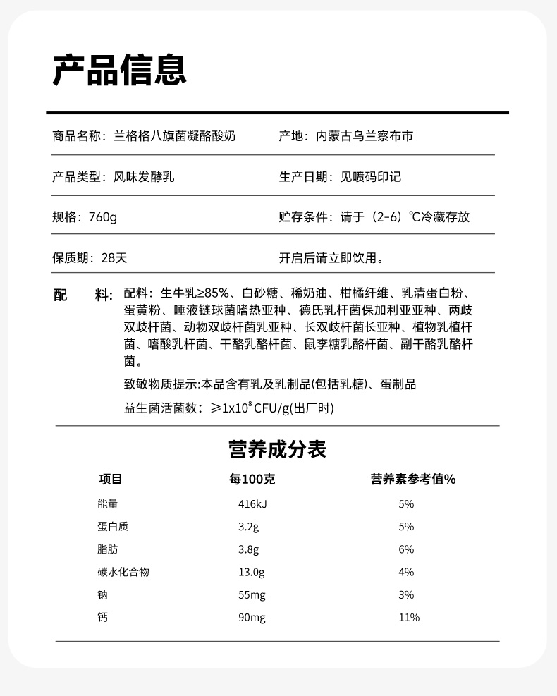 兰格格内蒙古草原凝固型酸奶八旗菌凝酪760g*2桶