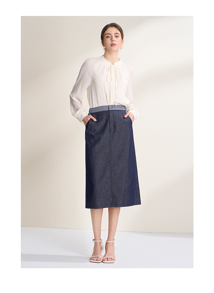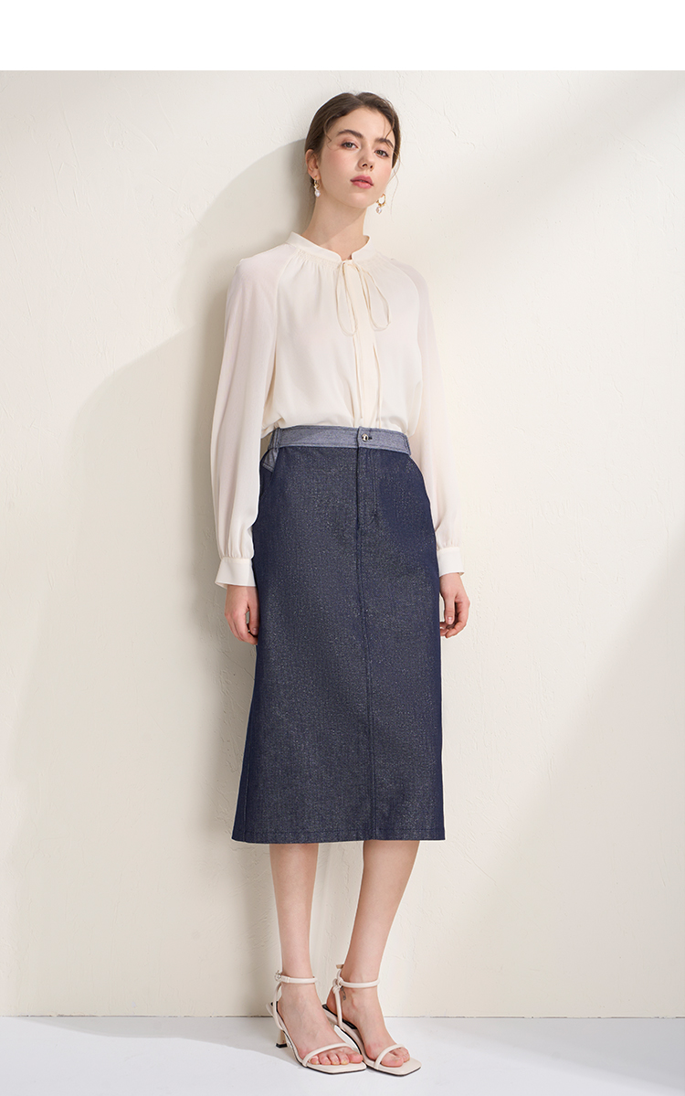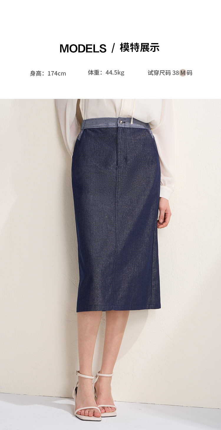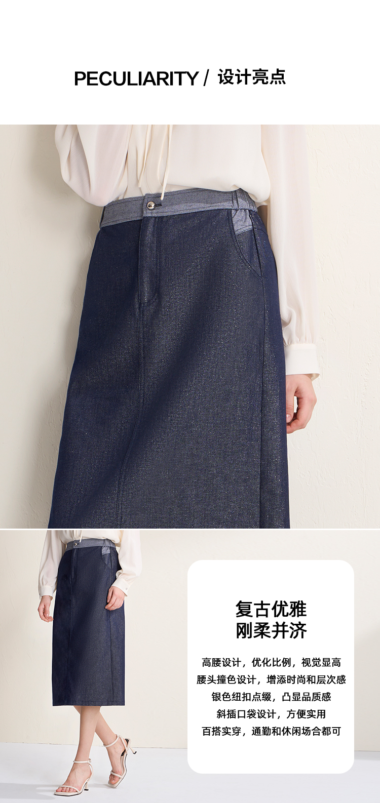 EITIE爱特爱复古亮丝牛仔a字显瘦通勤百搭2026春季新款半身裙A2606107