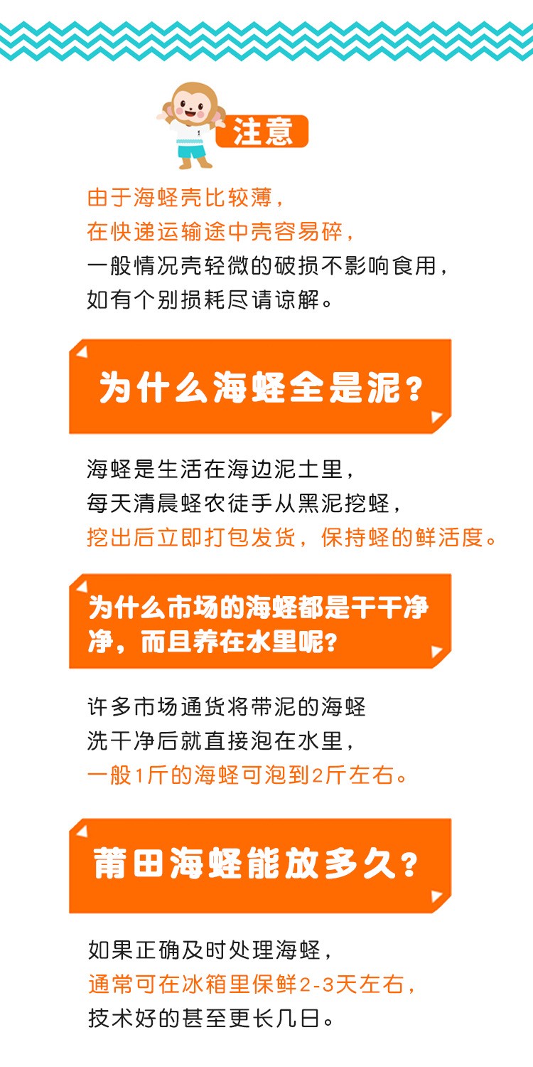 注意1:由于海蛏壳比较脆,舟车劳顿少量裂壳属于正常现象。