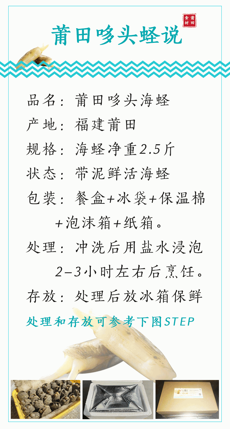 注意2:海蛏大小会有部分差别,无法均匀统一的大小。