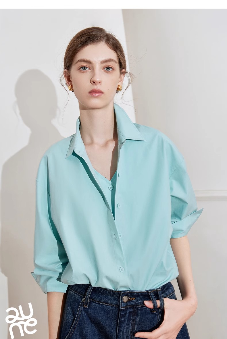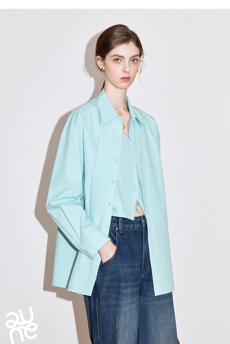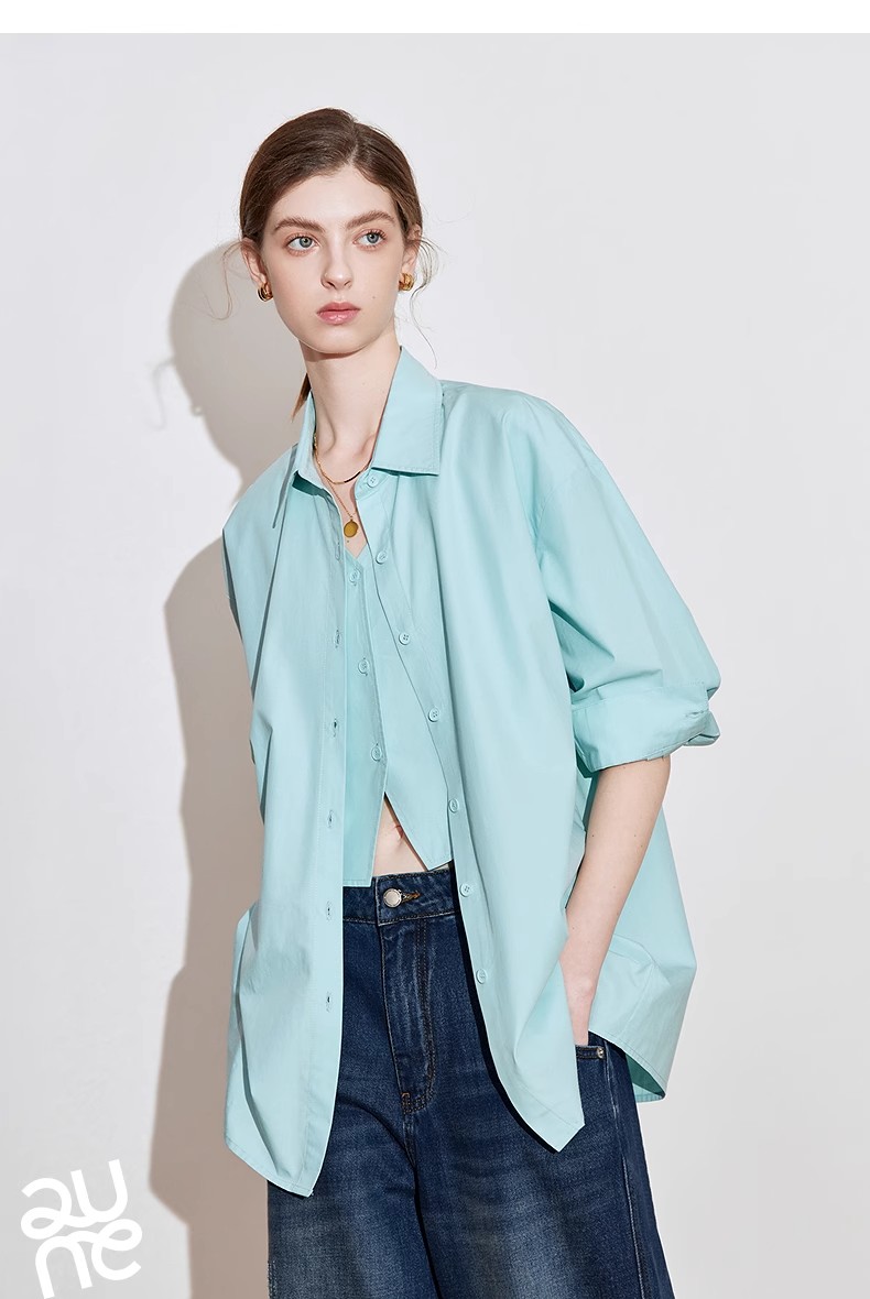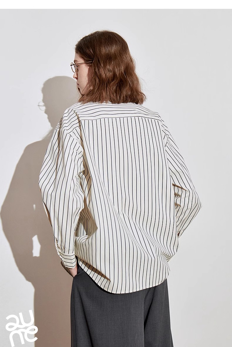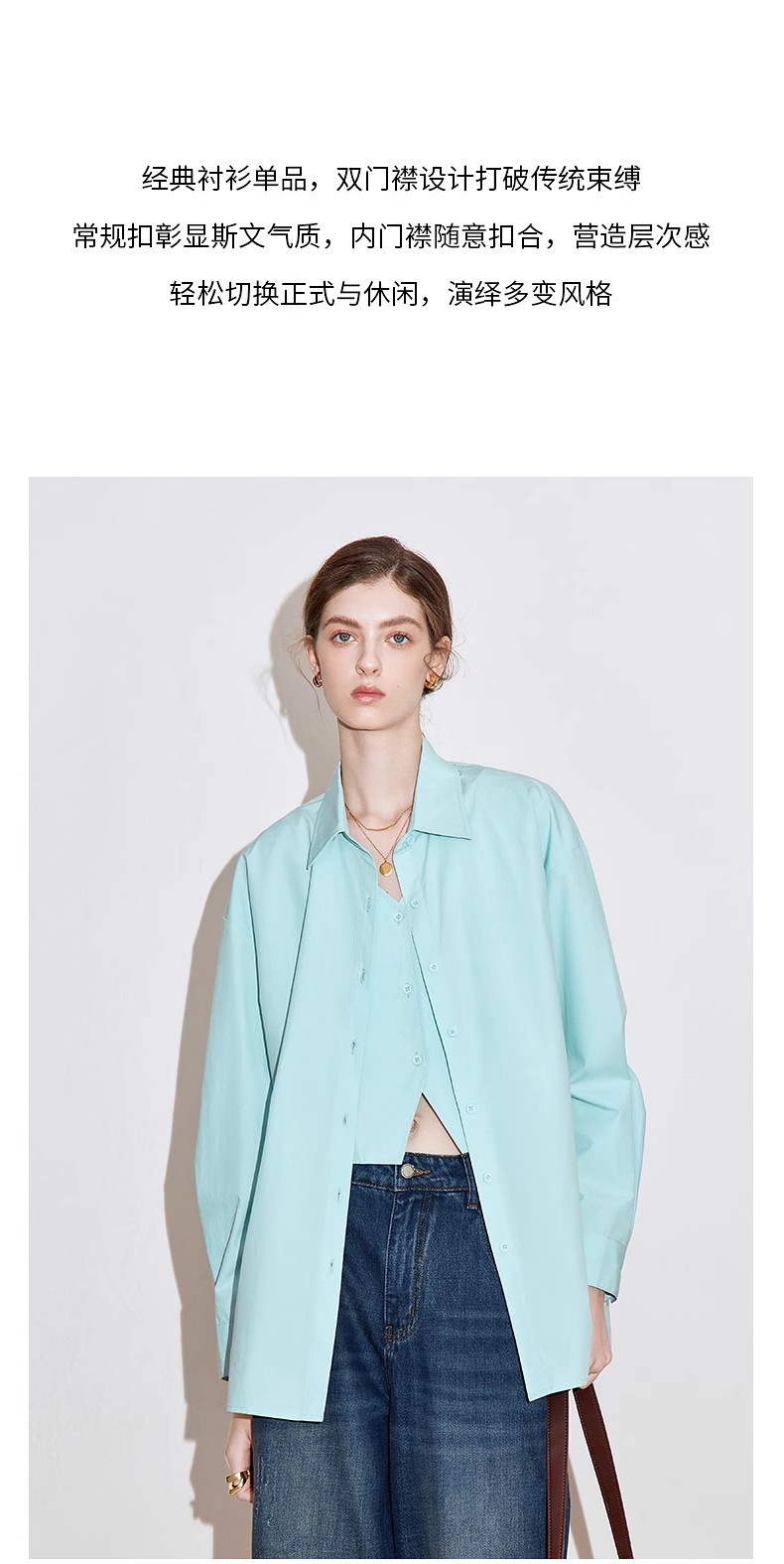 初语条纹衬衫女假两件上衣2025春季新款莱赛尔棉质百搭外搭衬衣