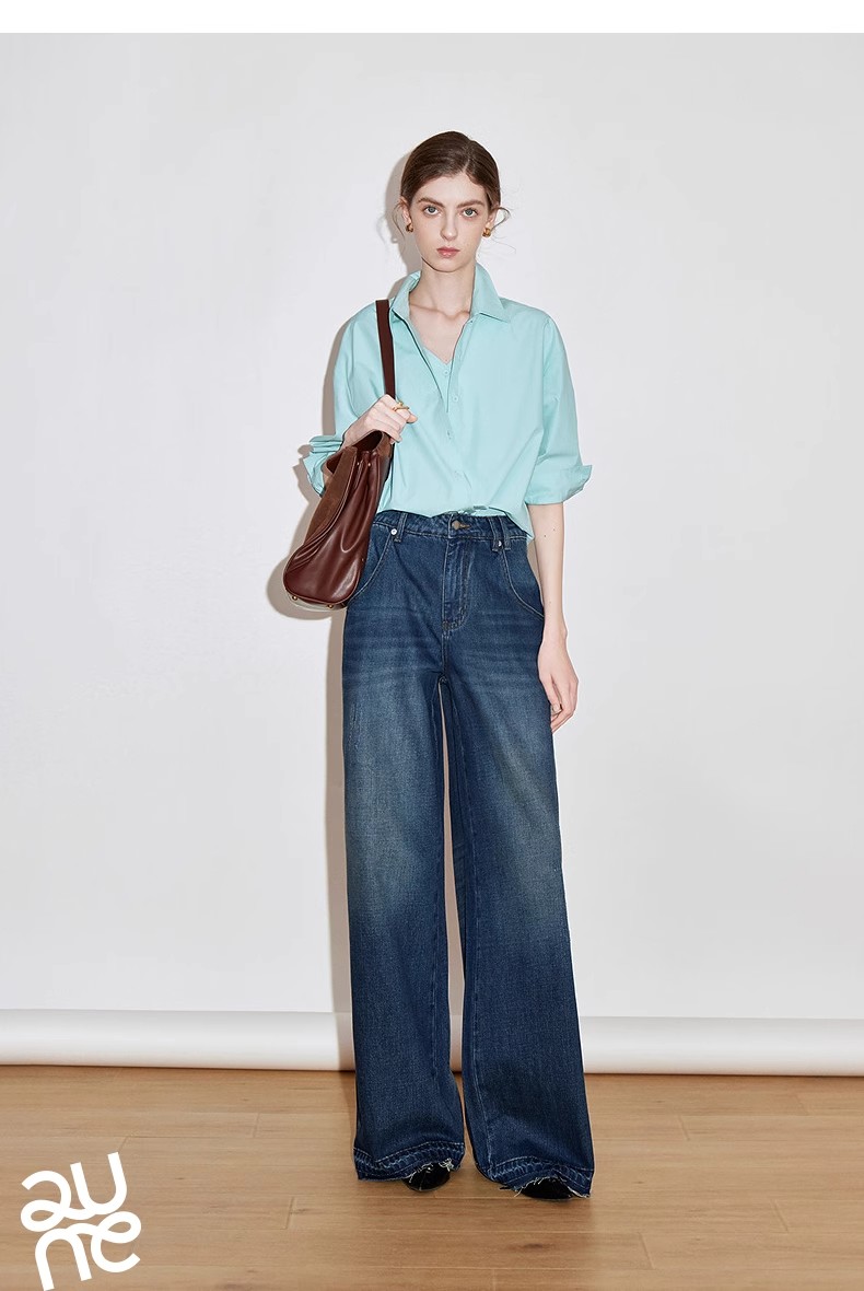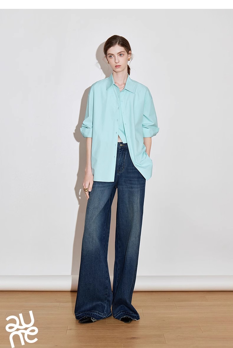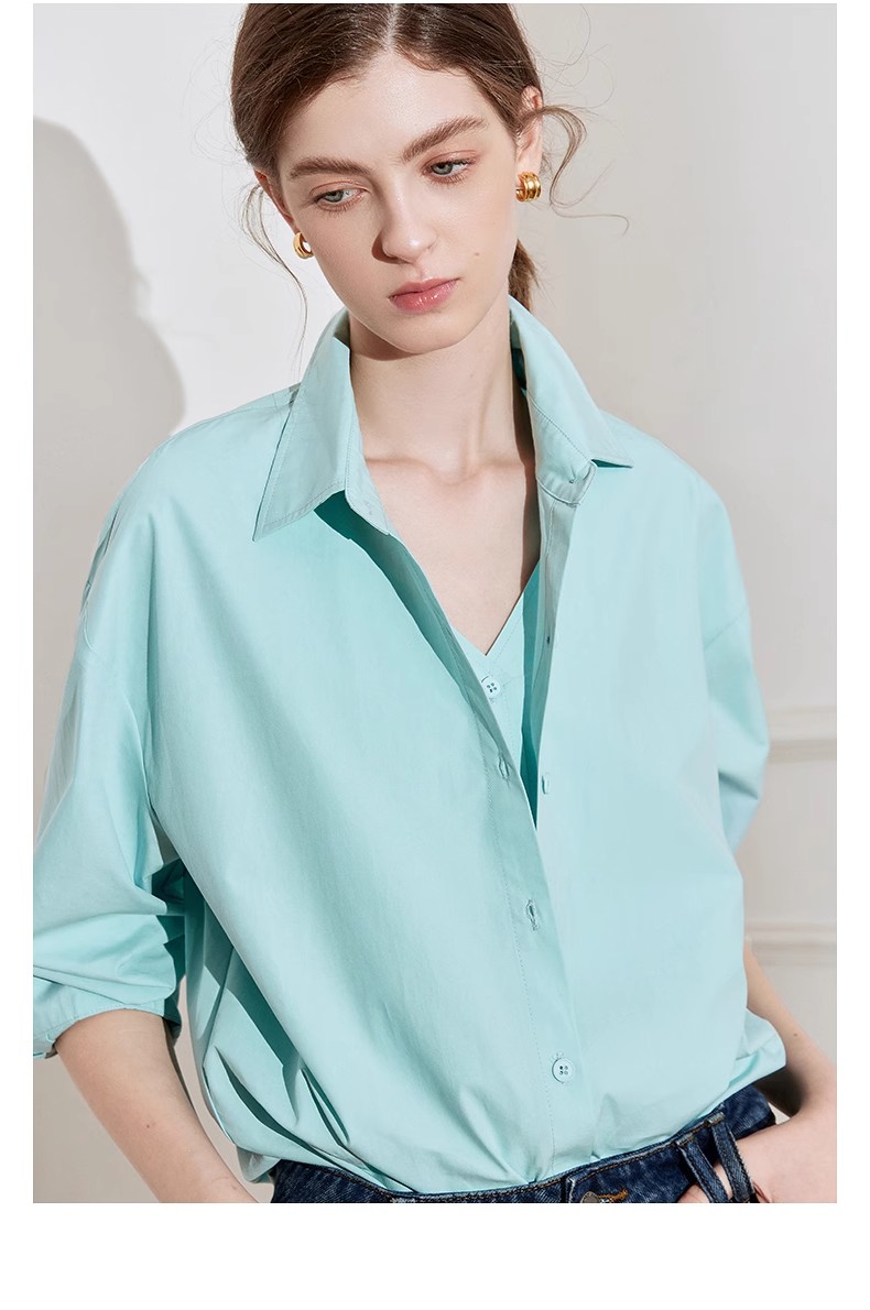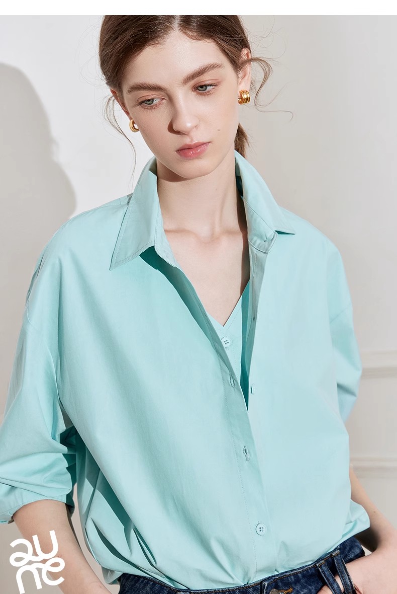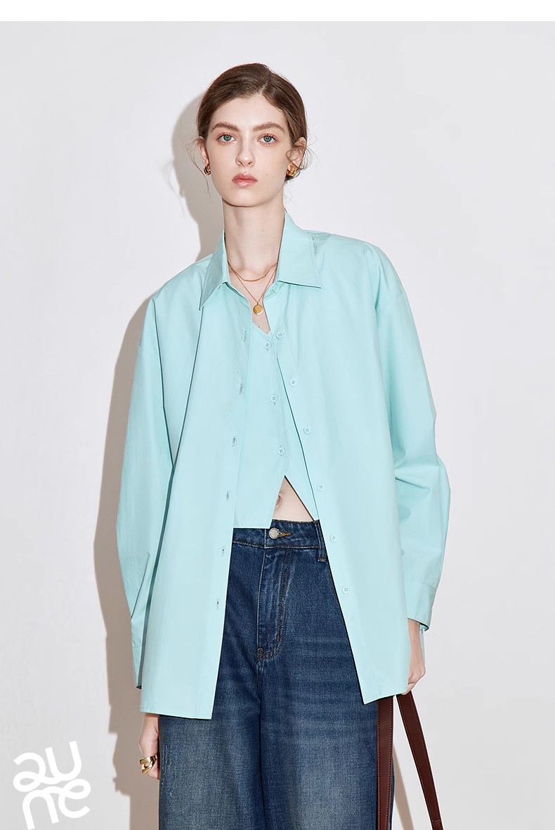 初语条纹衬衫女假两件上衣2025春季新款莱赛尔棉质百搭外搭衬衣