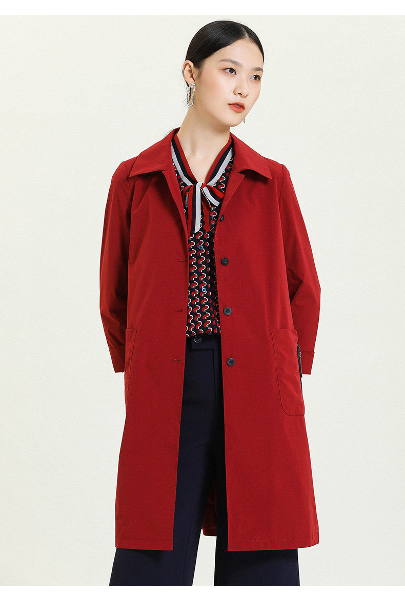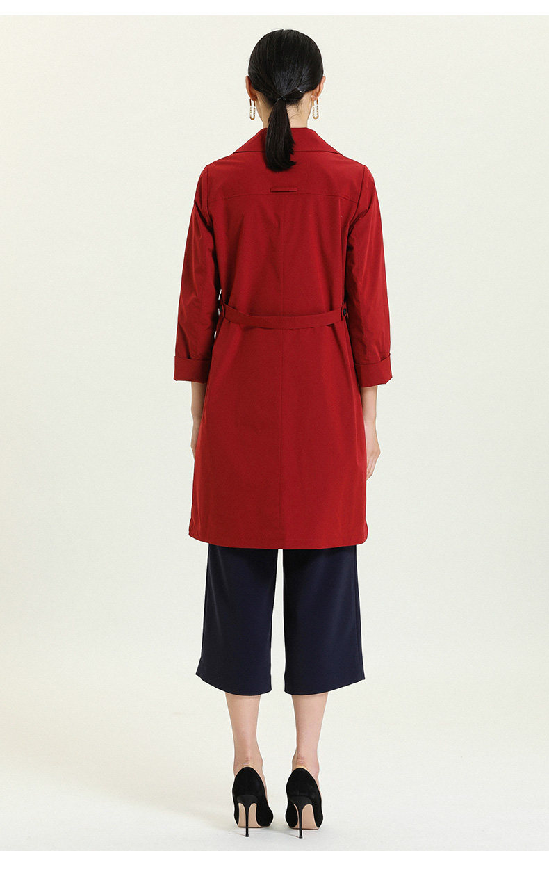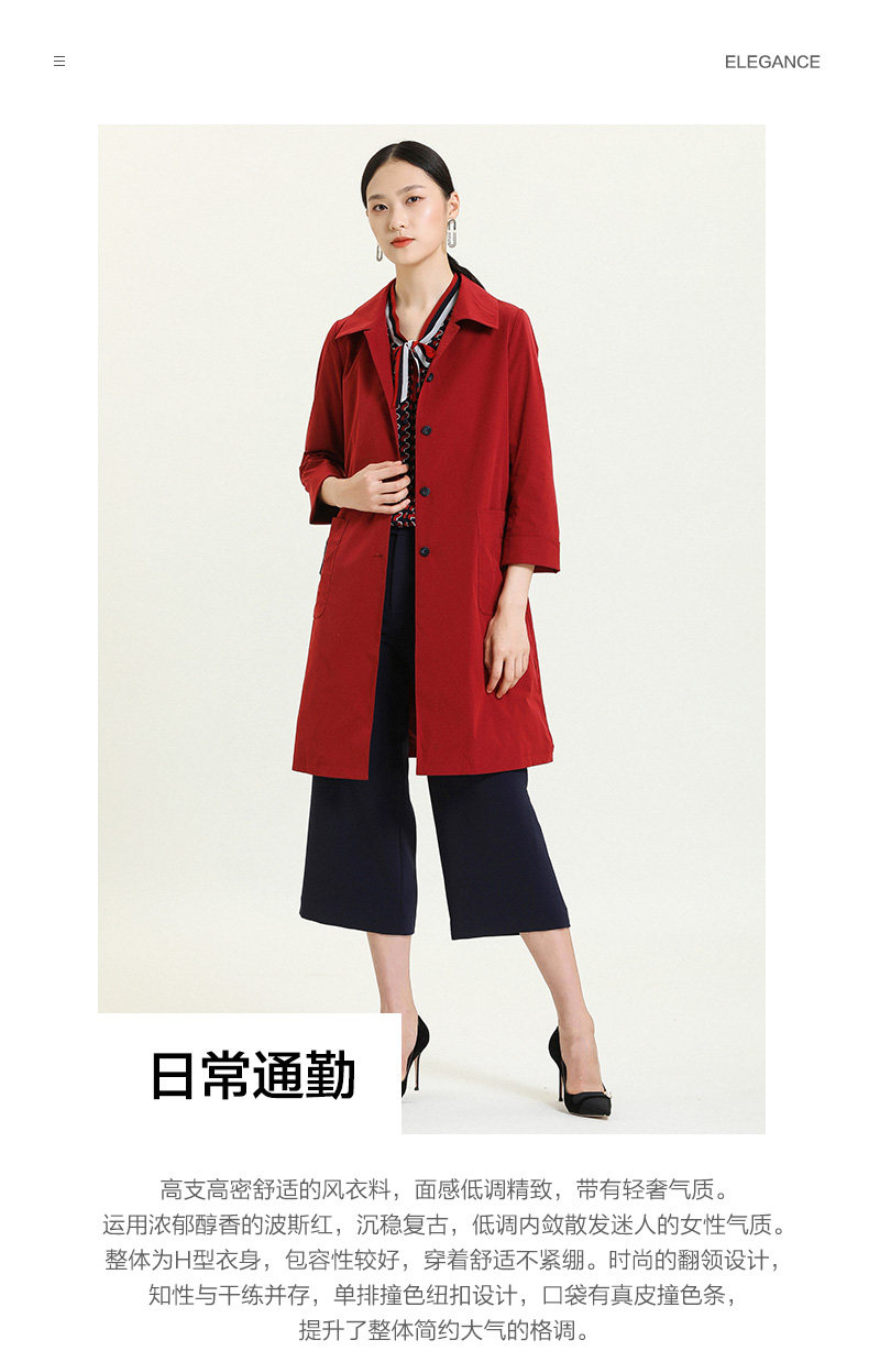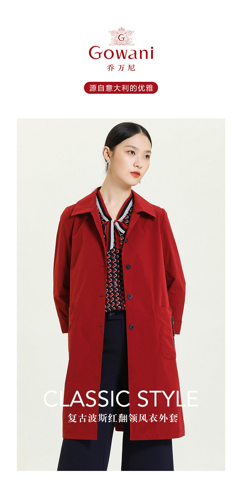 乔万尼初秋新款风衣中长款复古红色青春靓丽轻奢显瘦外套女ES3A607
