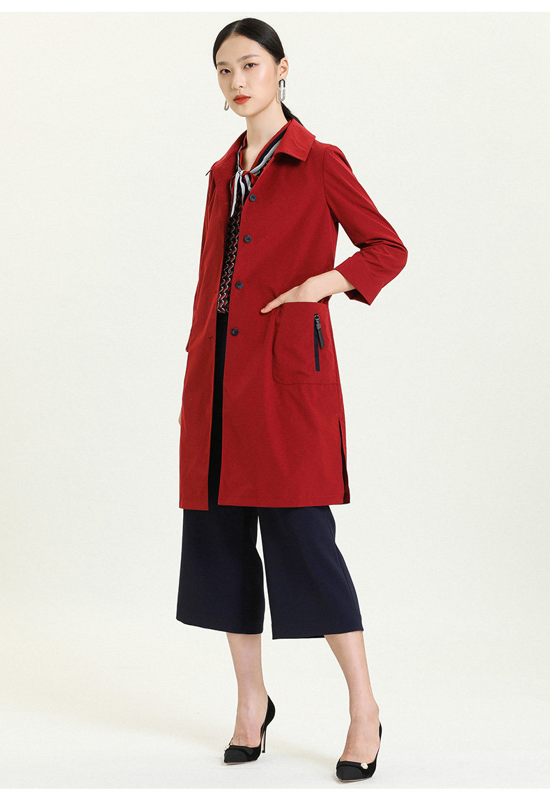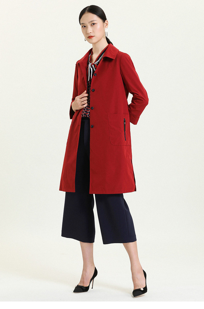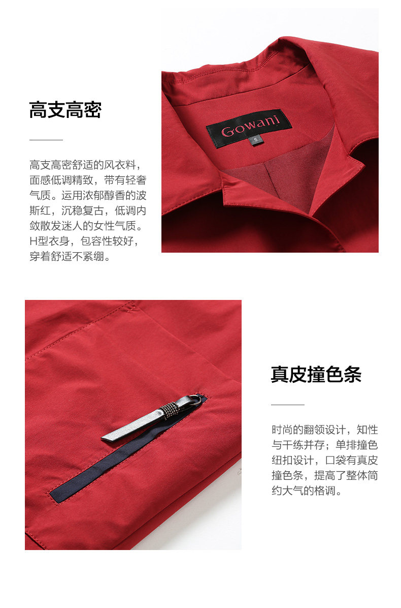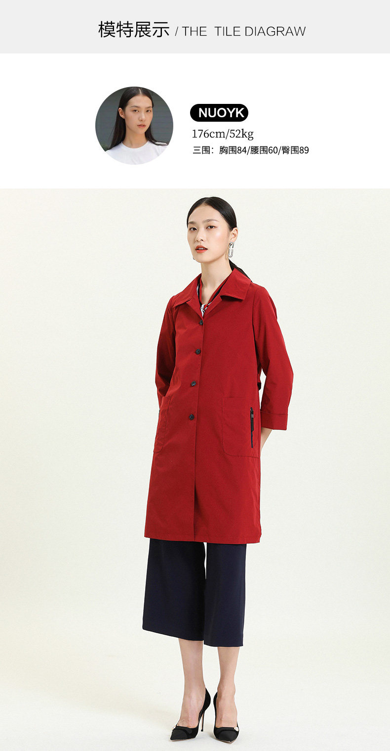 乔万尼初秋新款风衣中长款复古红色青春靓丽轻奢显瘦外套女ES3A607