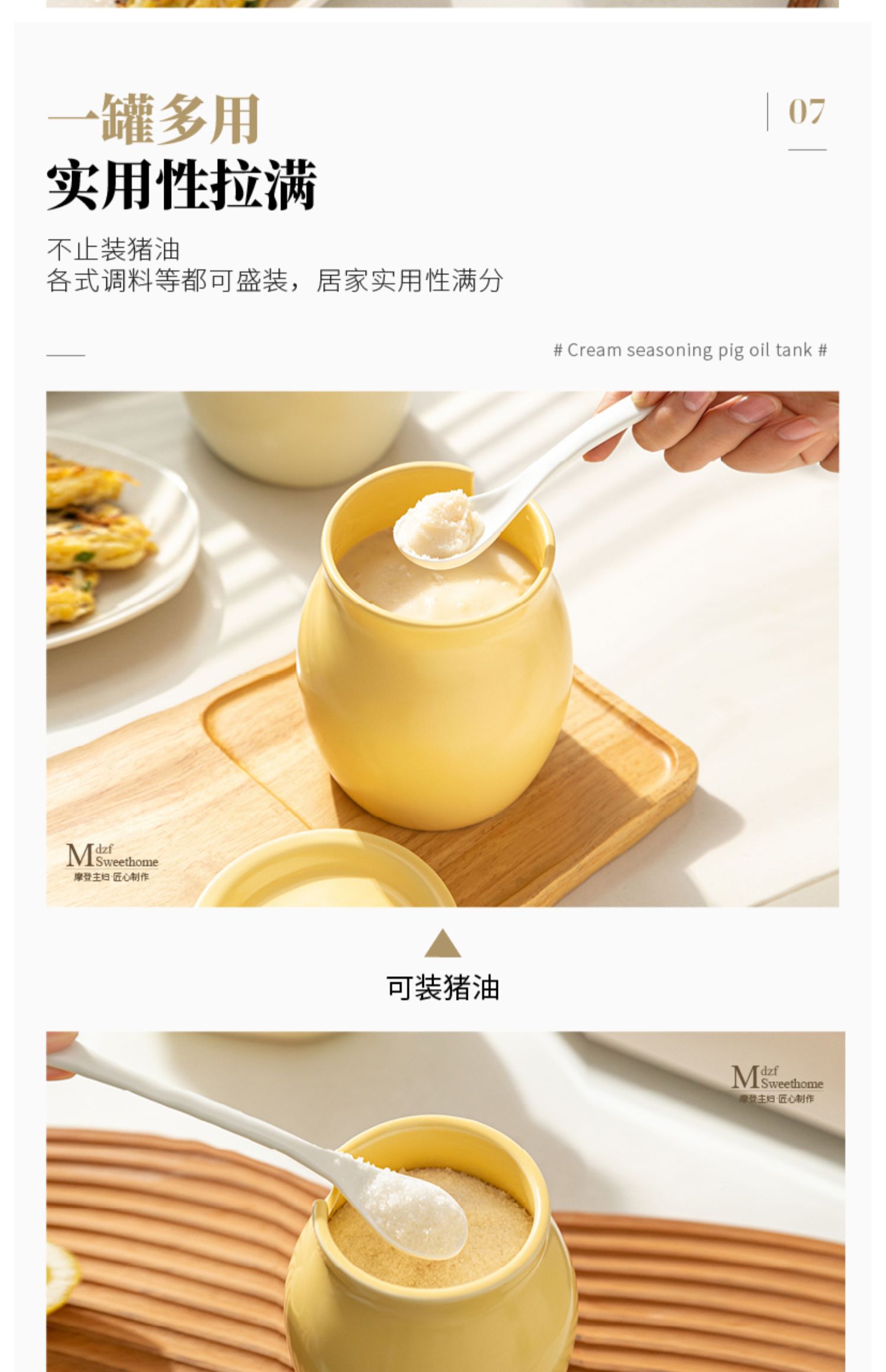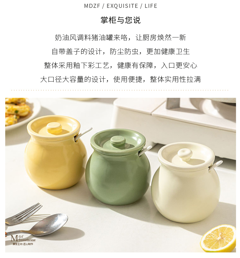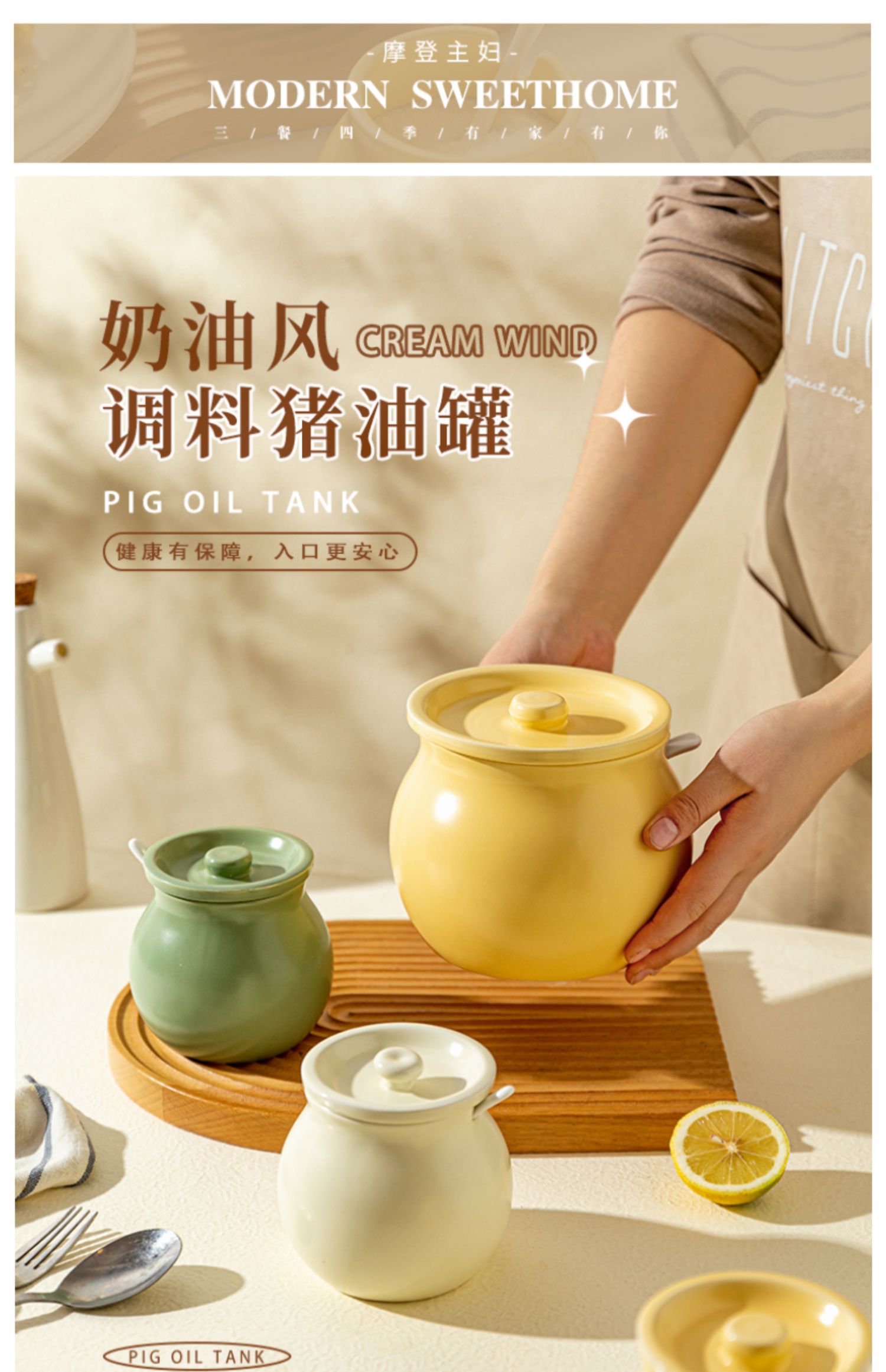 摩登主妇猪油罐家用陶瓷耐高温荤油罐子辣椒油专用罐厨房调味瓶罐