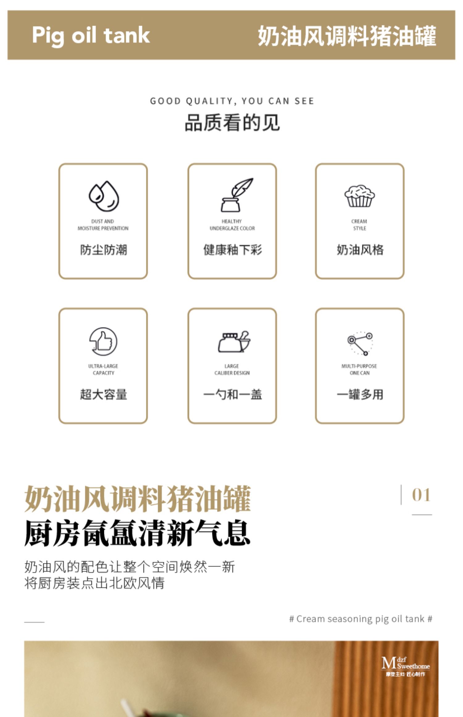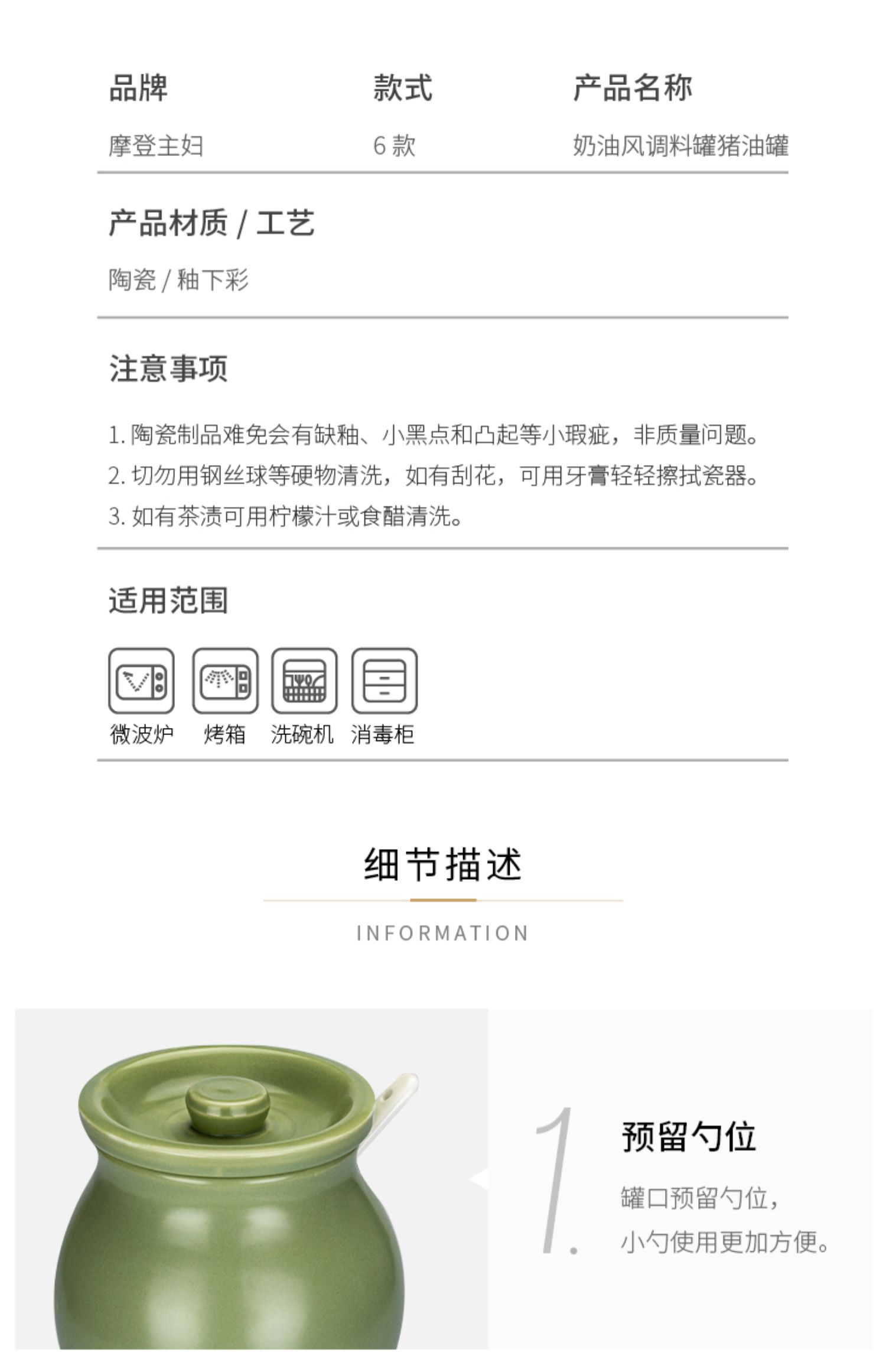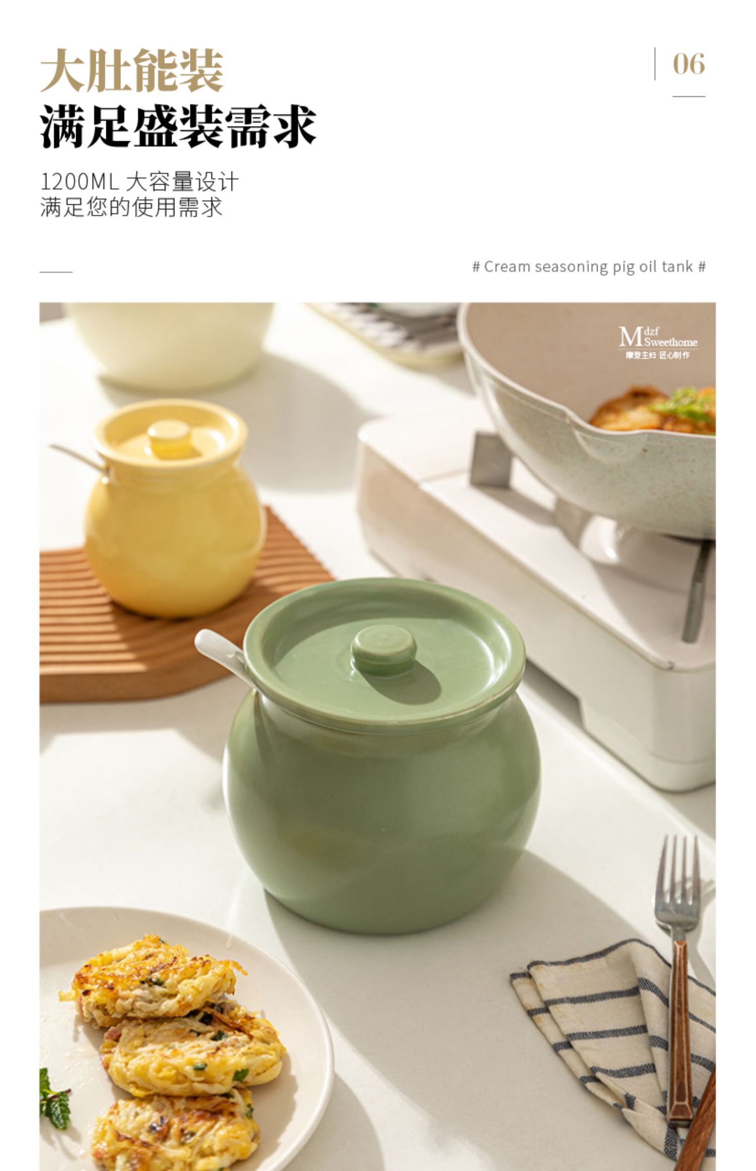 摩登主妇猪油罐家用陶瓷耐高温荤油罐子辣椒油专用罐厨房调味瓶罐