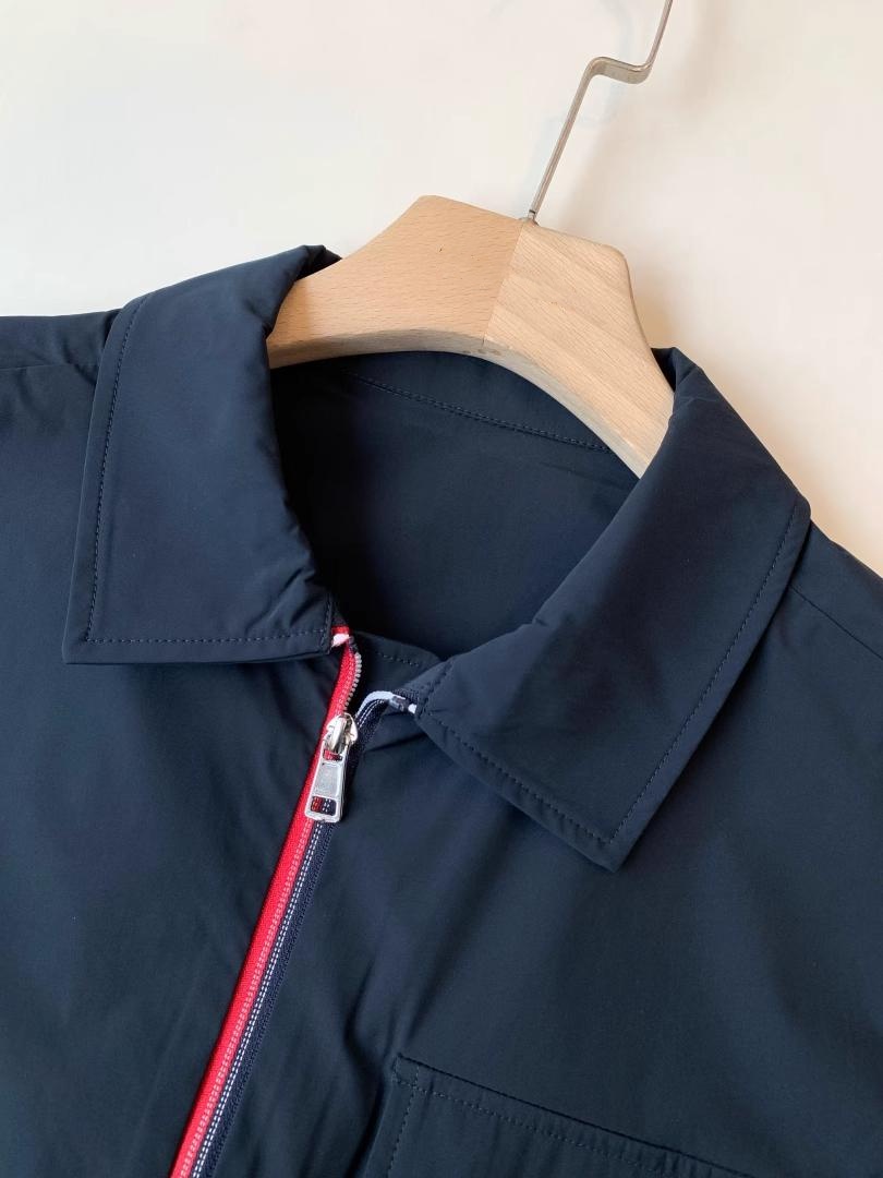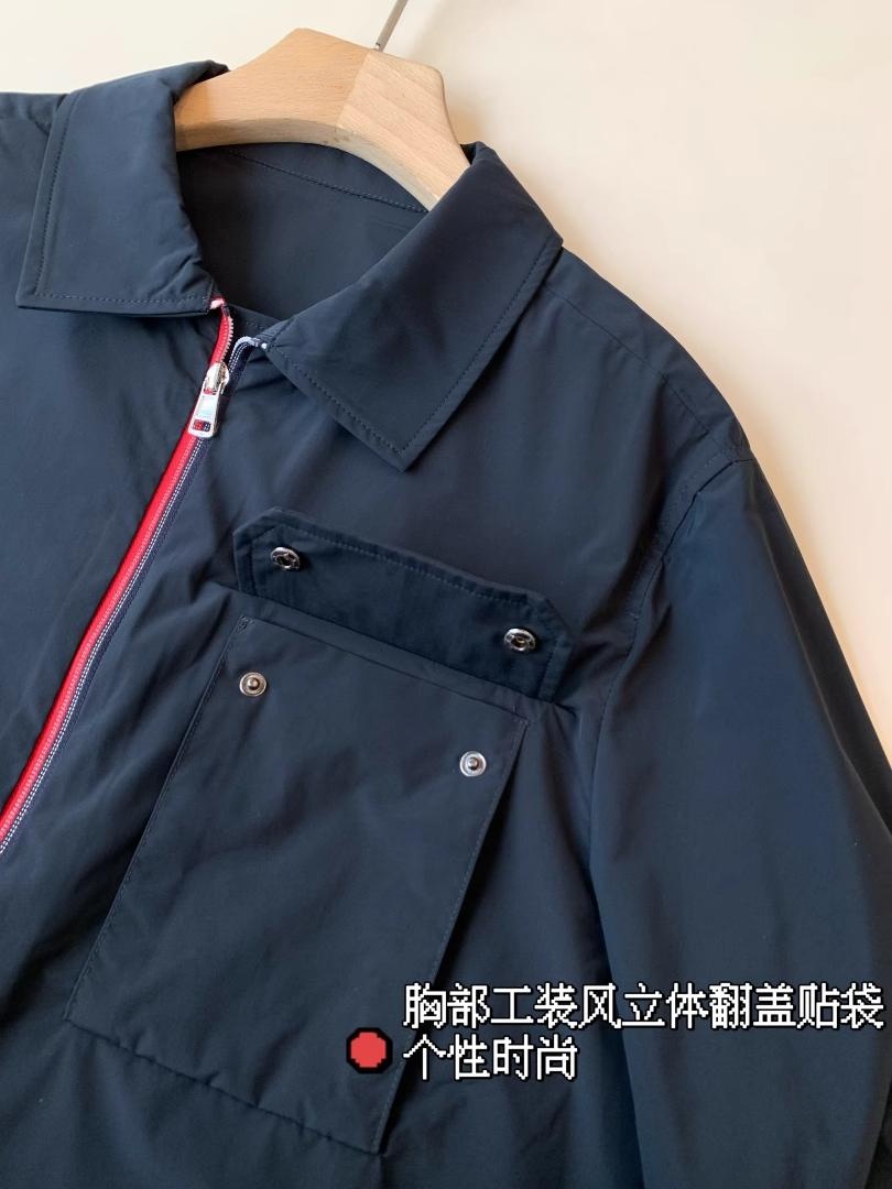篙端奢华感兼备的一款经典夹克,通体的设计完美融合法式美学,通体将法式的极简、干练和户外功能性风格极致诠释,亦庄亦谐,上身型款十足,符合现代都市审美,衬衫式夹克轻便而耐穿,采用细密柔软的轻盈尼龙面料制成,具有出色的功能性性能。简洁的直筒剪裁设计,配有精巧的三色拉链。可调节袖口弹性抽绳下摆,可调节贴合度,双头拉链,灵活多变,胸部搭配工装风立体翻盖贴袋,个性时尚,内衬切断设计,后背无内衬,更透气,这款实用的外套式衬衫可轻松搭配工作正装和假日休闲服饰