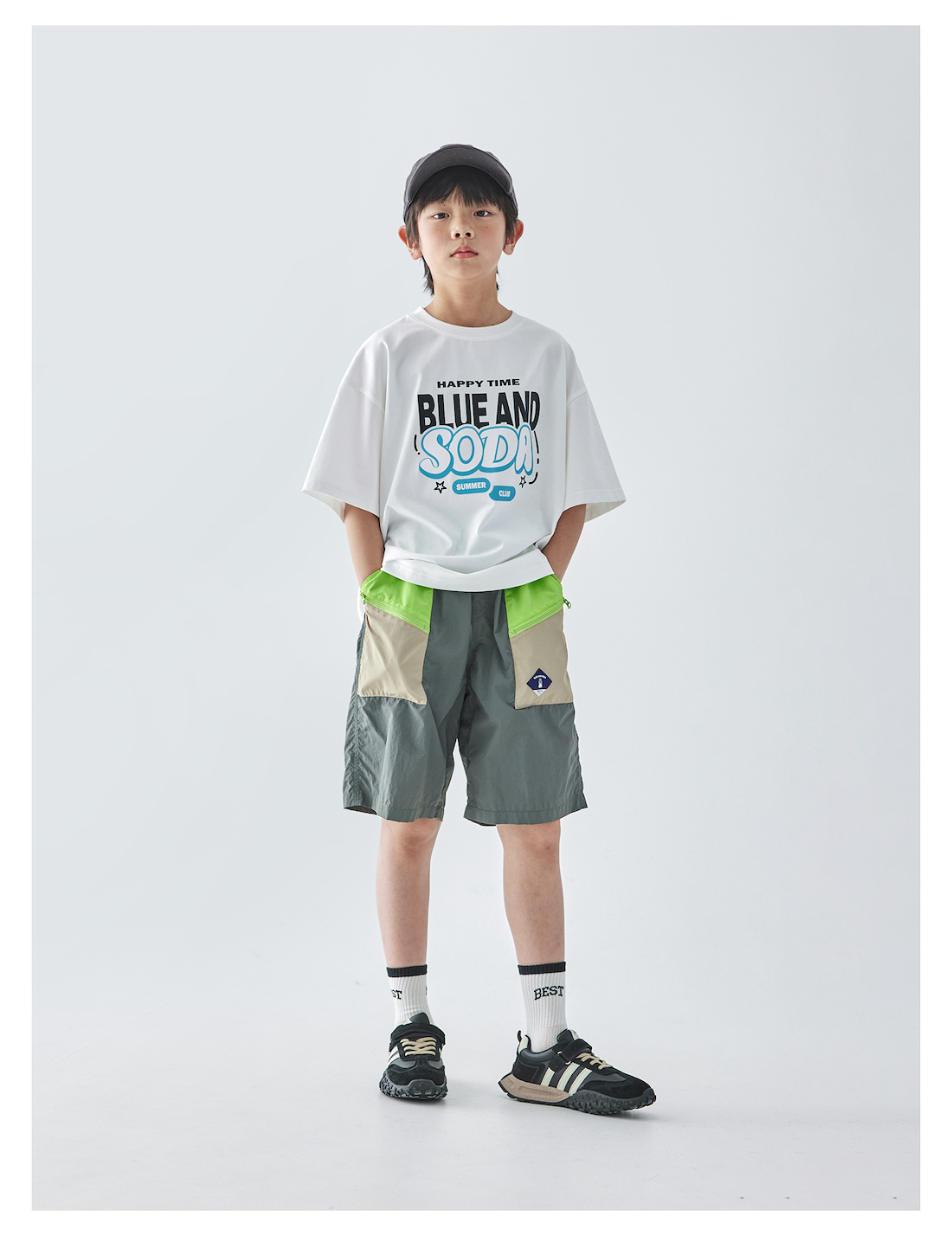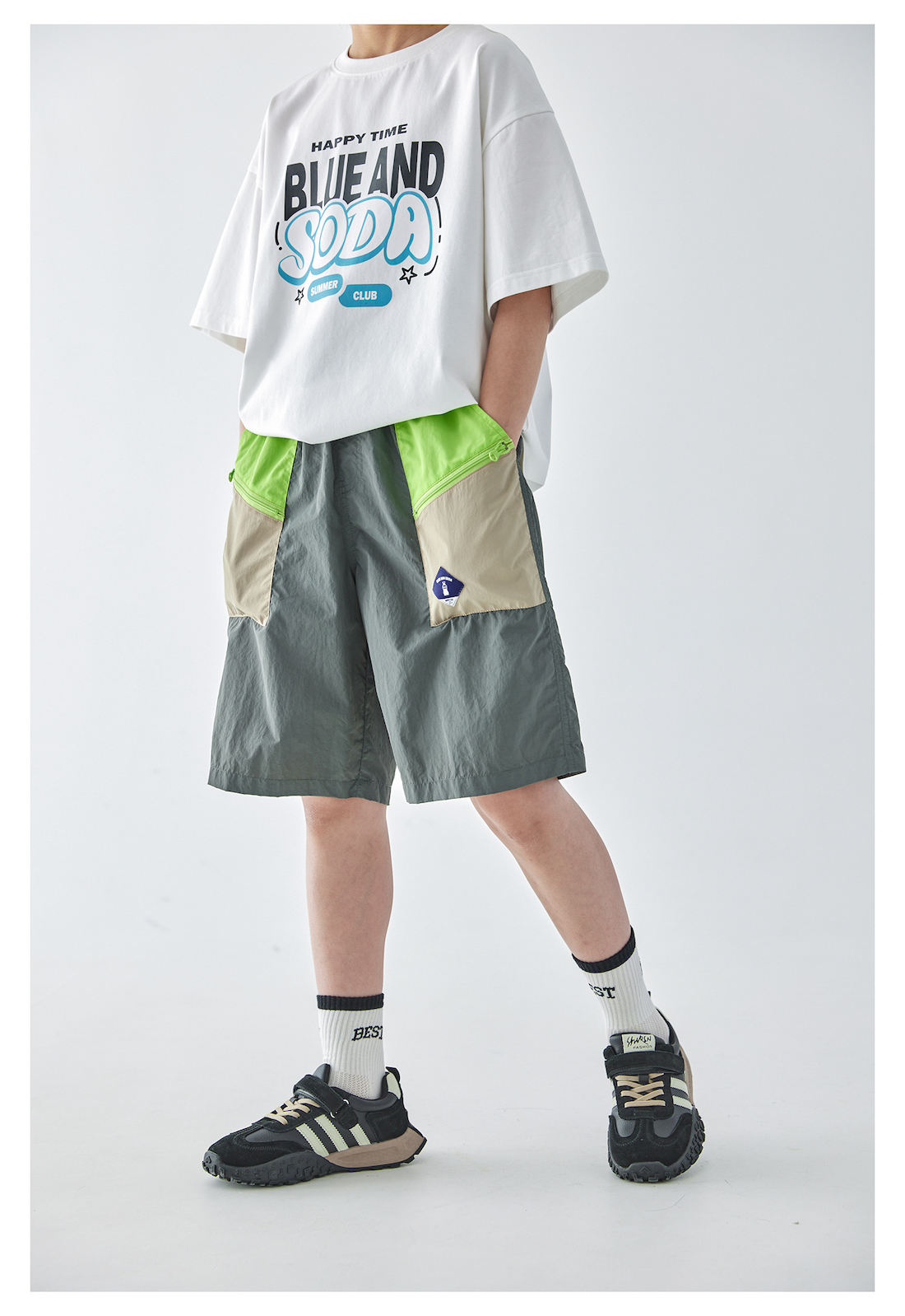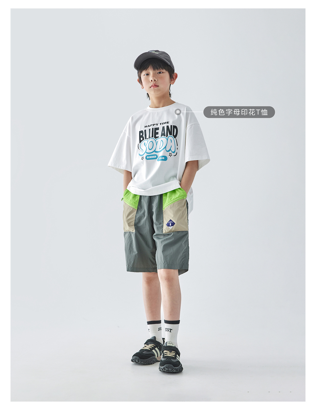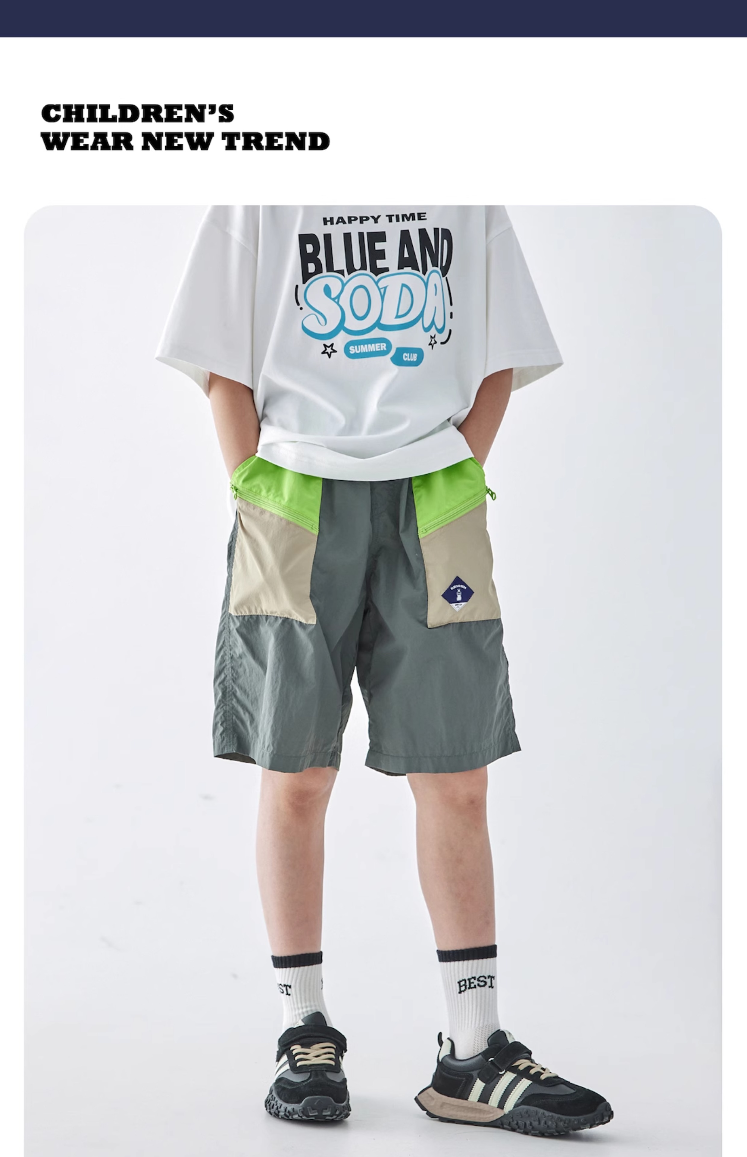 蓝汽水25年夏季新款男童口袋撞色拼接短裤中大童休闲宽松五分裤