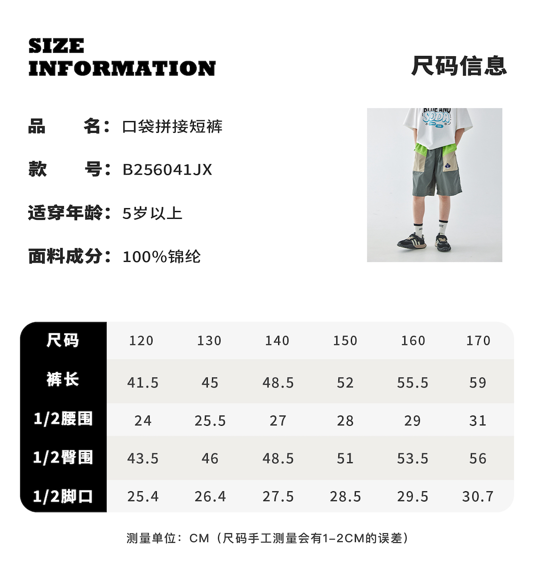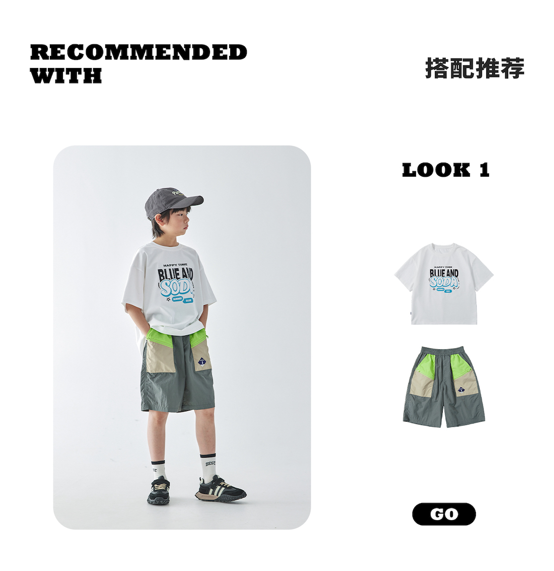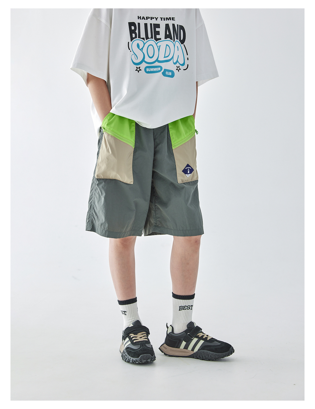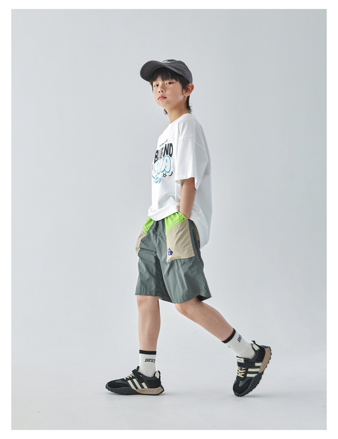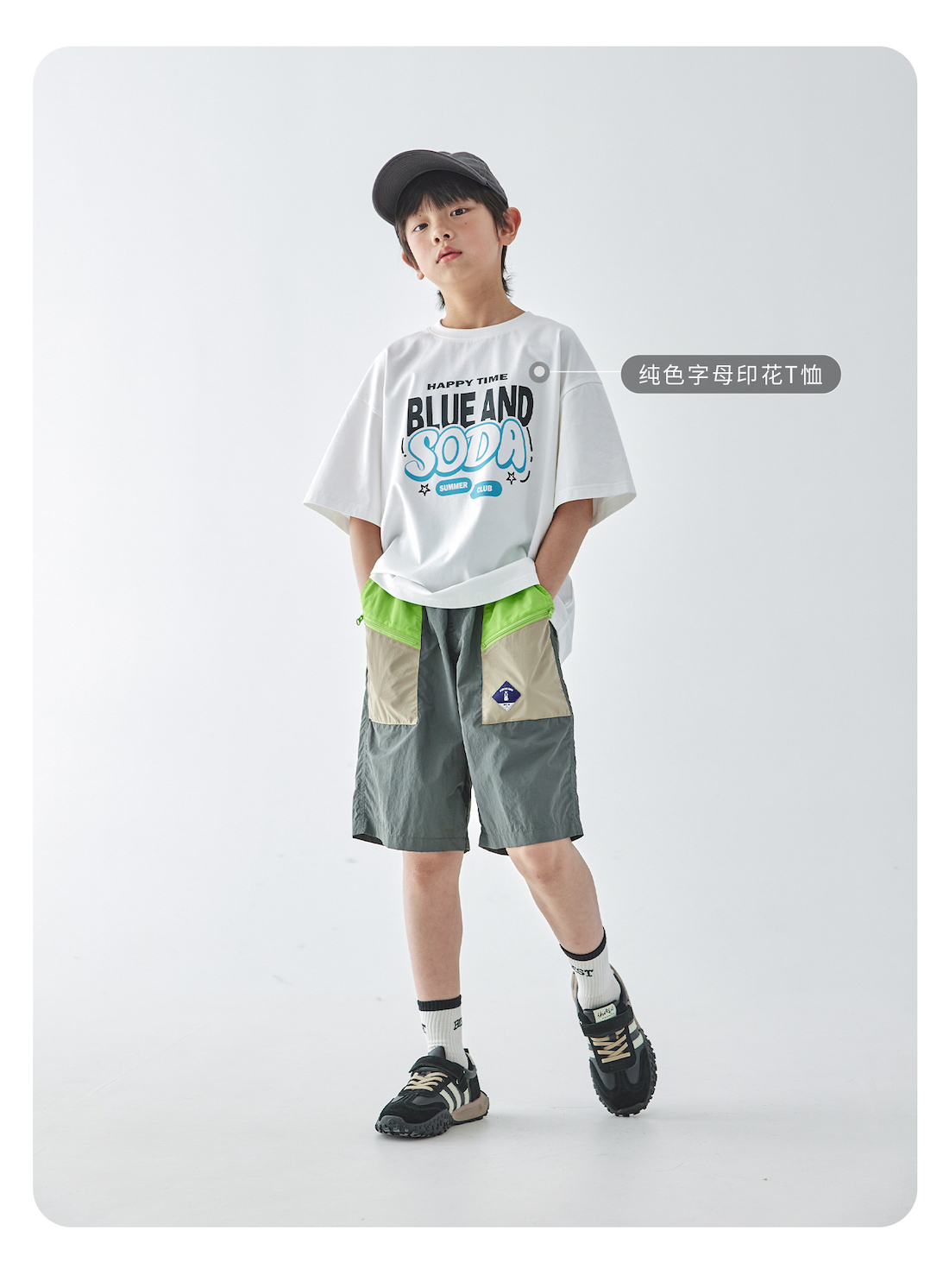 蓝汽水25年夏季新款男童口袋撞色拼接短裤中大童休闲宽松五分裤